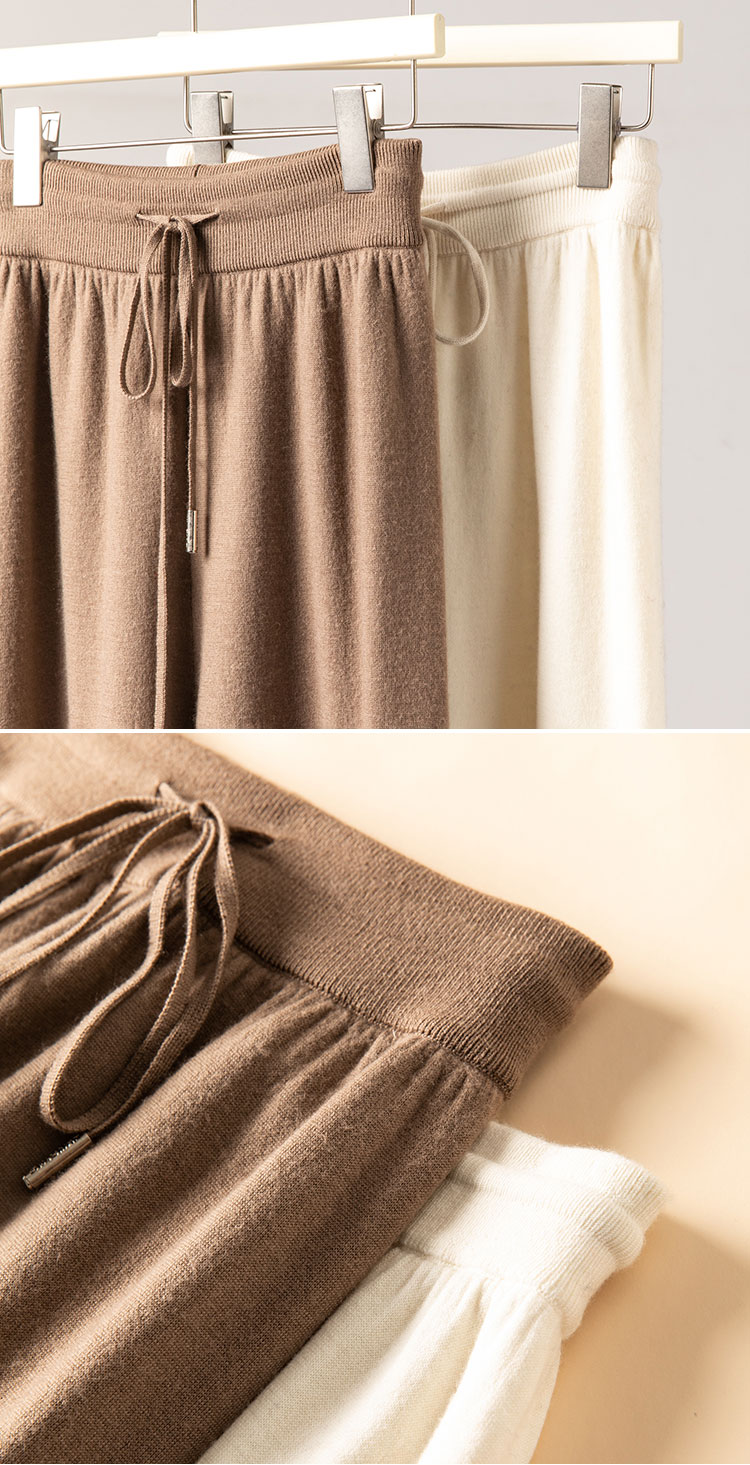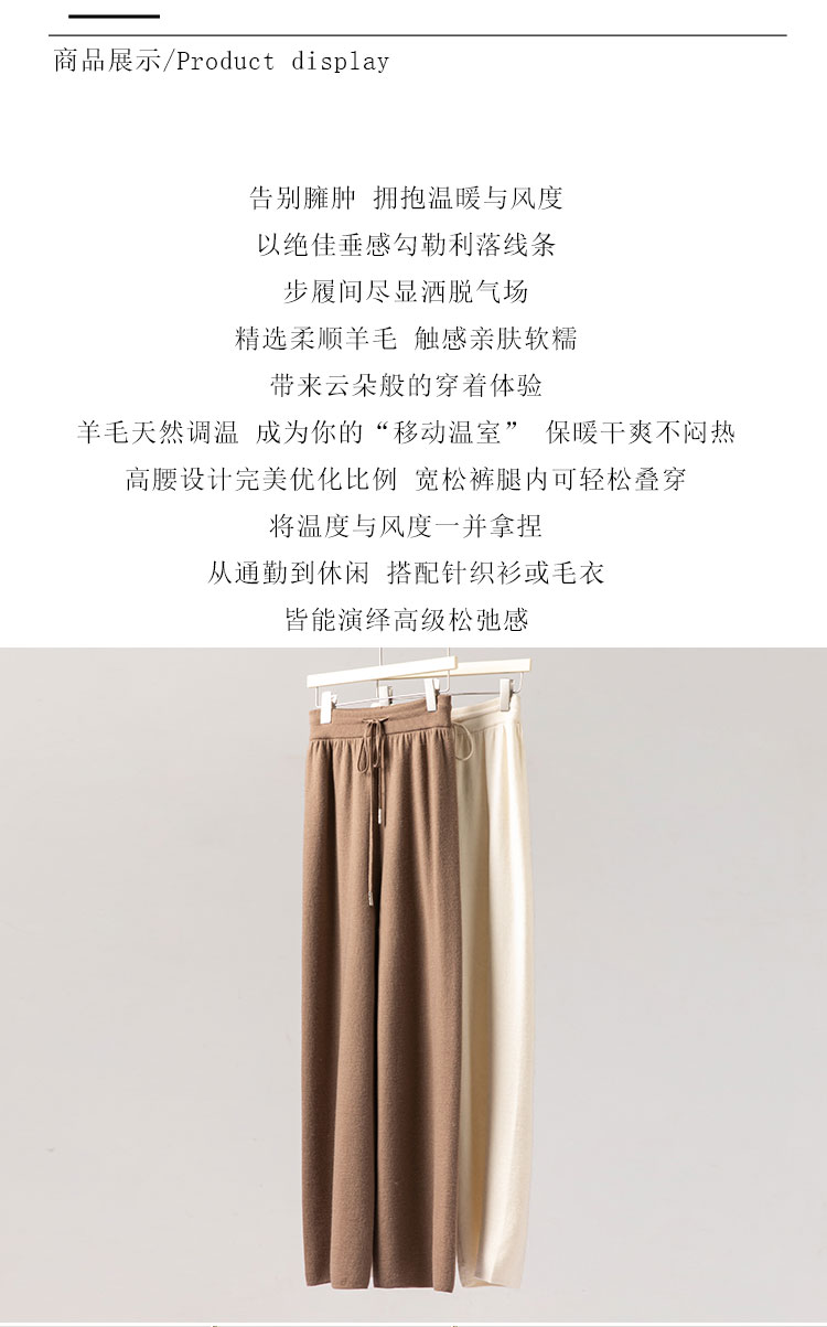 奔赴冬约~扬子纱100精纺羊毛松紧腰抽绳直筒裤女极简阔腿裤