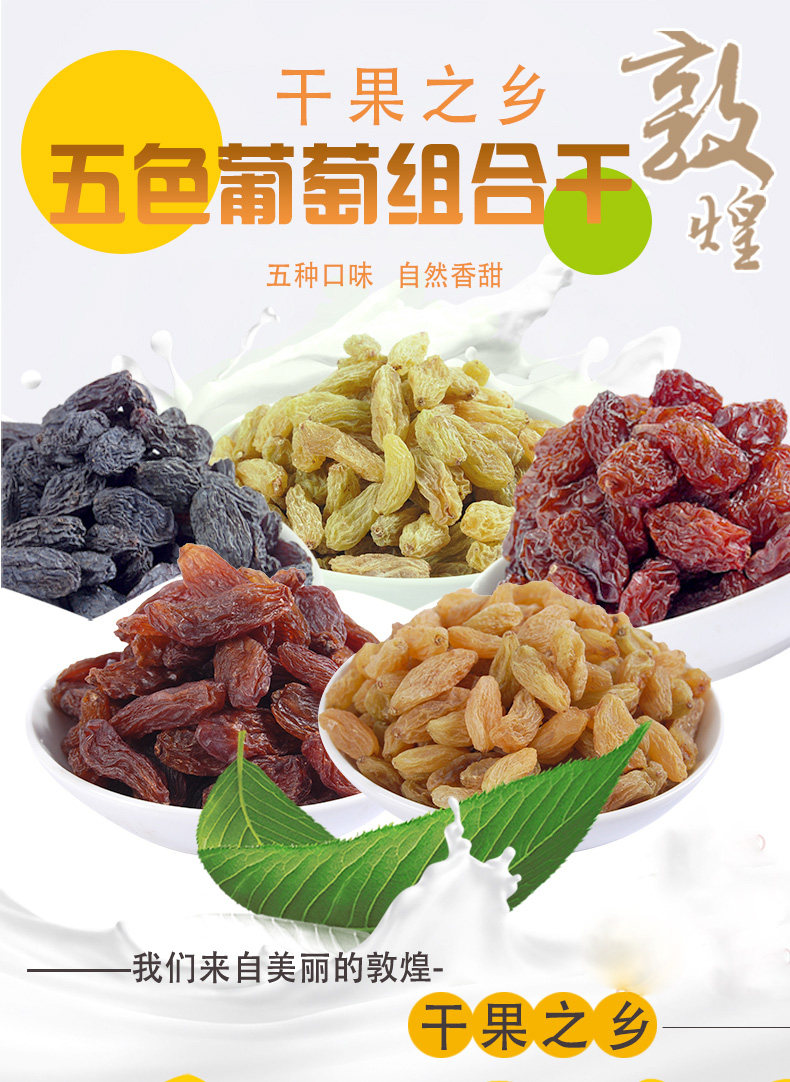 【五色五味葡萄干组合5袋装】零脂敦煌特产 莫园葡萄干 办公室零食伴手礼