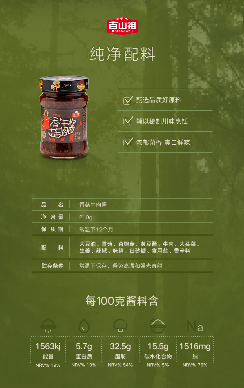 百山祖香菇香辣牛肉酱210g*2罐