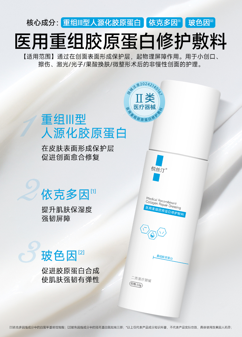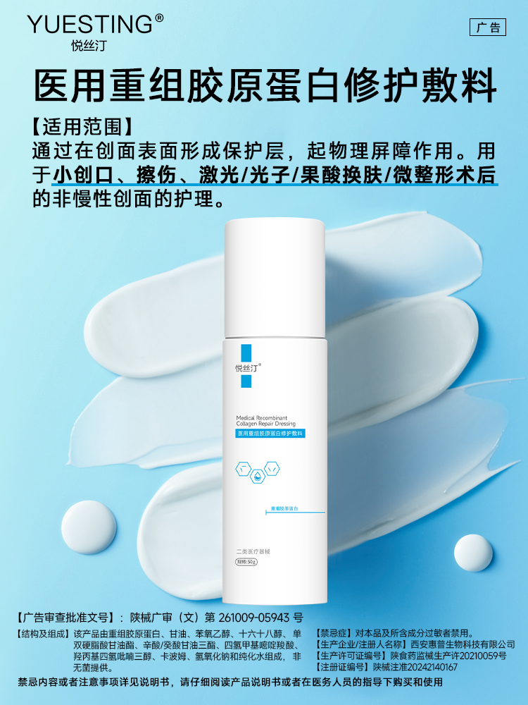 悦丝汀医用重组胶原蛋白修护敷料r乳50g术后创面保护乳液状非面膜