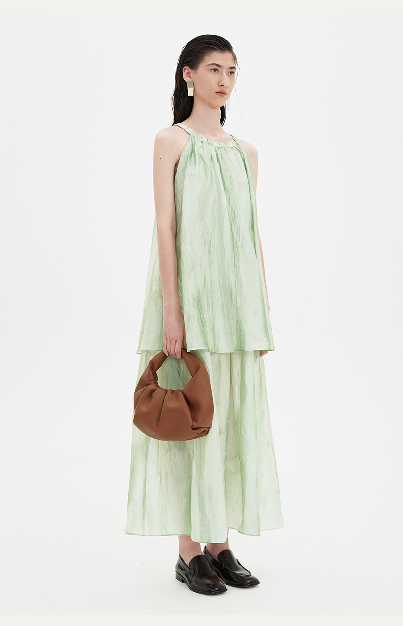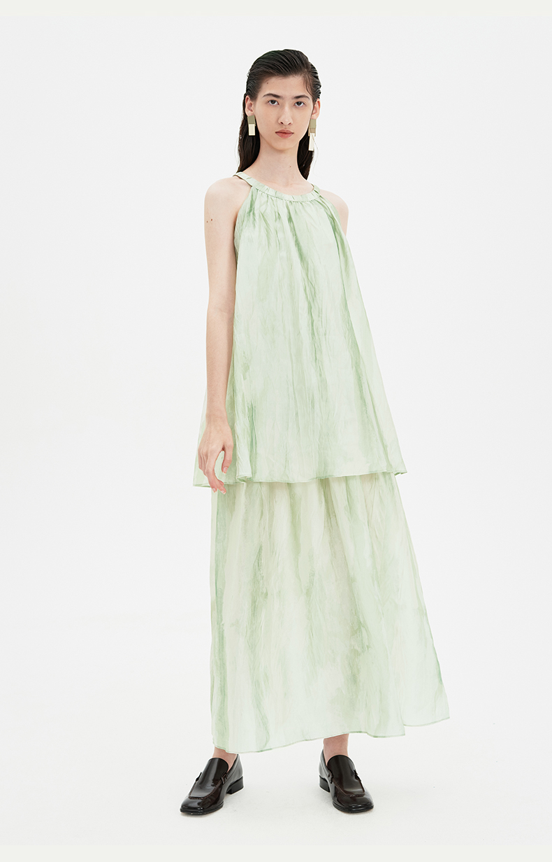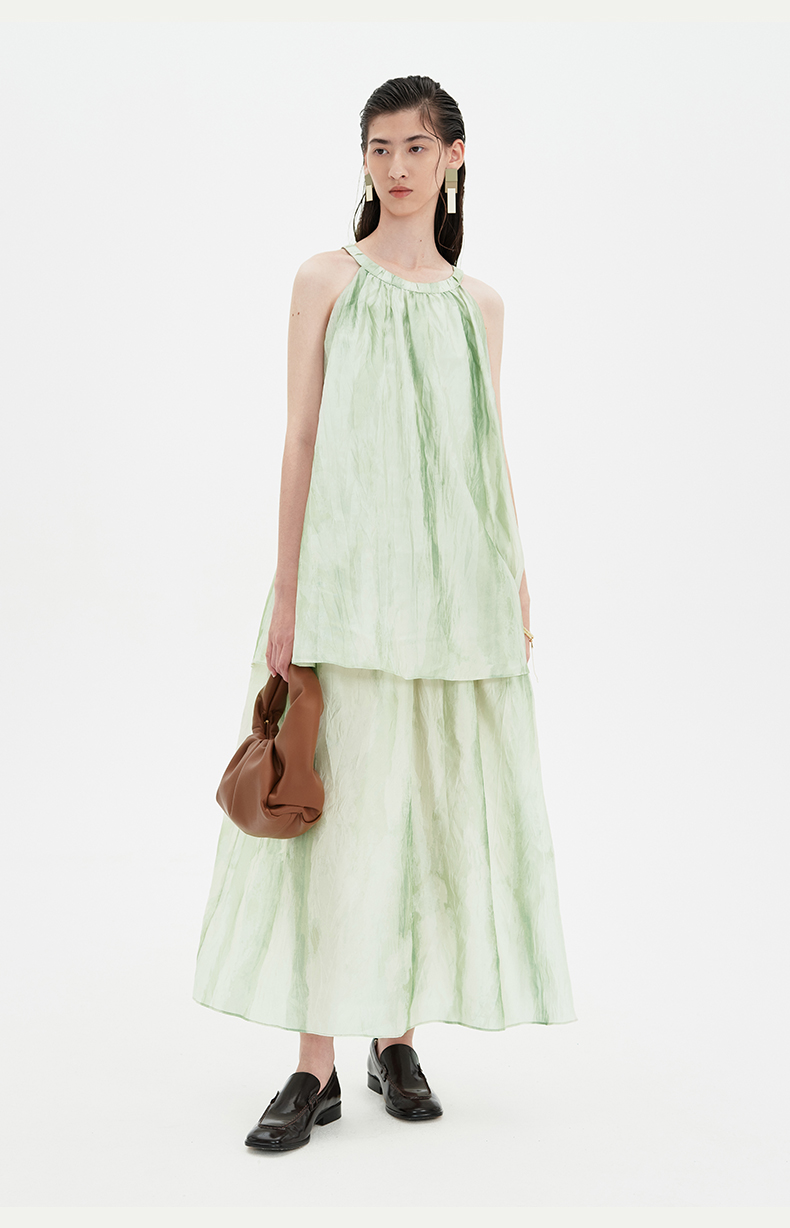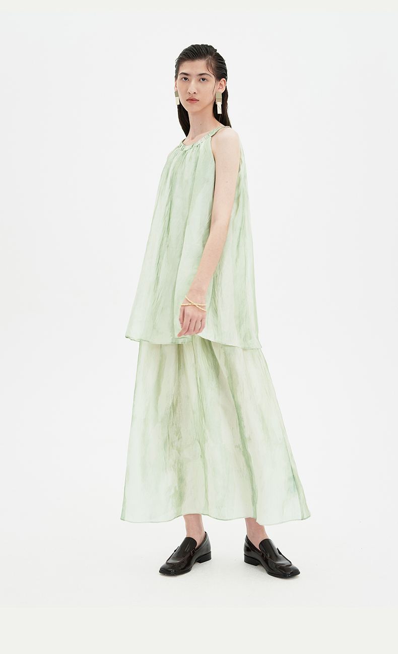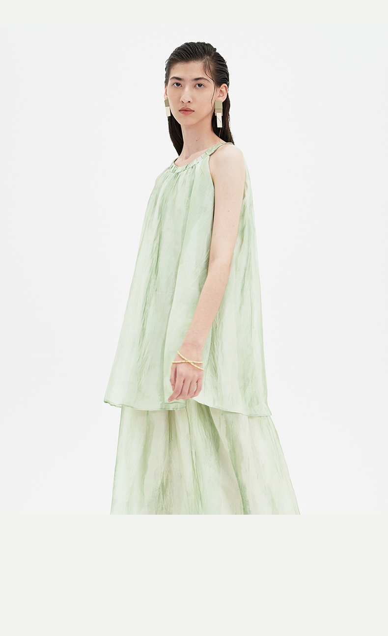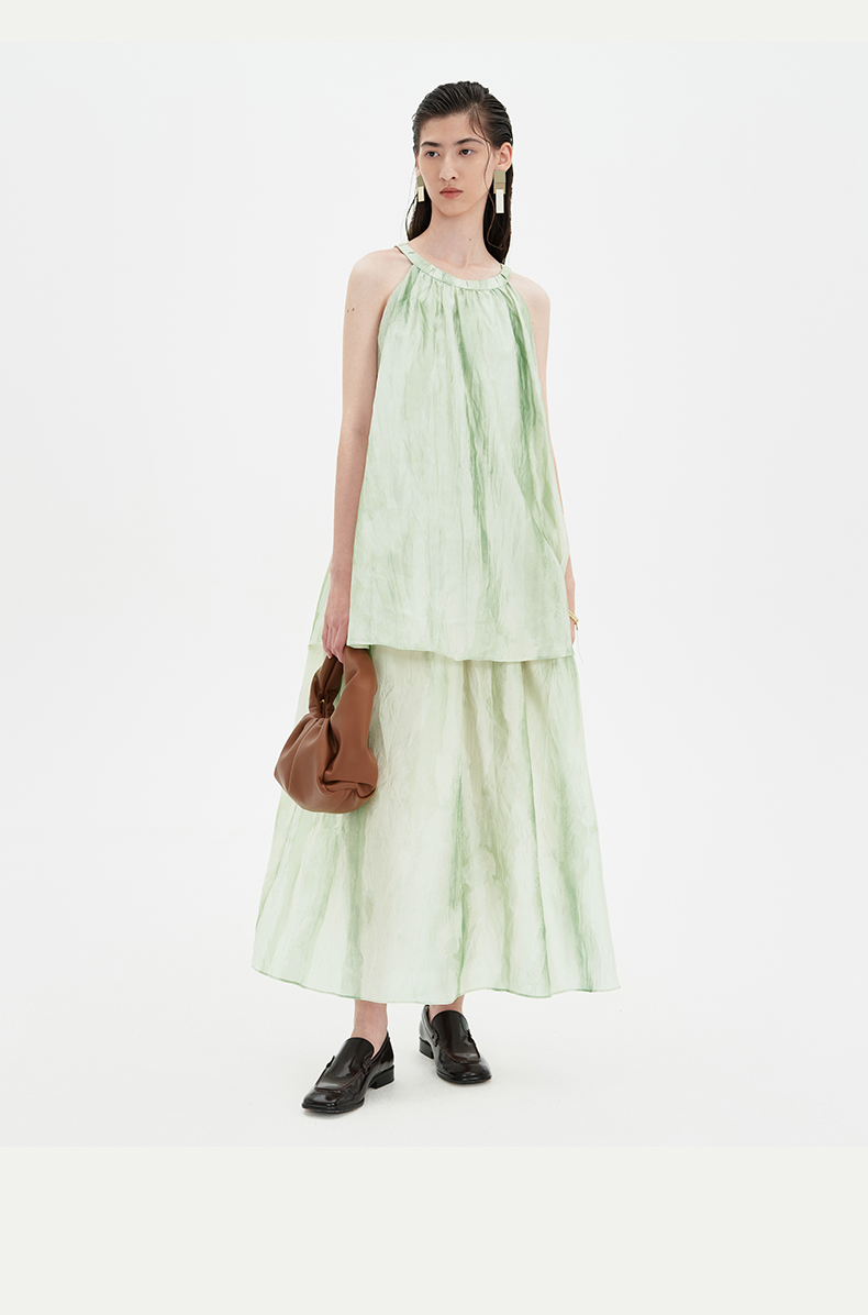 SELFWHO连衣裙女夏季2024新款茶歇法式气质无袖薄荷曼波风长裙子