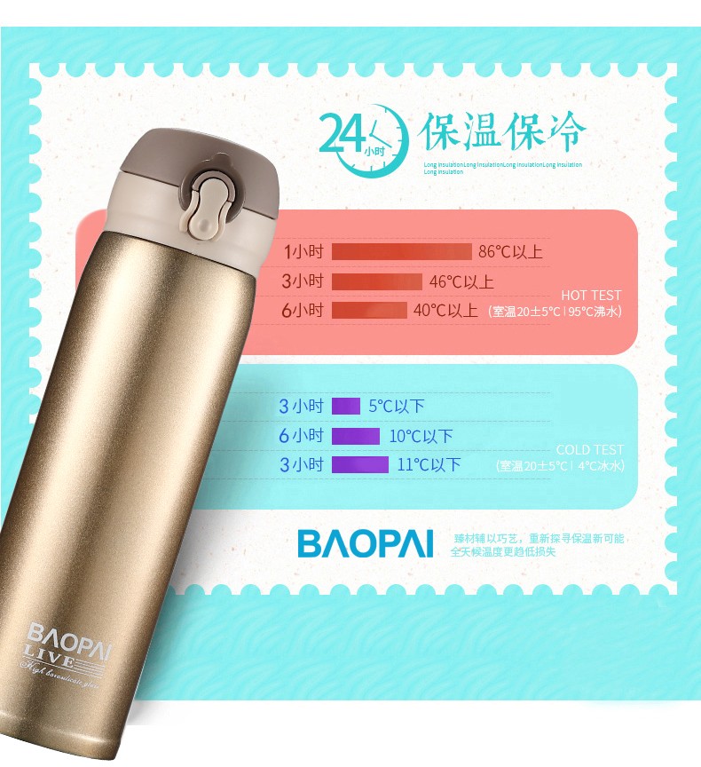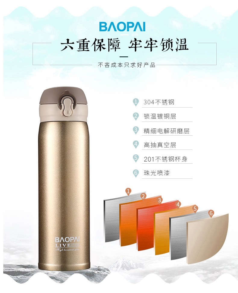豹牌 不锈钢真空保温杯 子弹头造型设计 BP03-500-68