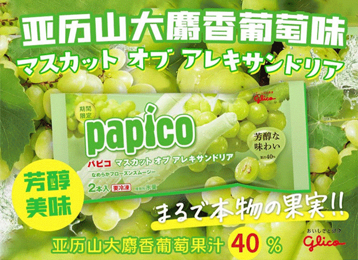 【直送到家】格力高papico冰沙青葡萄味(1袋2支)150g*8袋 冰沙雪糕(冷链商品不退不换)