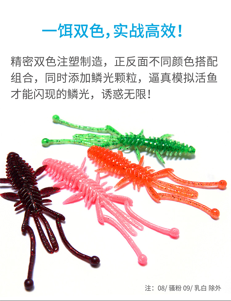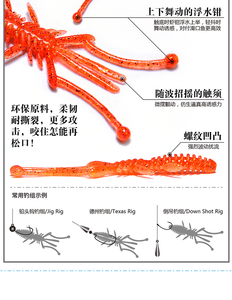 蓝旗鱼路亚饵浮水虾软饵黑坑内德野钓水库溪流铅头钩配饵浮水万虫