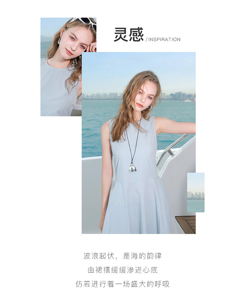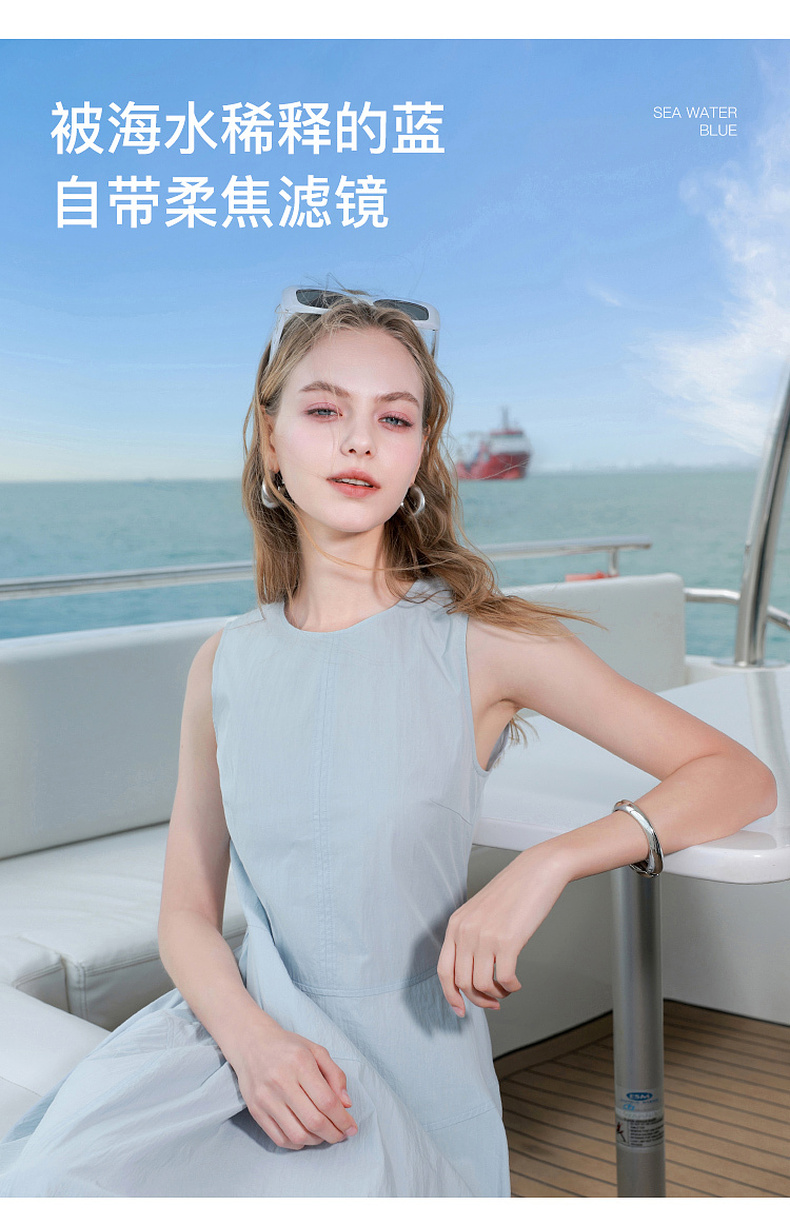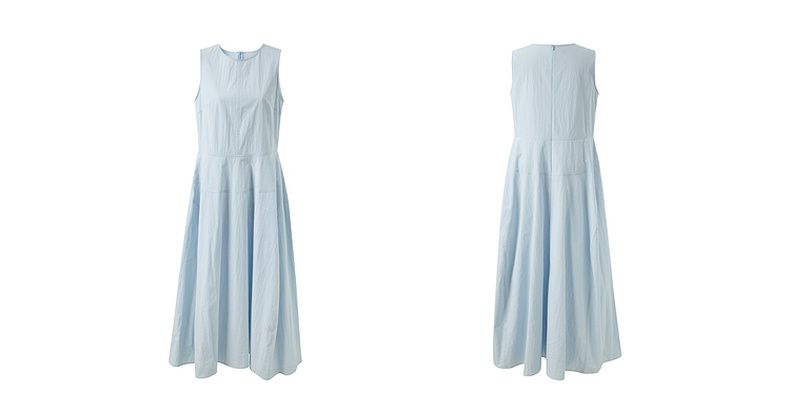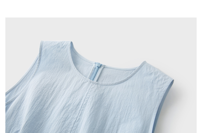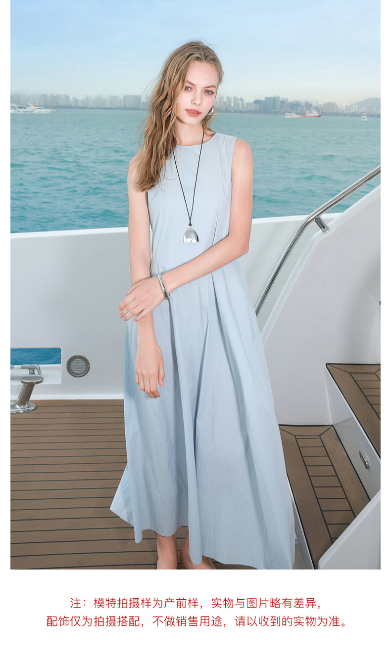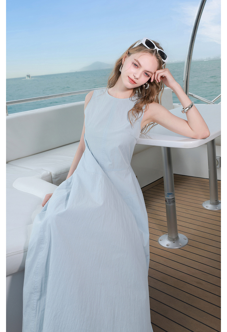 三彩2025夏季新款无袖连衣裙收腰花苞裙长裙圆领背心裙侘寂风M