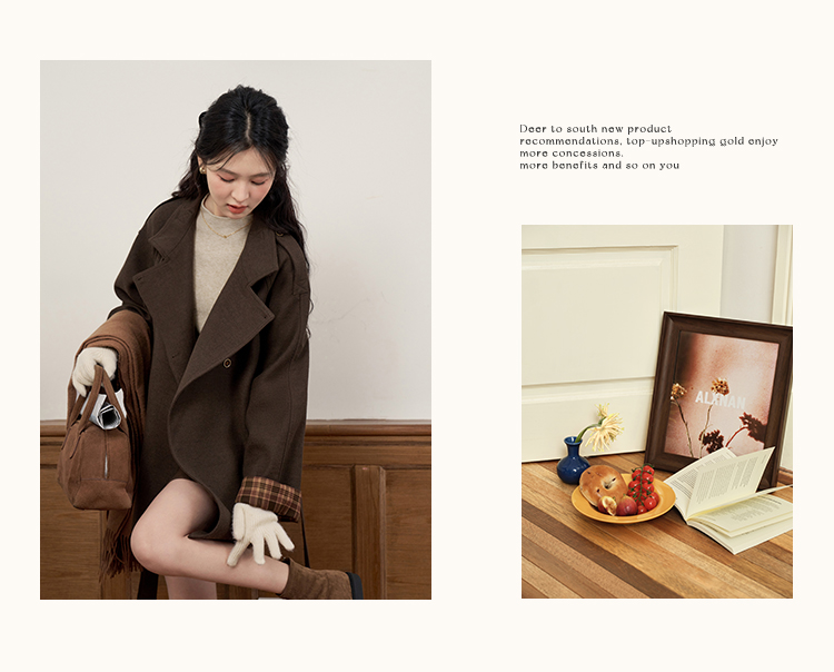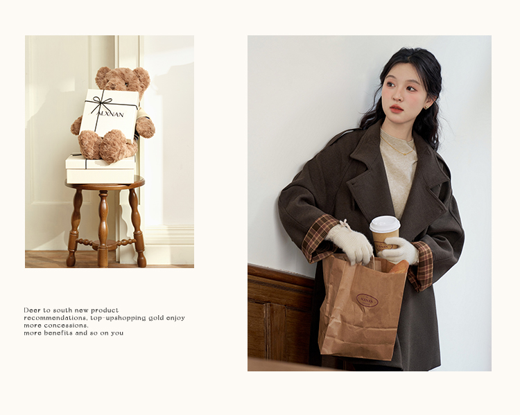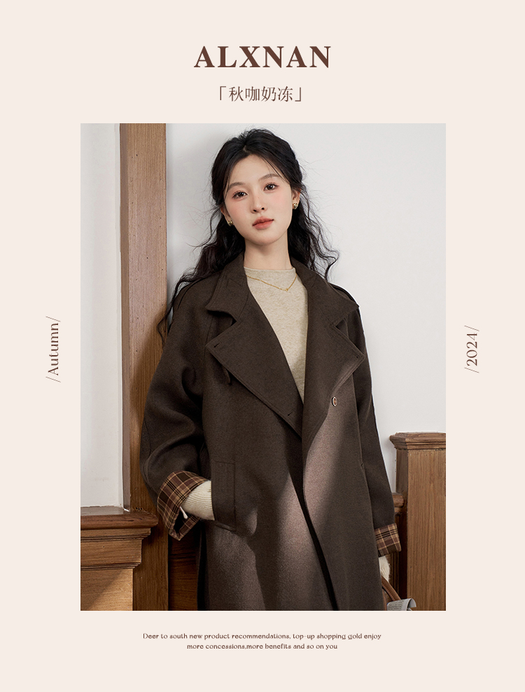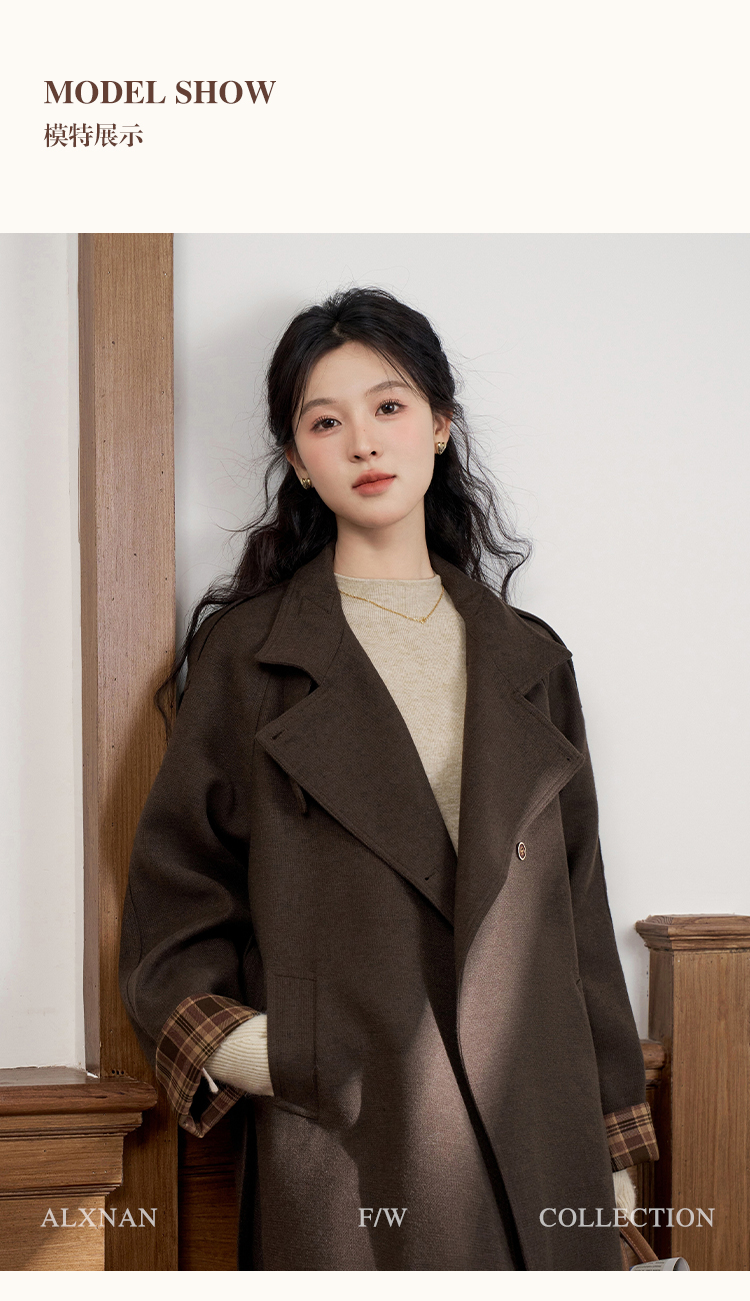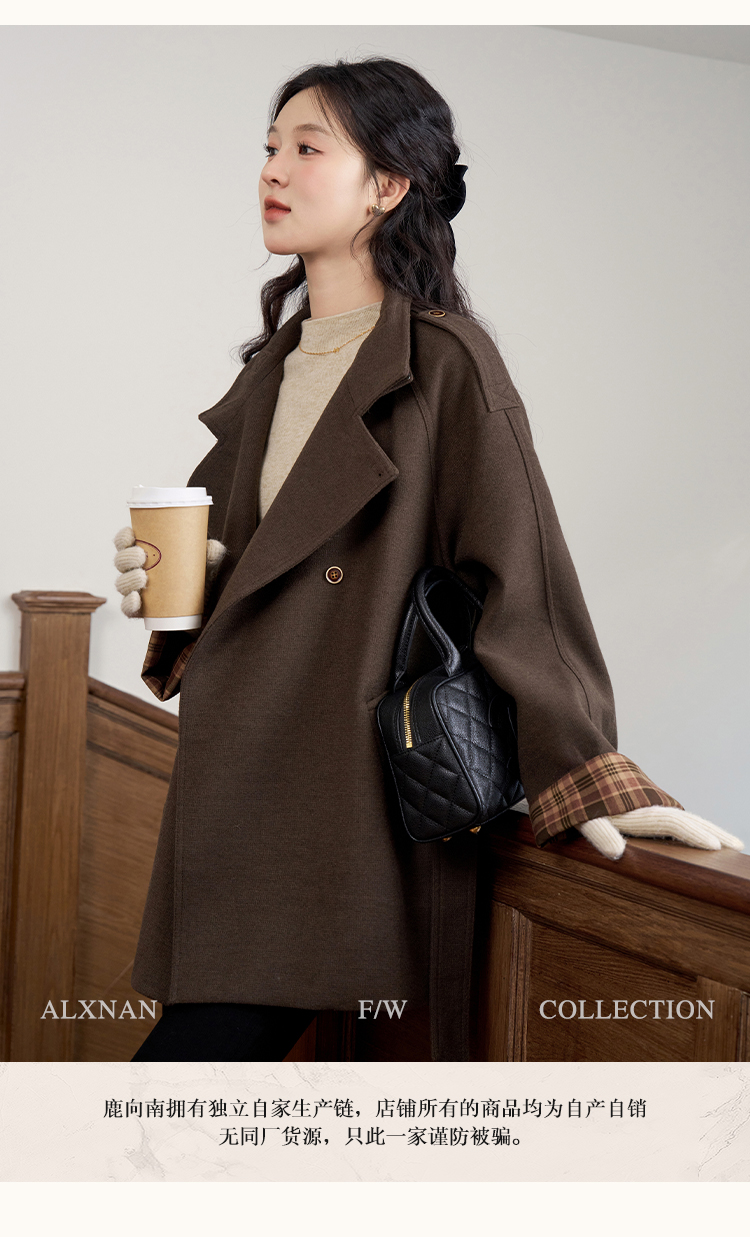 鹿向南「秋咖奶冻」深咖色毛呢外套女2025年秋冬新款保暖宽松大衣