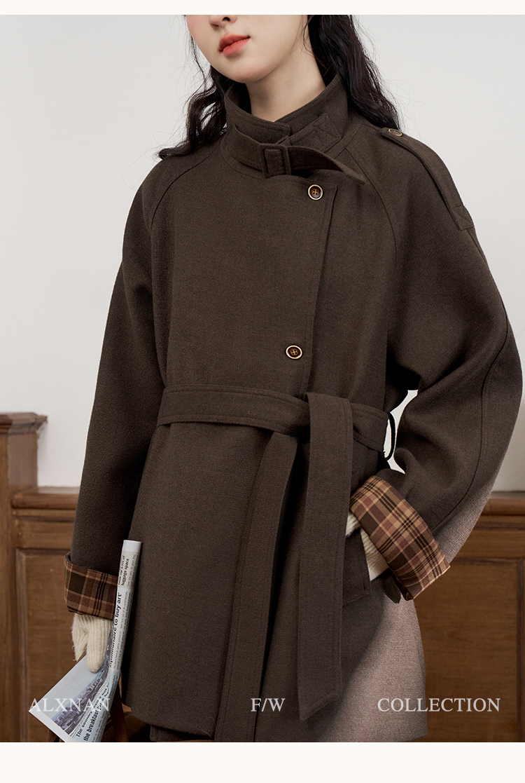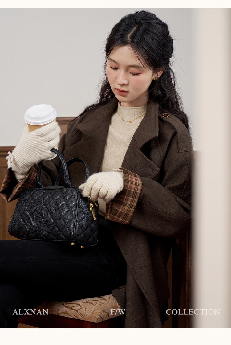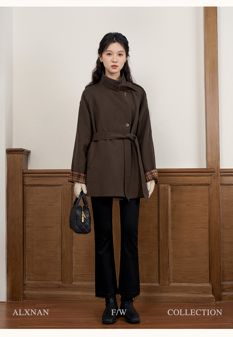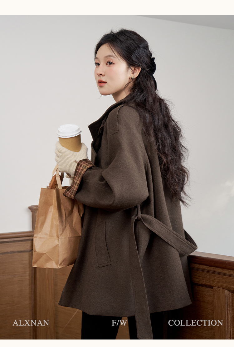 鹿向南「秋咖奶冻」深咖色毛呢外套女2025年秋冬新款保暖宽松大衣