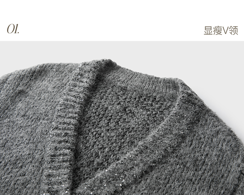 三彩2025冬季新款针织衫V领毛衫外套宽松开衫慵懒M