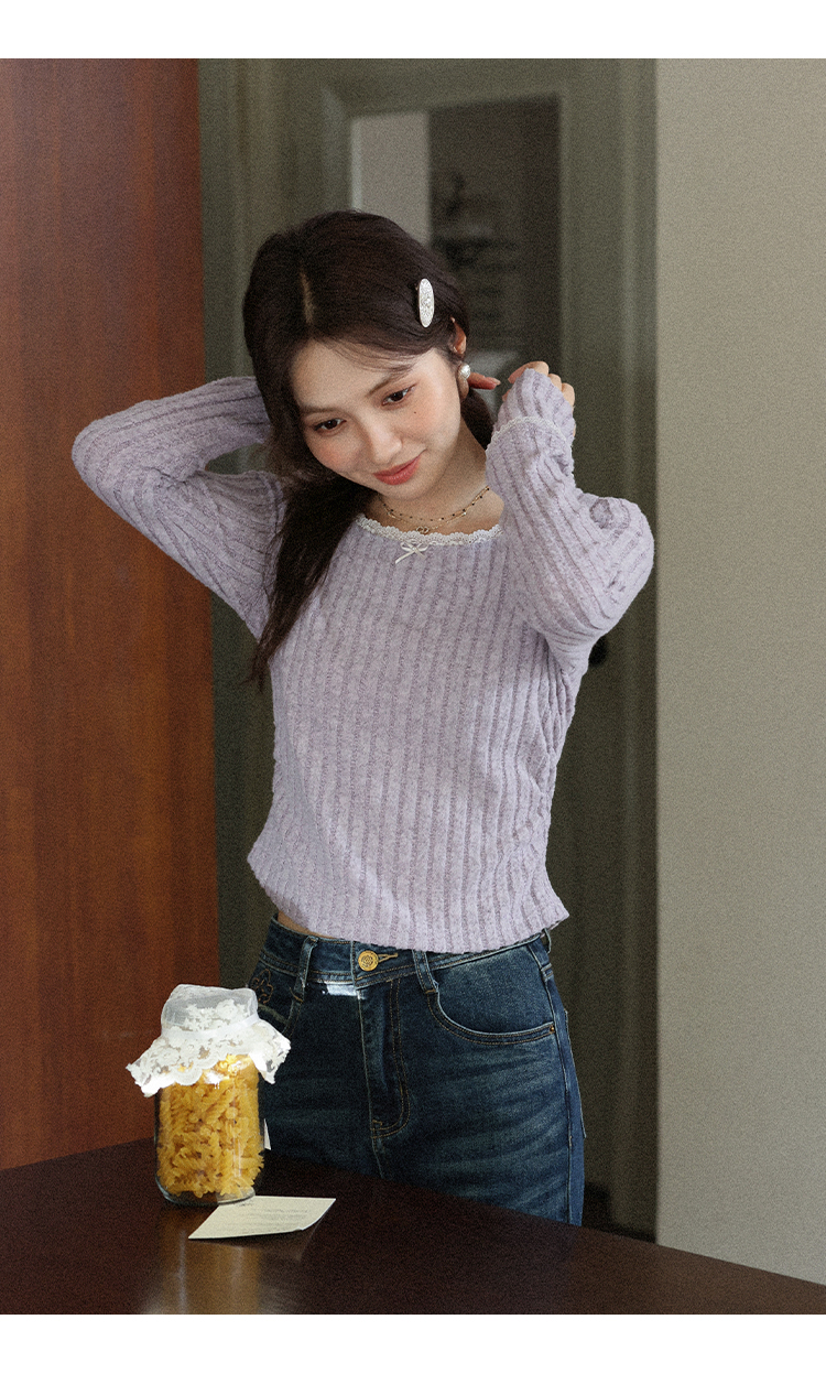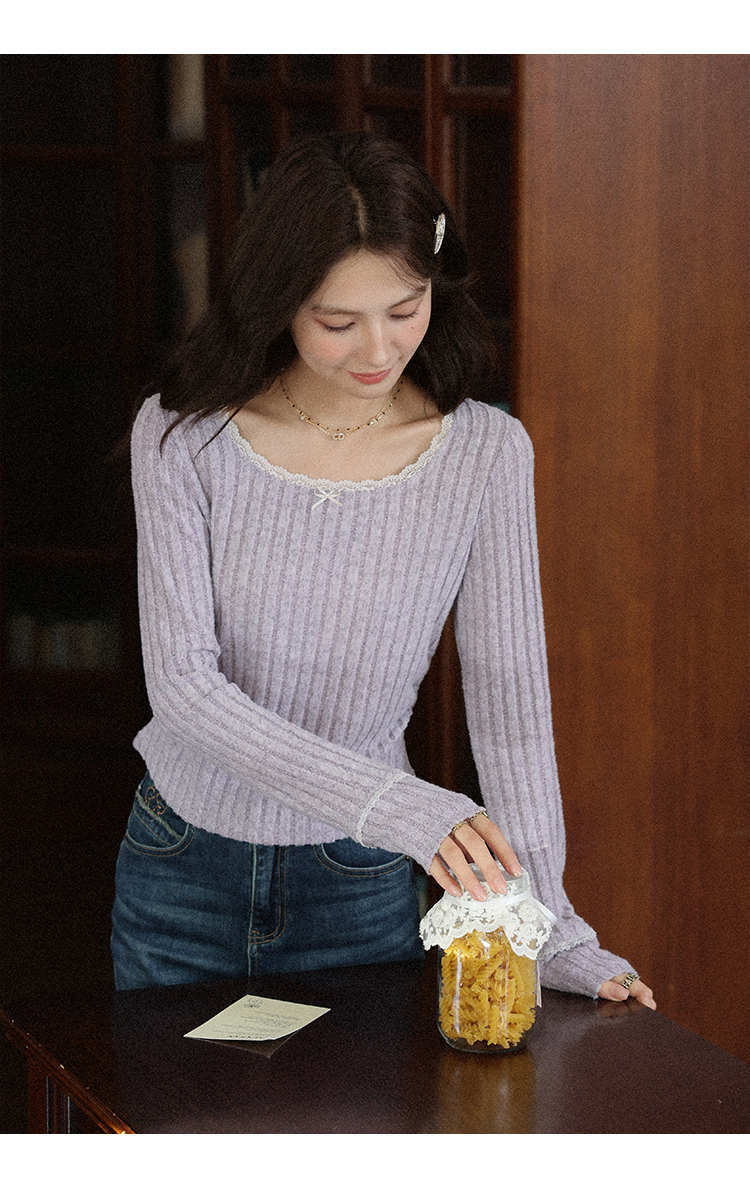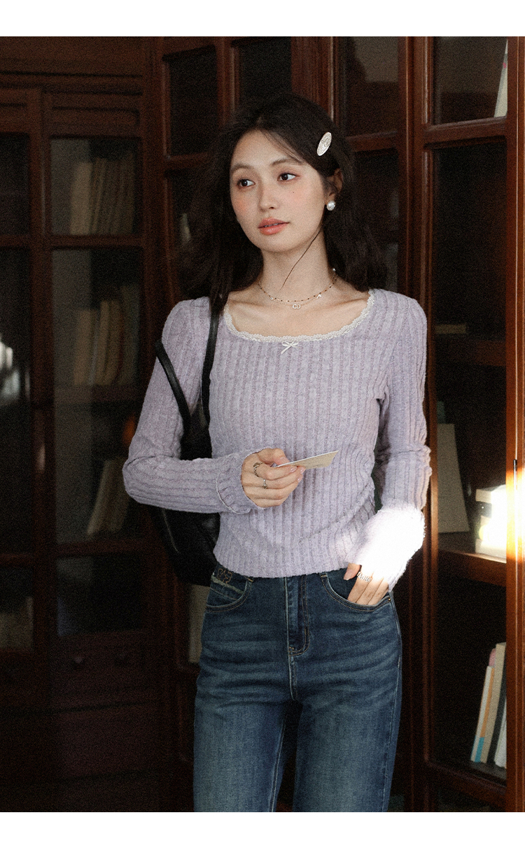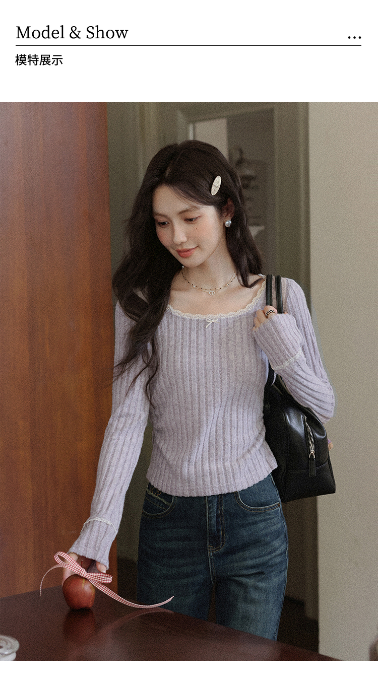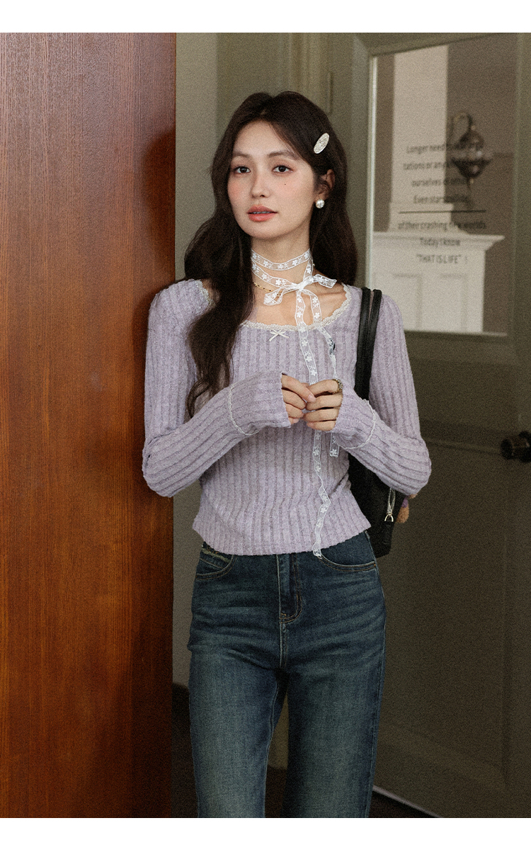 鹿向南「蜜紫堇纱」法式毛针织衫女早秋新款修身显瘦长袖紫色上衣
