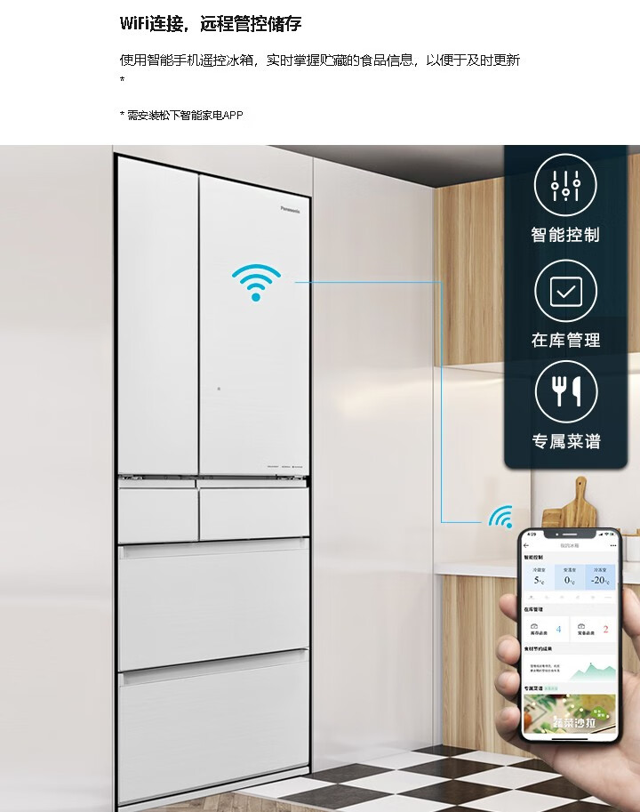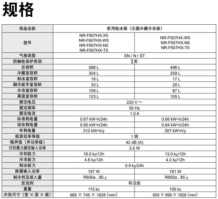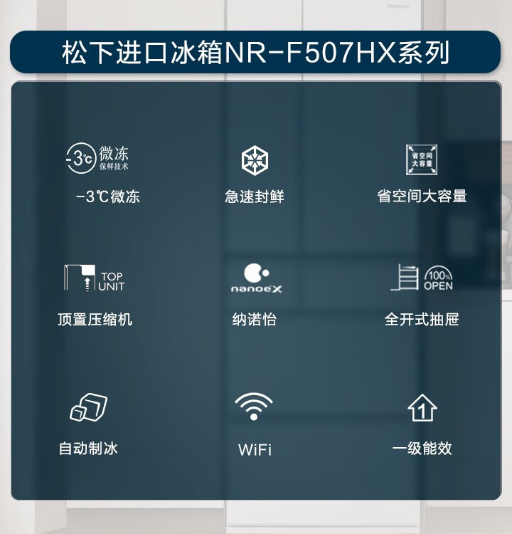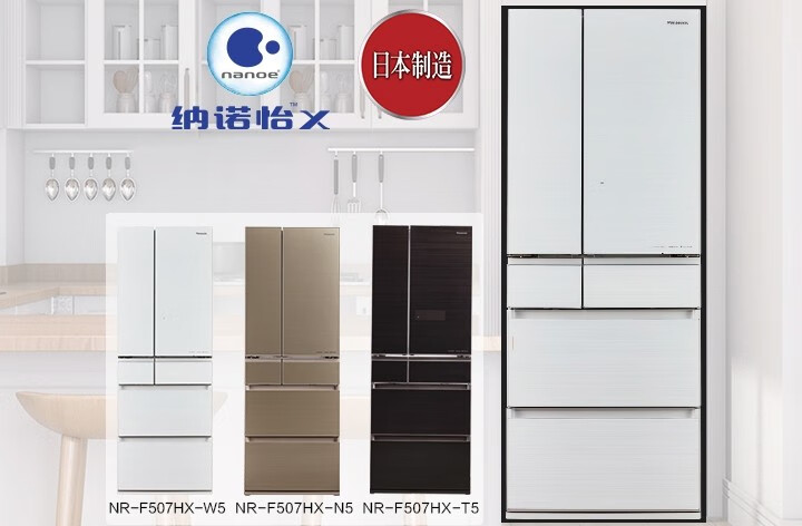 松下(Panasonic)松下(Panasonic)NR-F507HX-W5日本原装进口496升多门智能电冰箱风冷无霜一级能效 自动制冰 月光白 松下进口冰箱白色