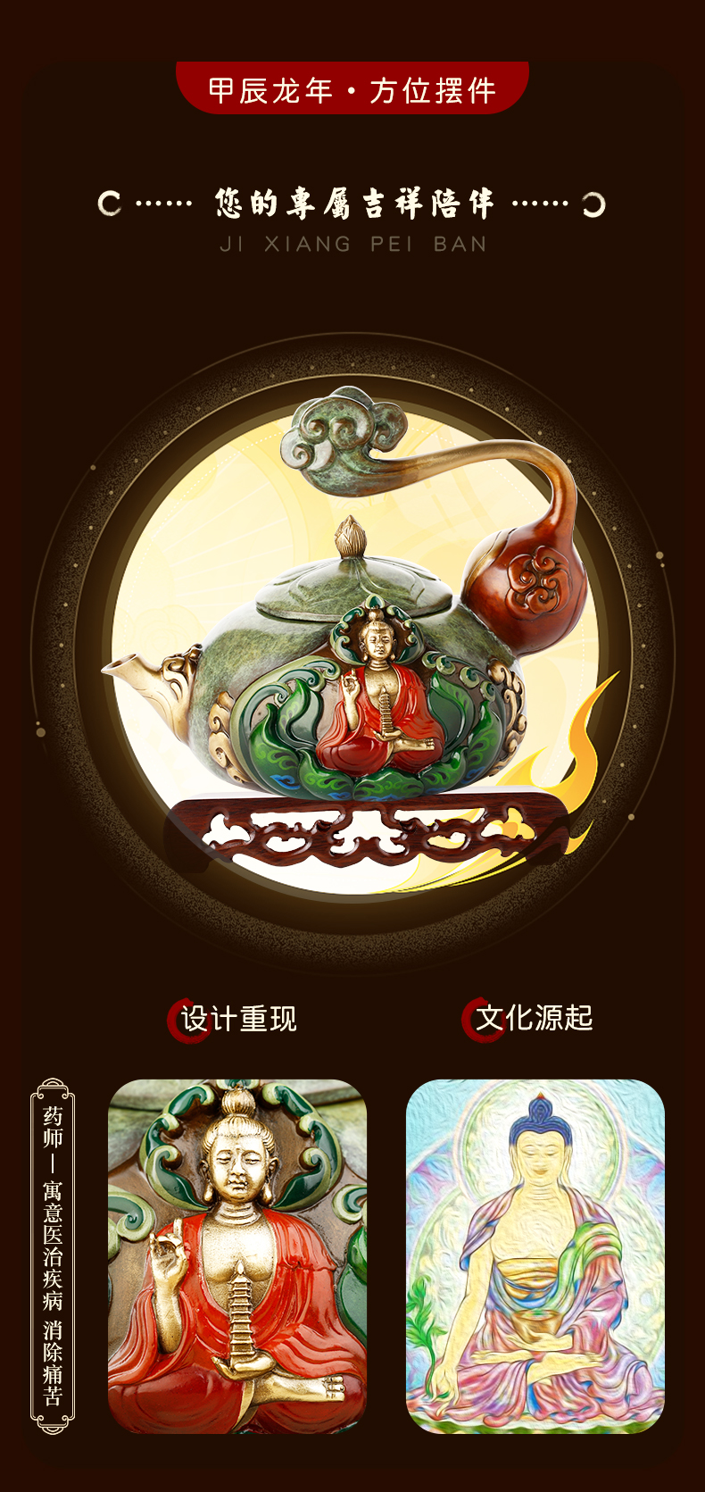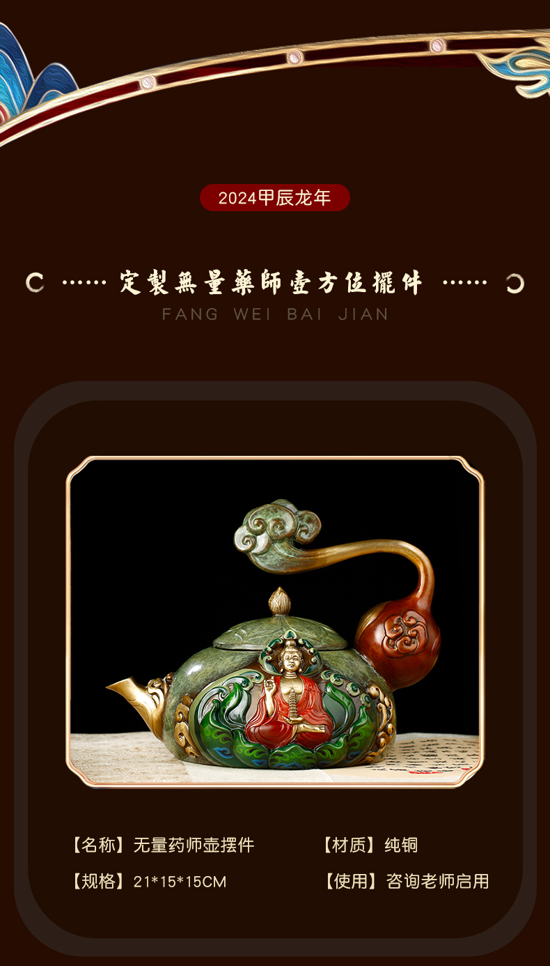 慈元阁2024年方位吉祥物无量药师葫芦壶彩铜精工摆件家居书房玄关摆设