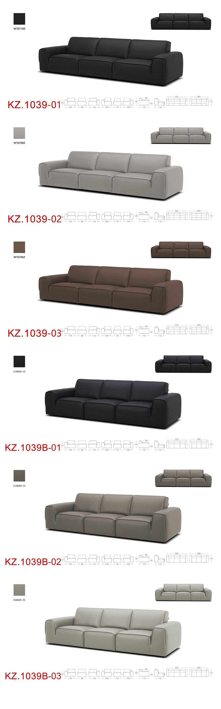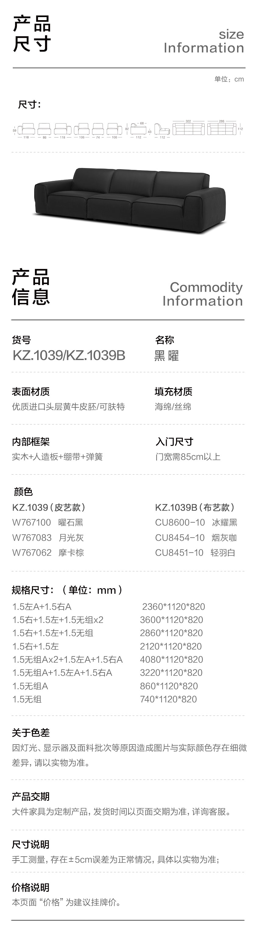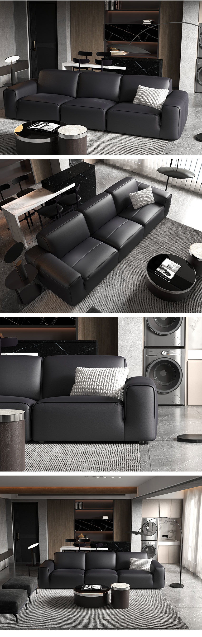 顾家家居整装 现代意式 皮艺沙发 KZ.1039(B) 黑曜