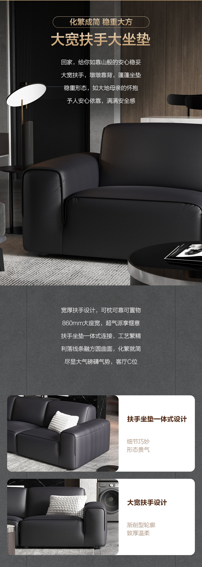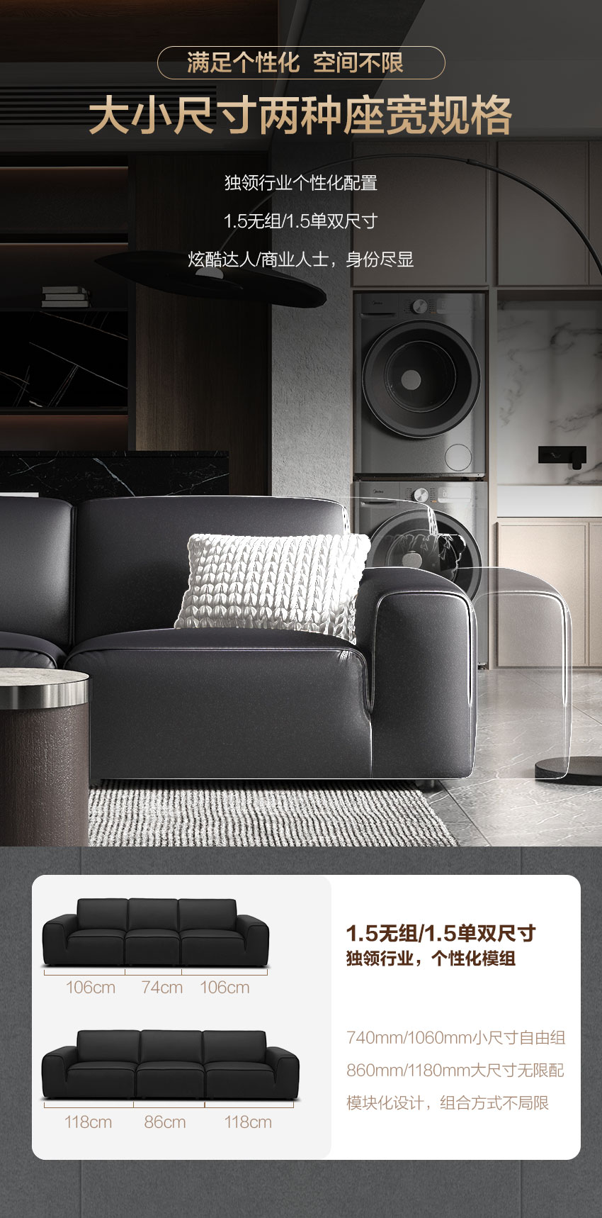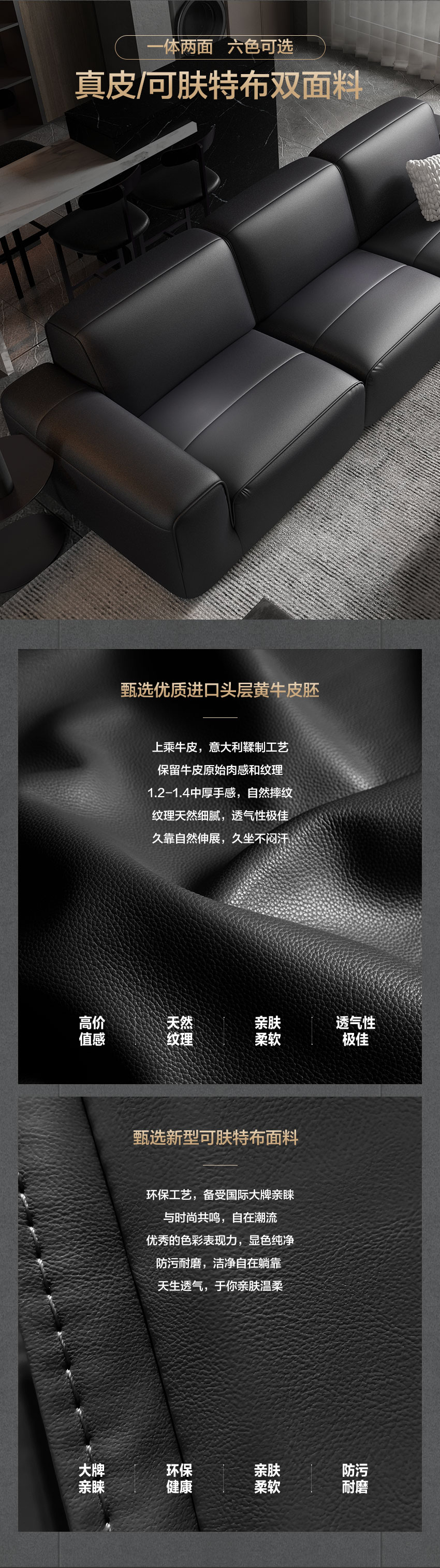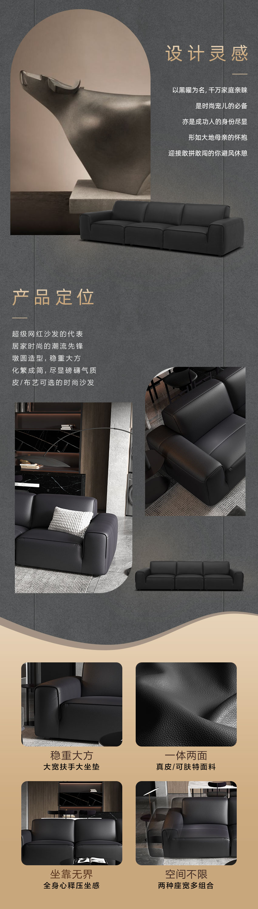 顾家家居整装 现代意式 皮艺沙发 KZ.1039(B) 黑曜