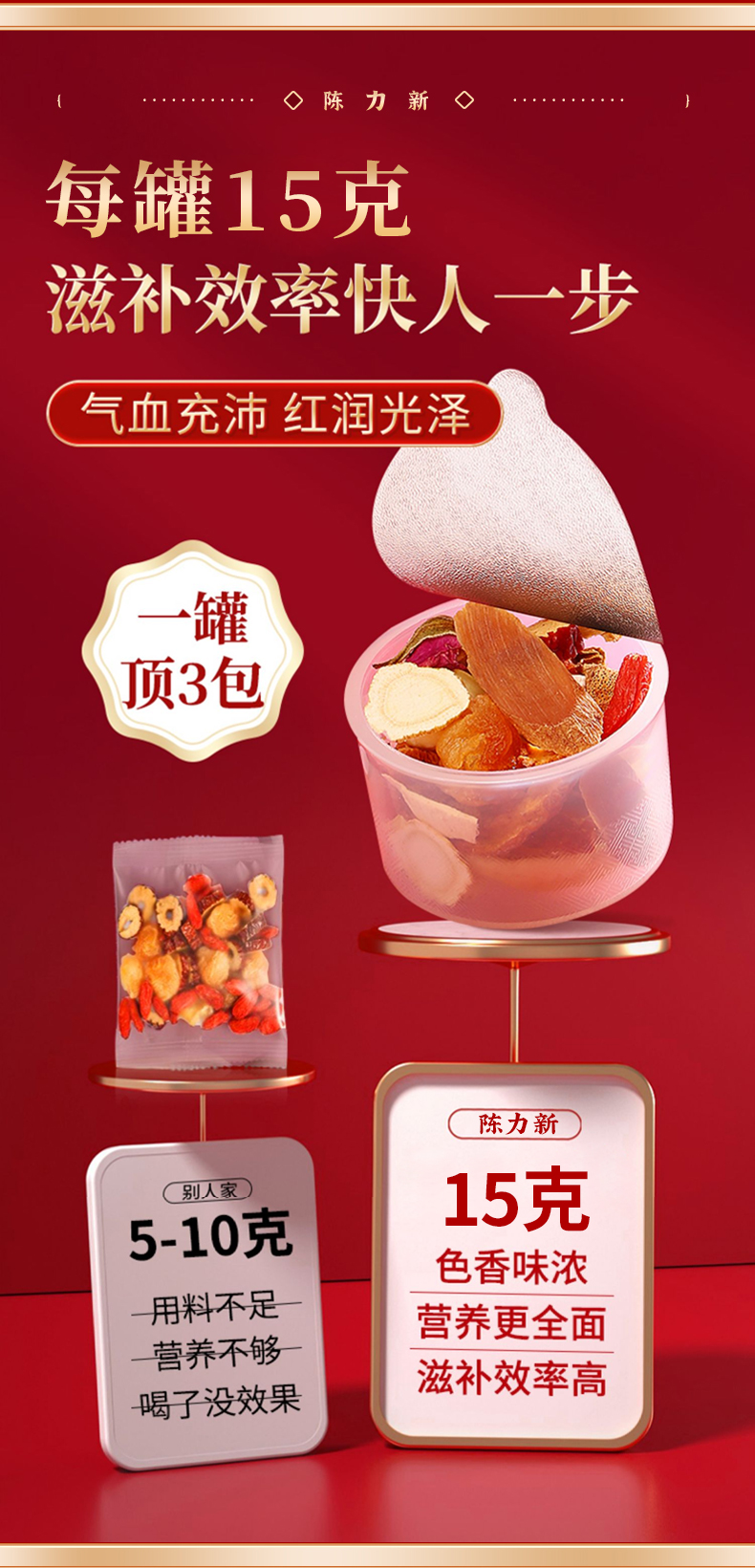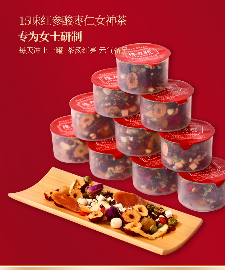 陈力新 红参酸枣仁女神茶女生熬夜独立小罐养生茶玫瑰元气血茶气色茶450g