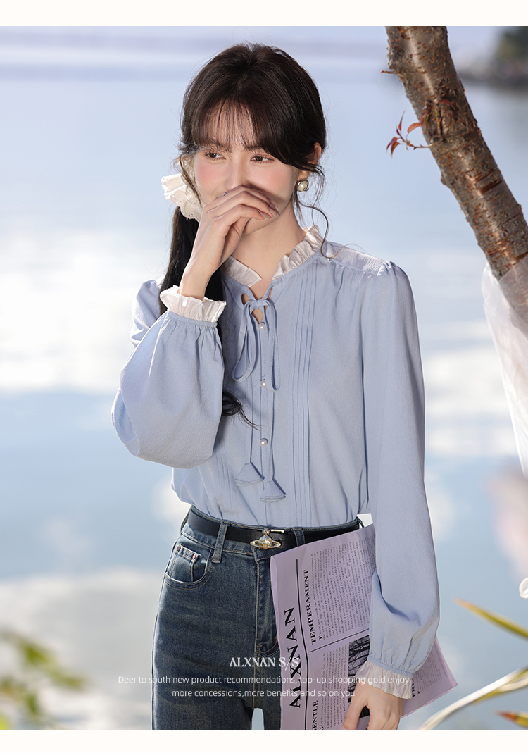 鹿向南「风吹蓝铃」法式蓝色衬衫