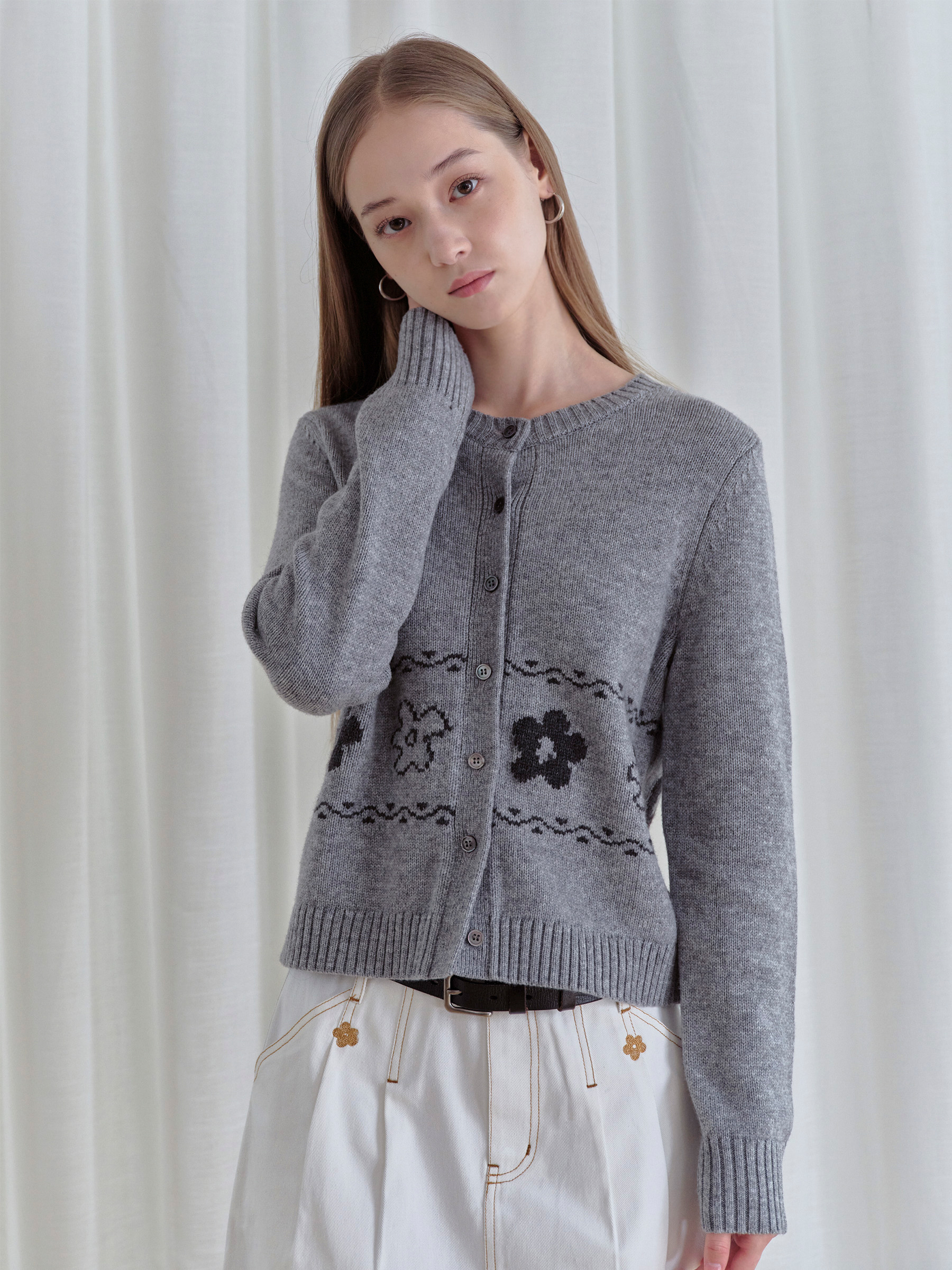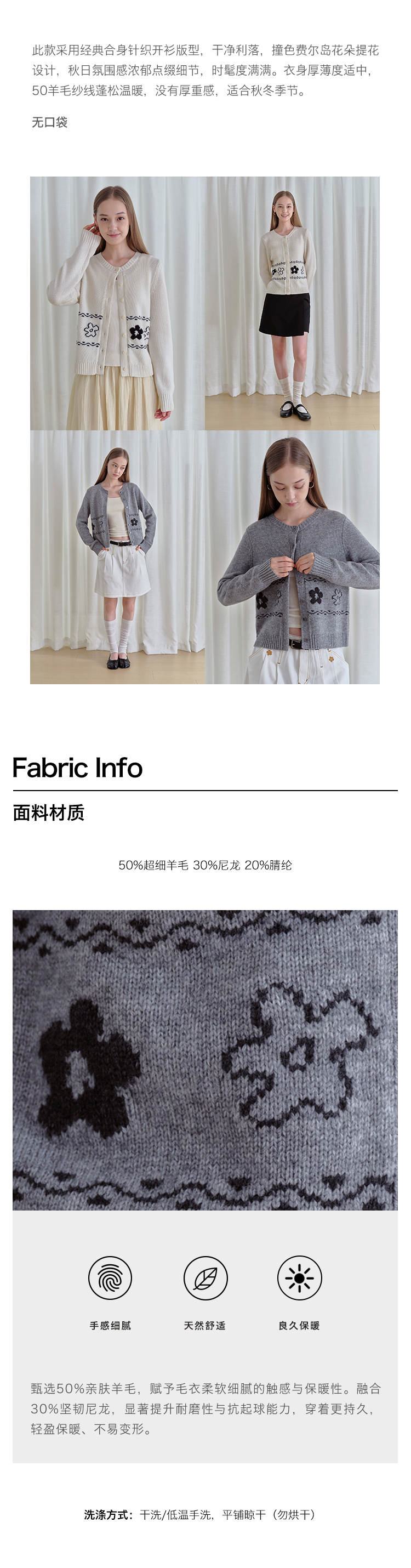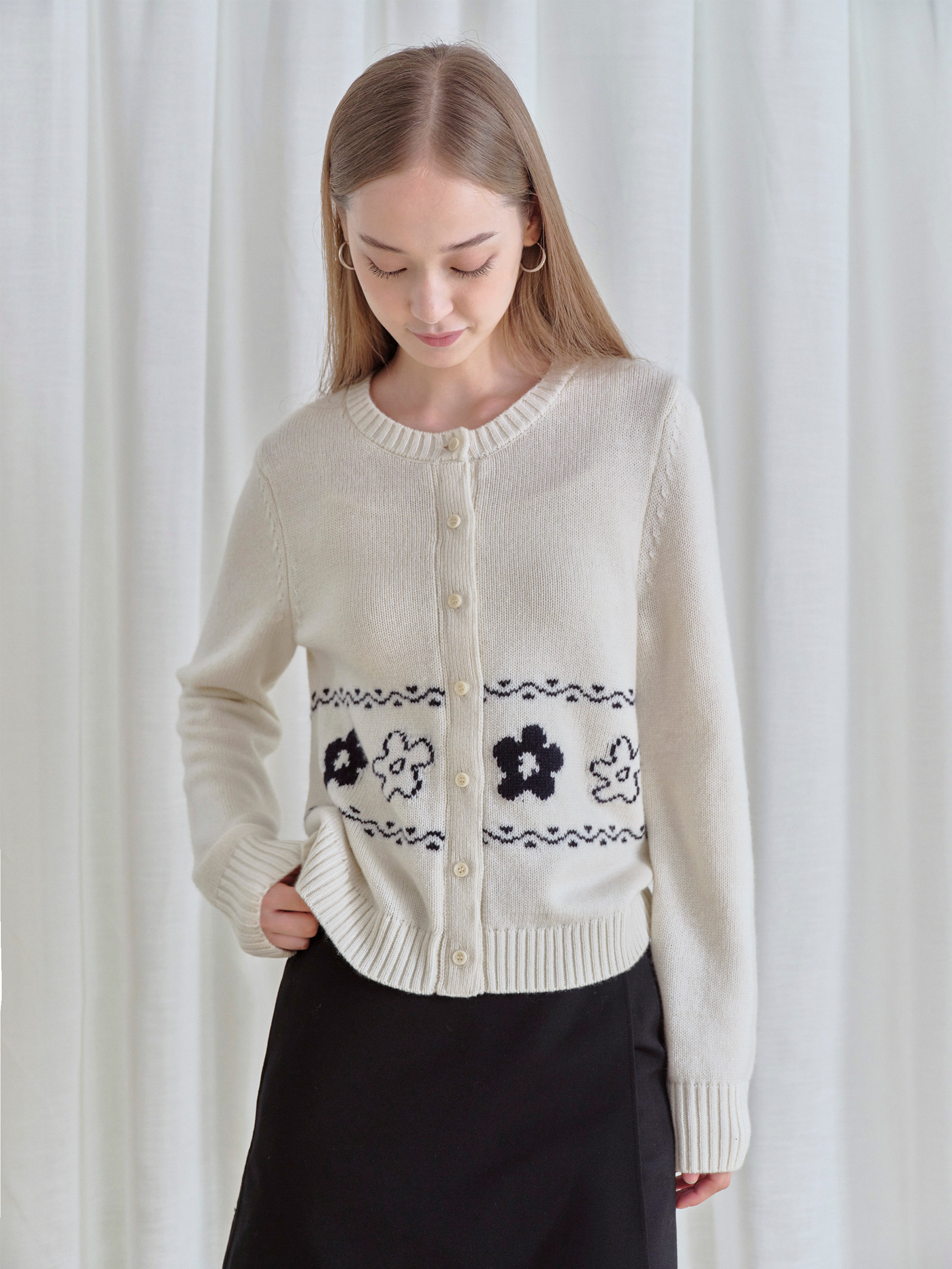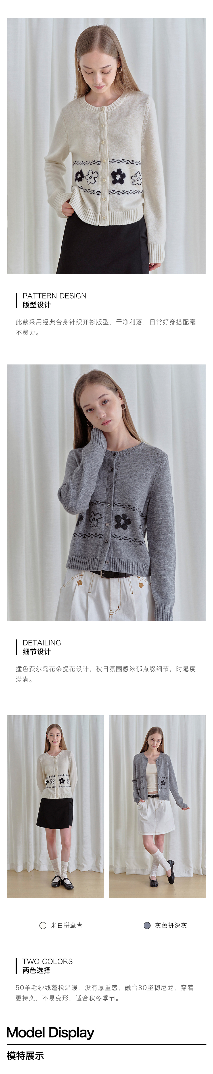 ForPoem 现货 25/FW原创设计圆领简约花朵费尔岛开衫羊毛针织开衫