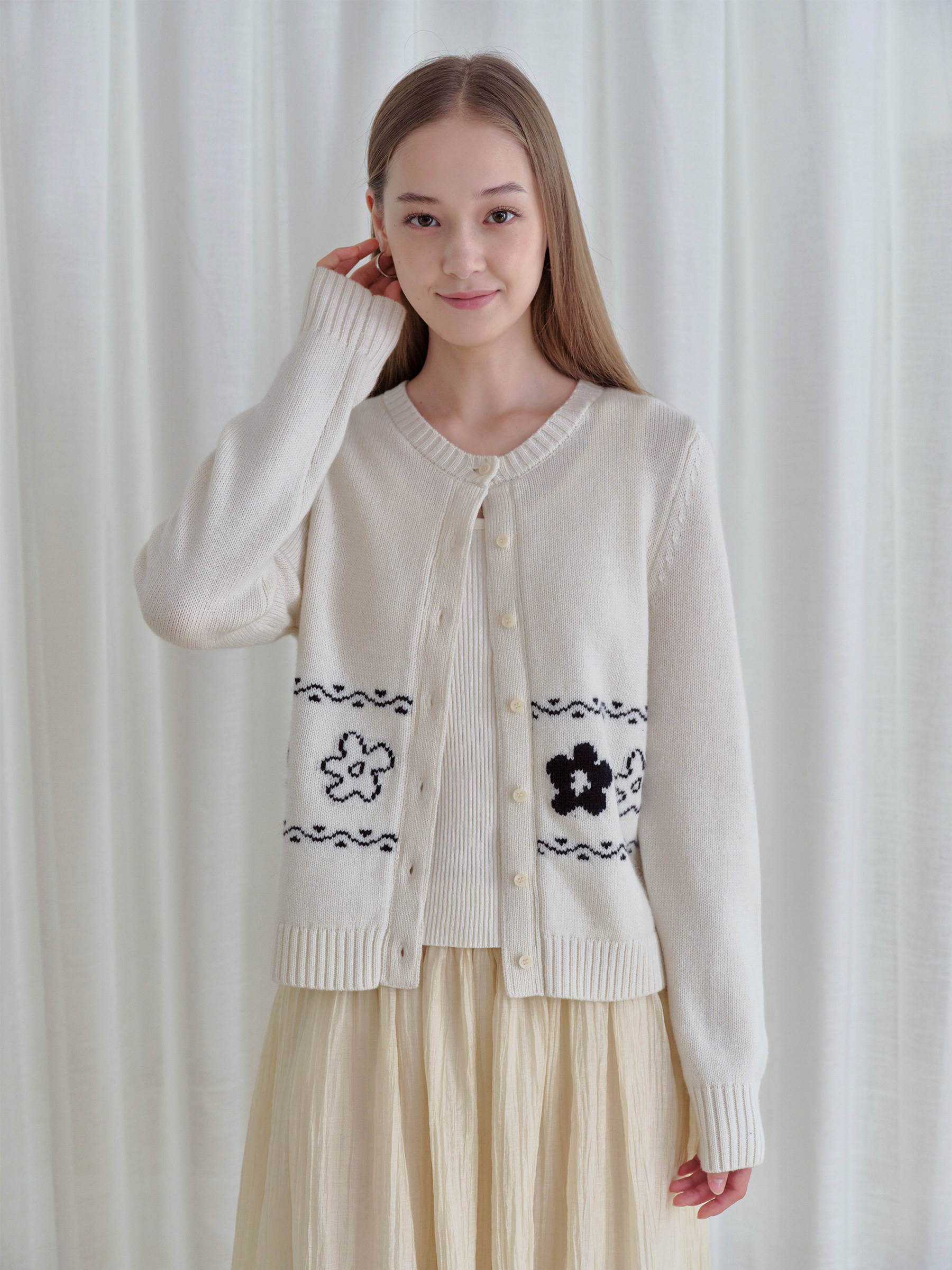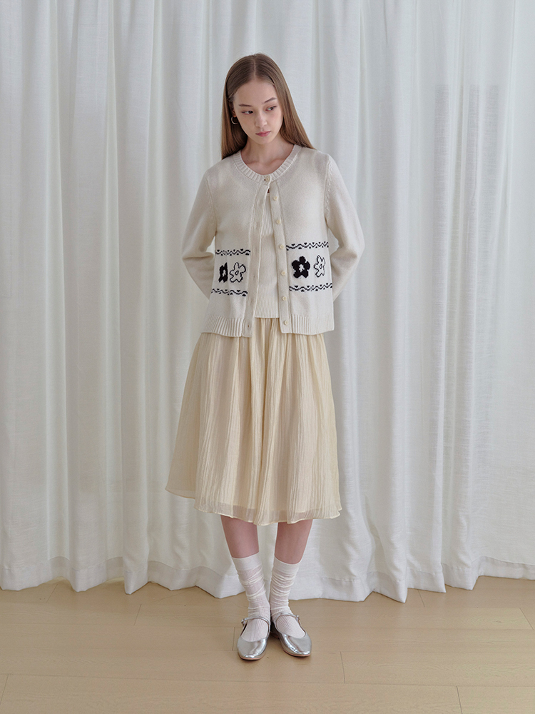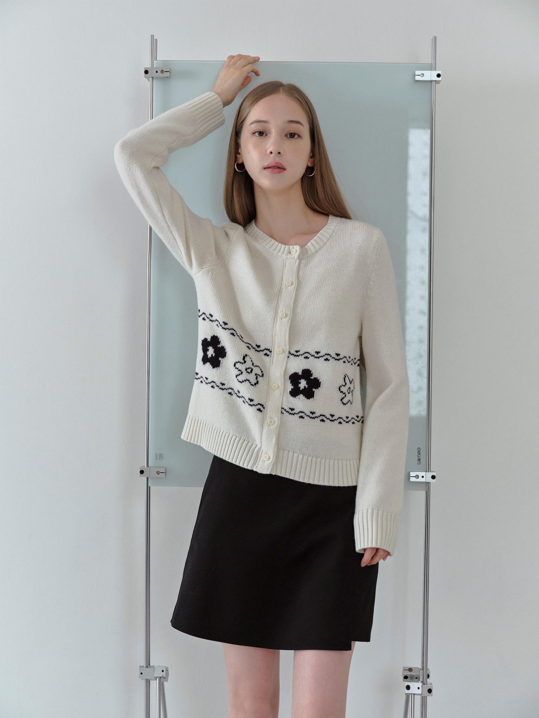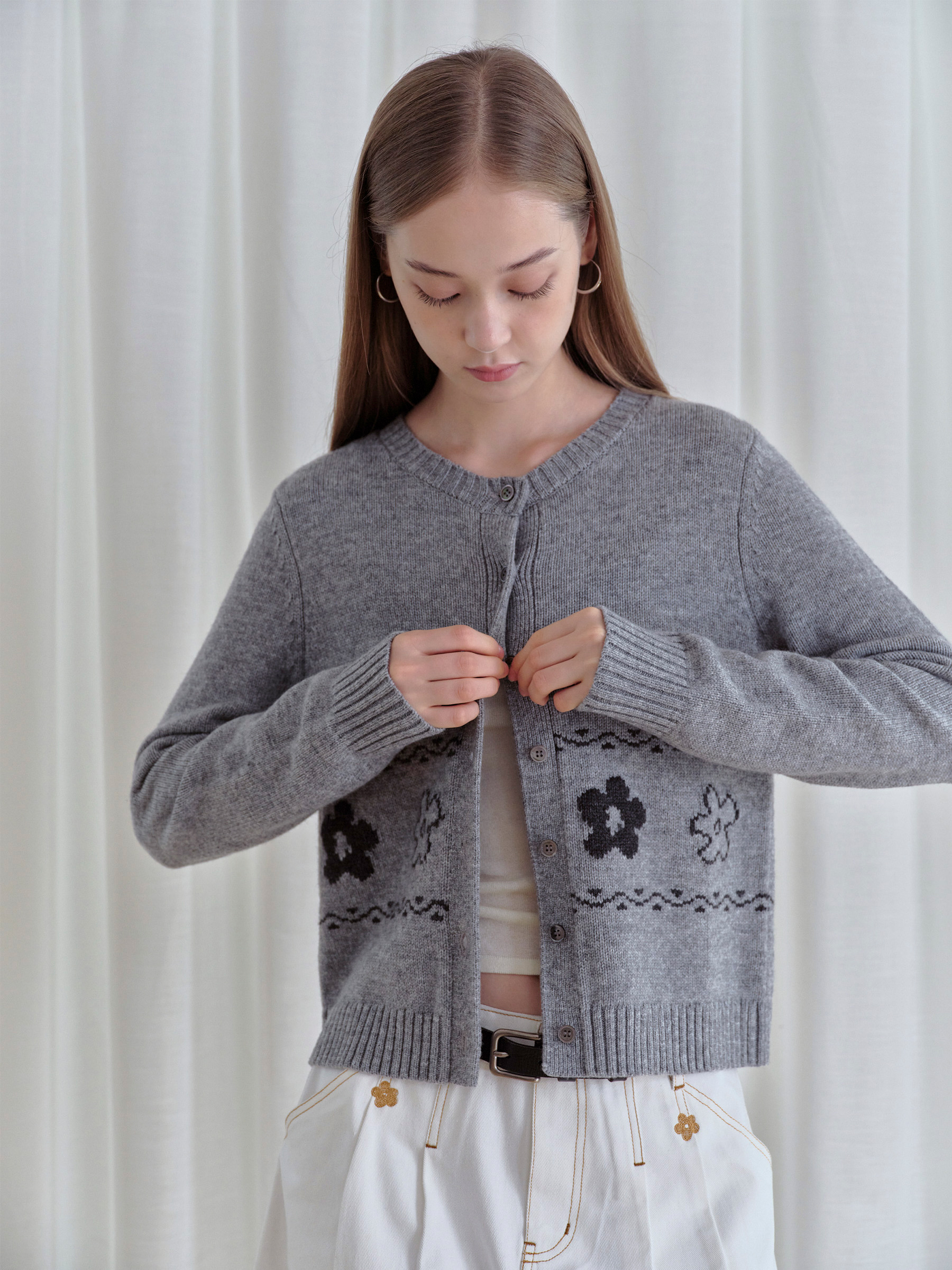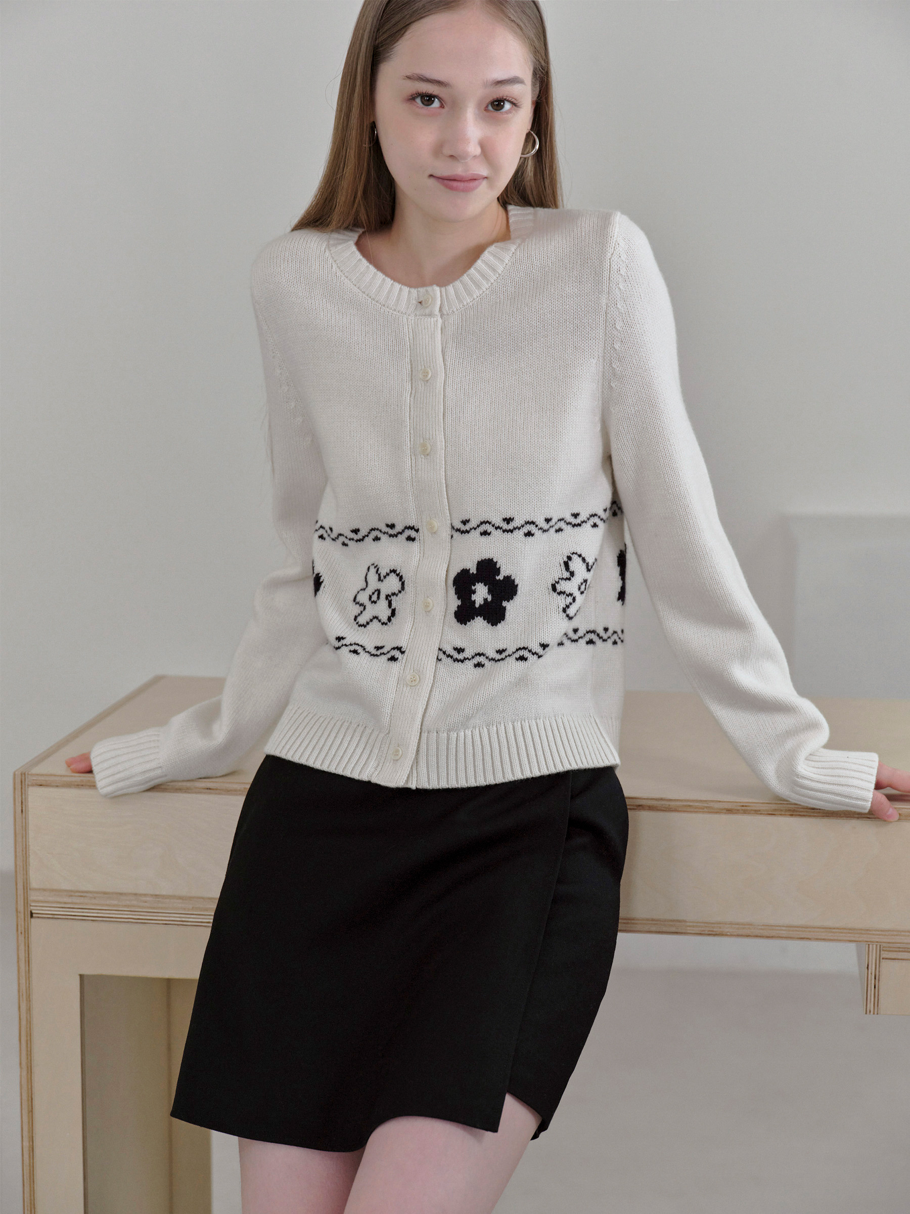 ForPoem 现货 25/FW原创设计圆领简约花朵费尔岛开衫羊毛针织开衫