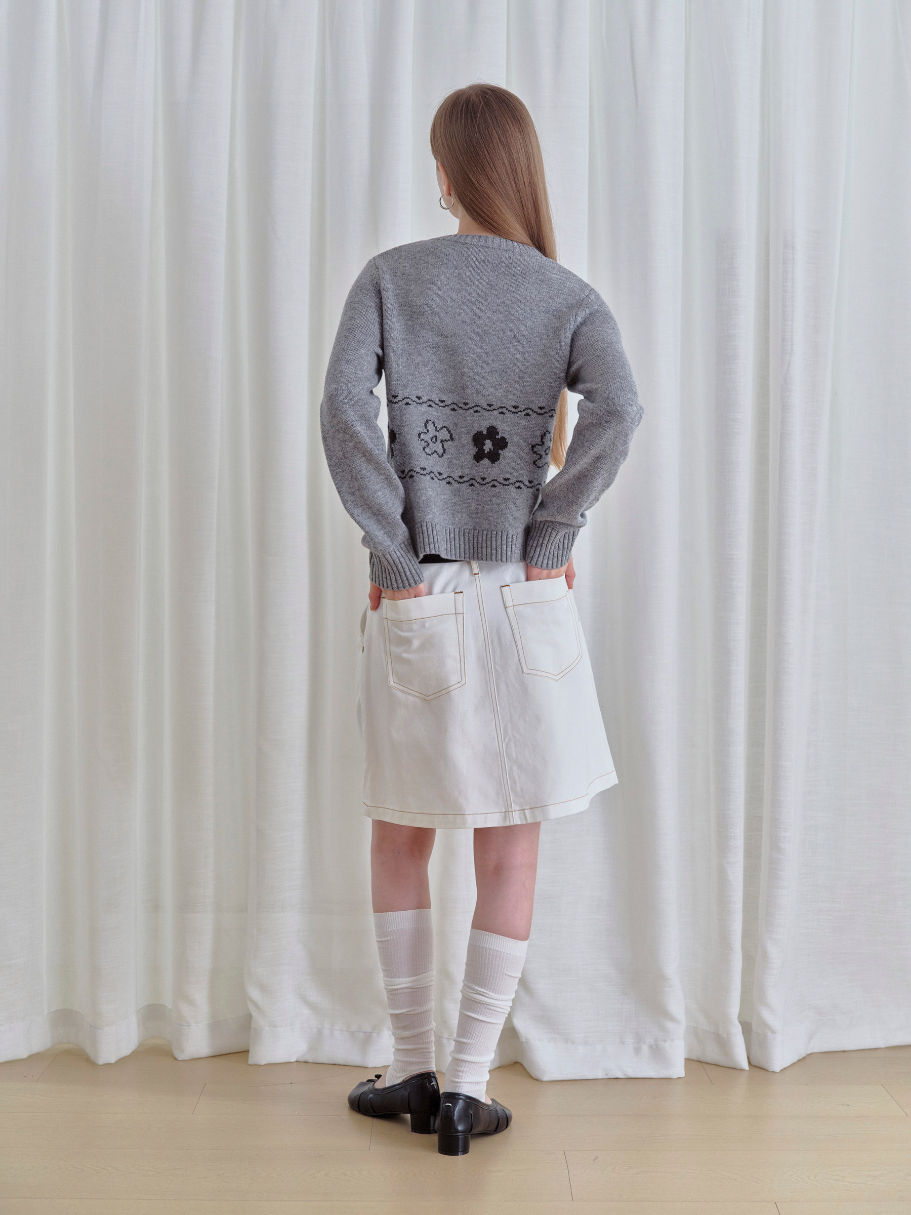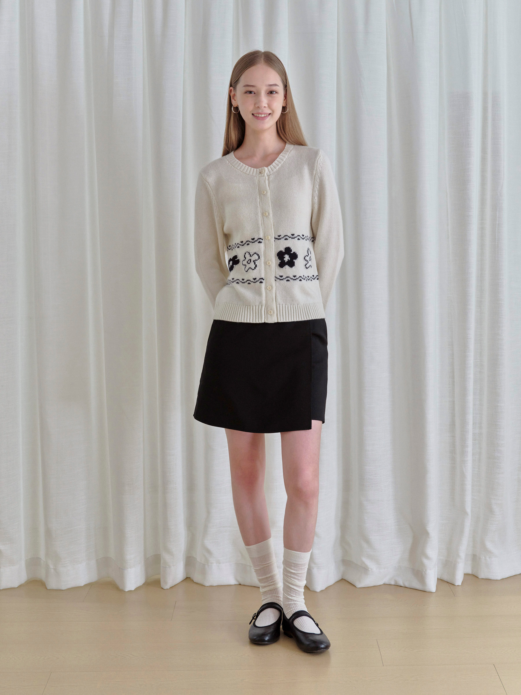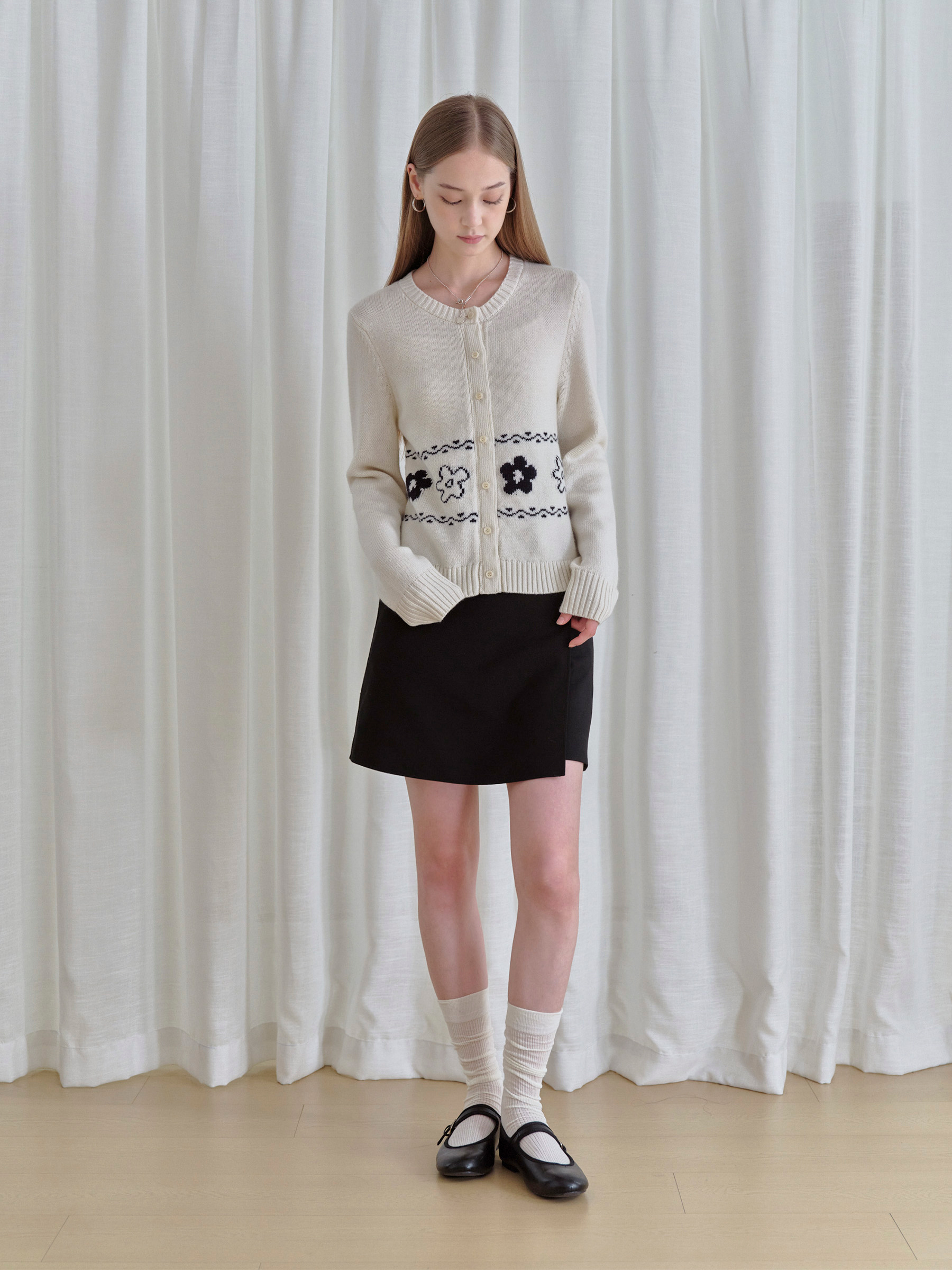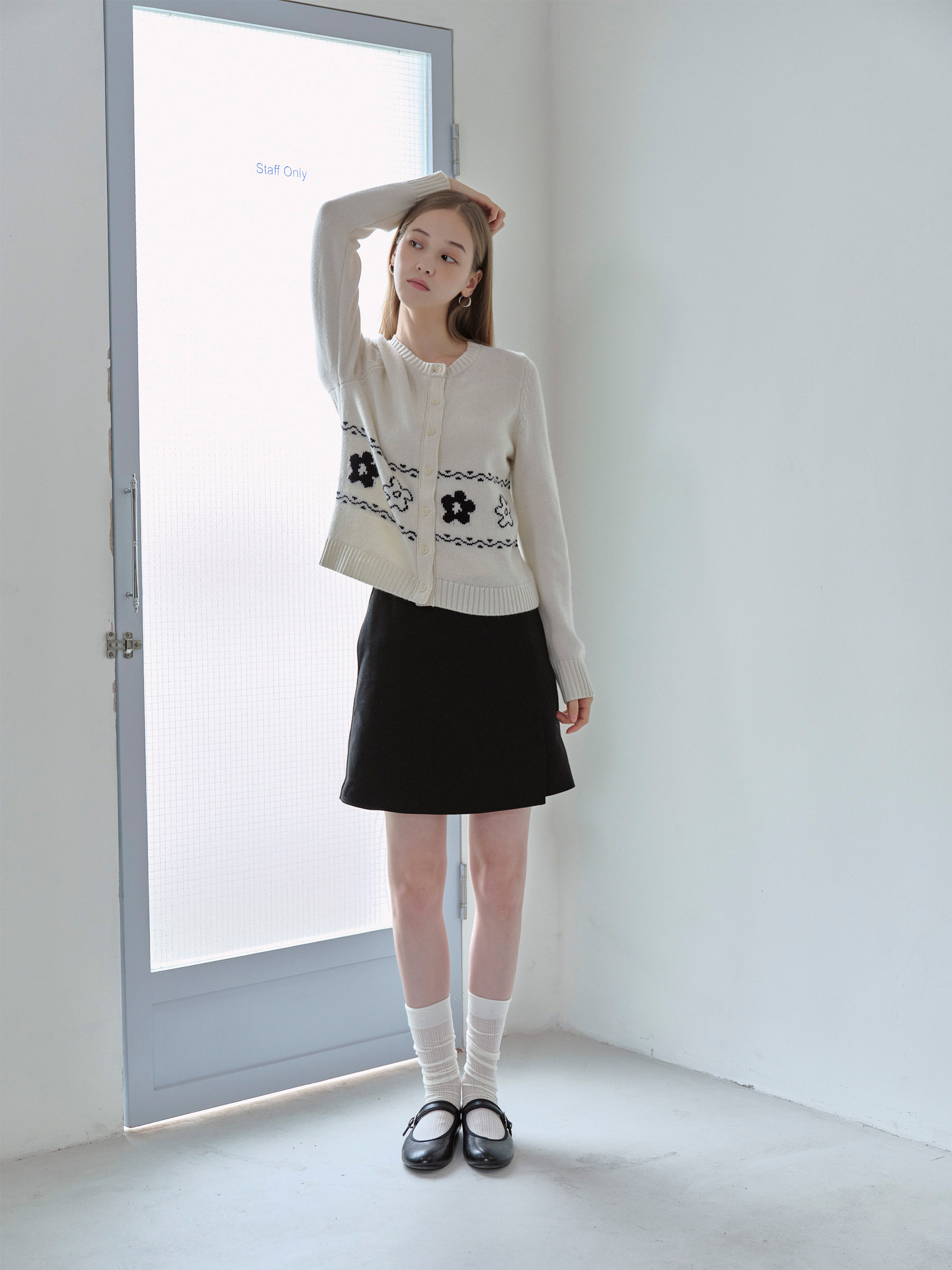 ForPoem 现货 25/FW原创设计圆领简约花朵费尔岛开衫羊毛针织开衫
