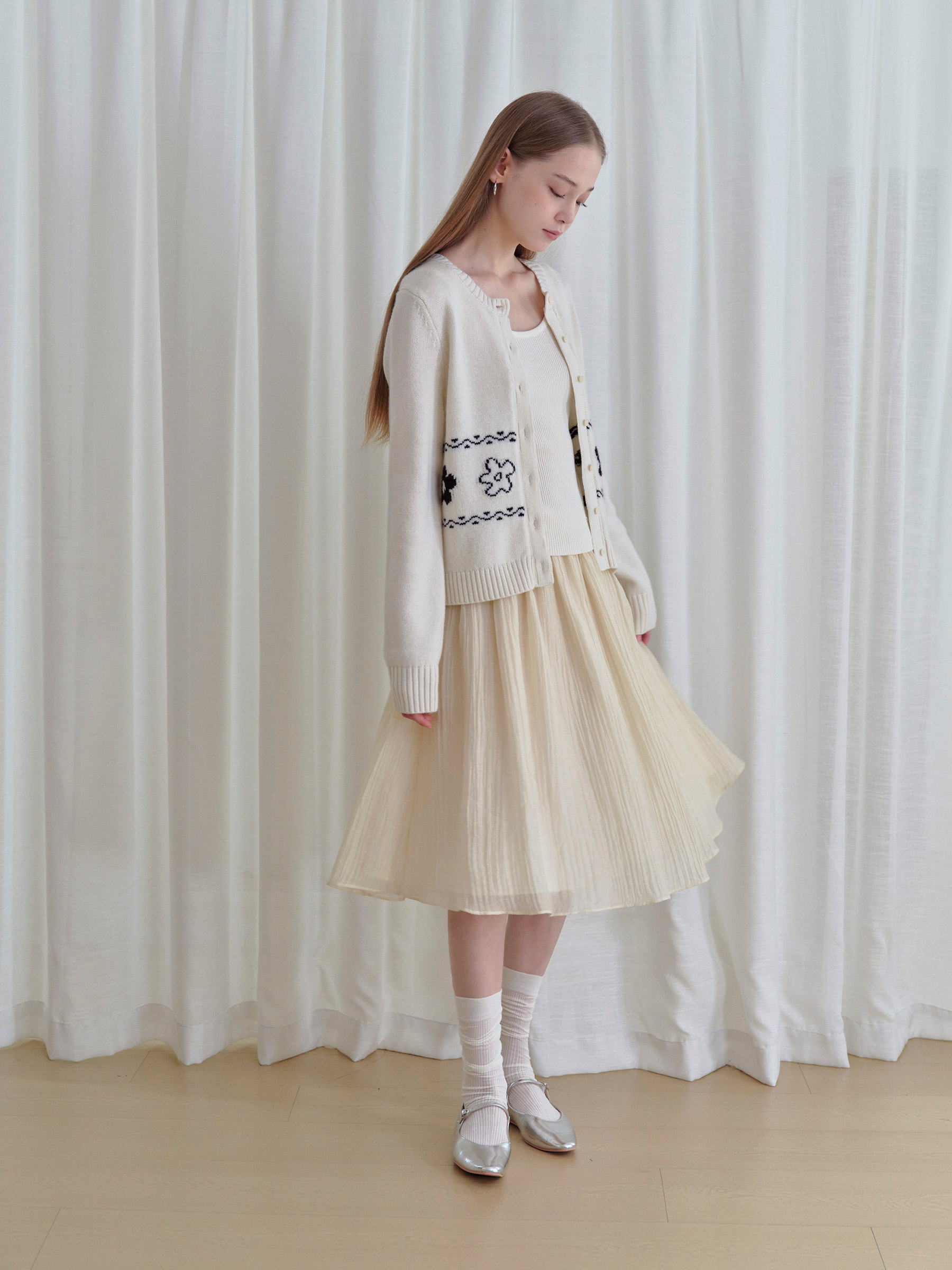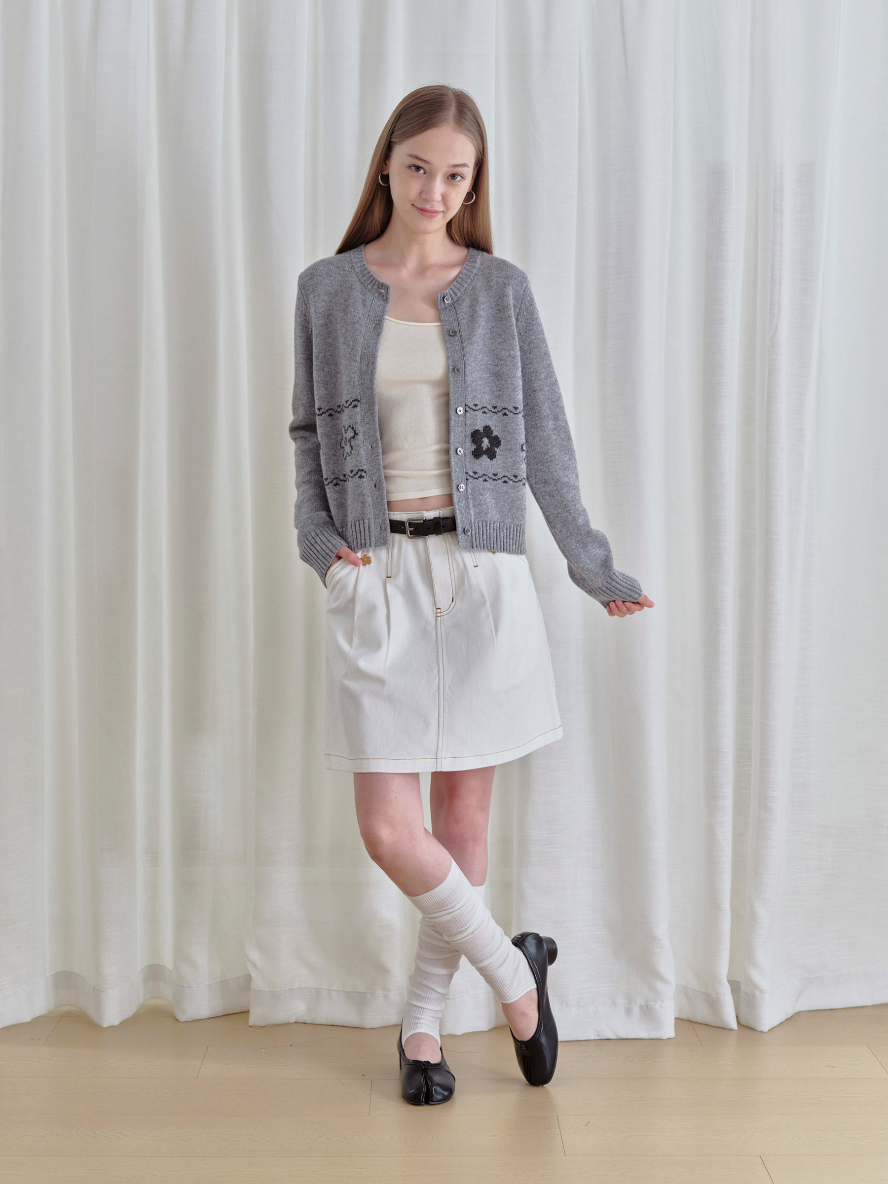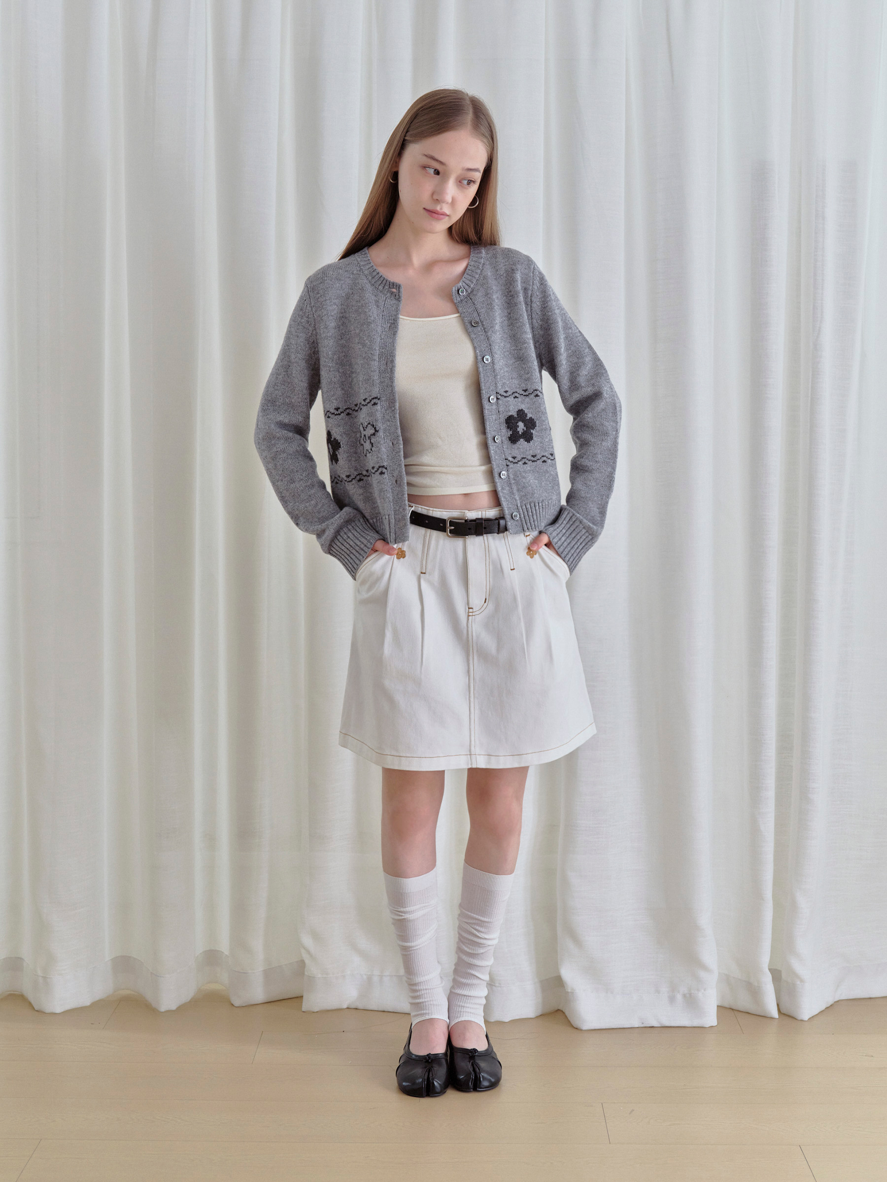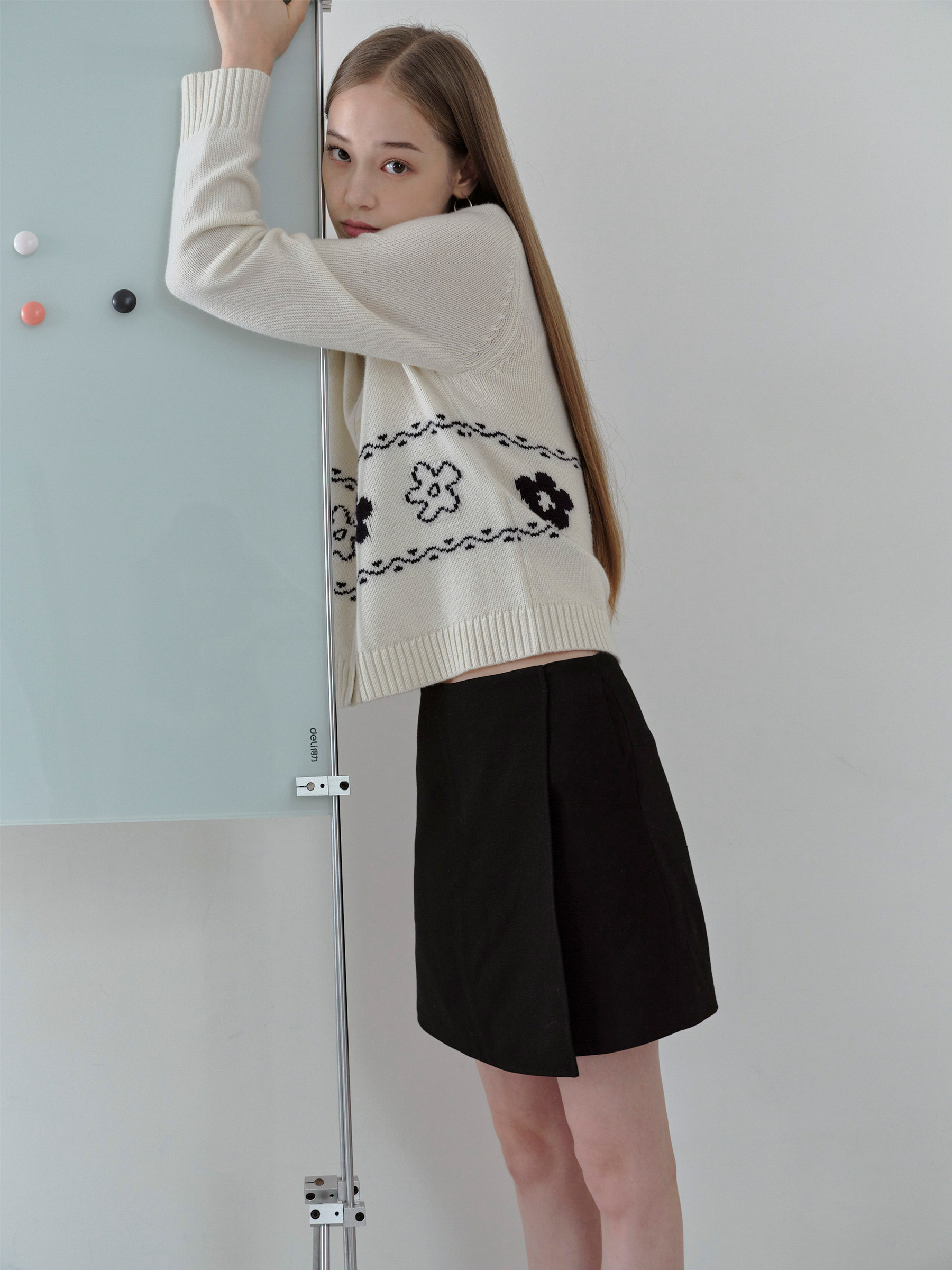 ForPoem 现货 25/FW原创设计圆领简约花朵费尔岛开衫羊毛针织开衫