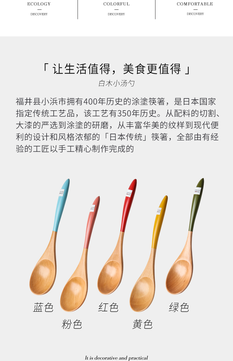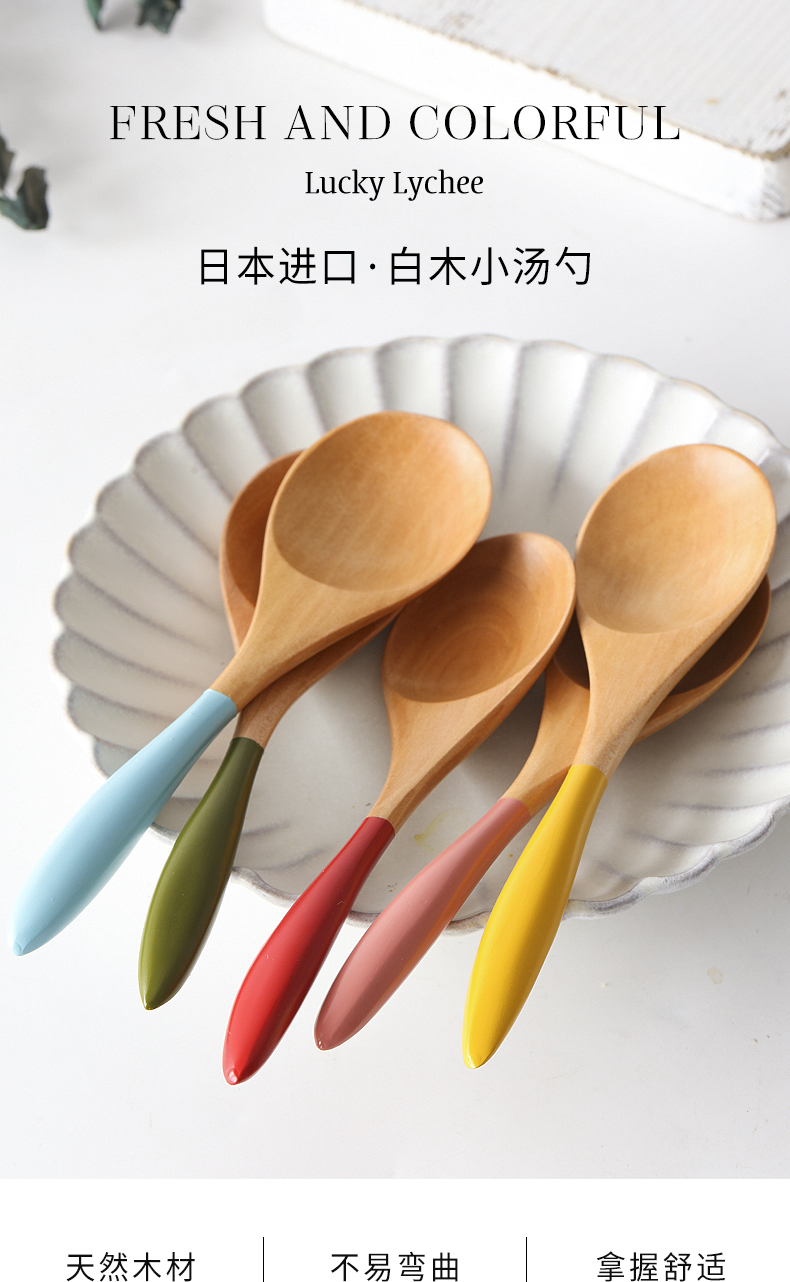 日本进口石田白木彩色汤匙 蓝色