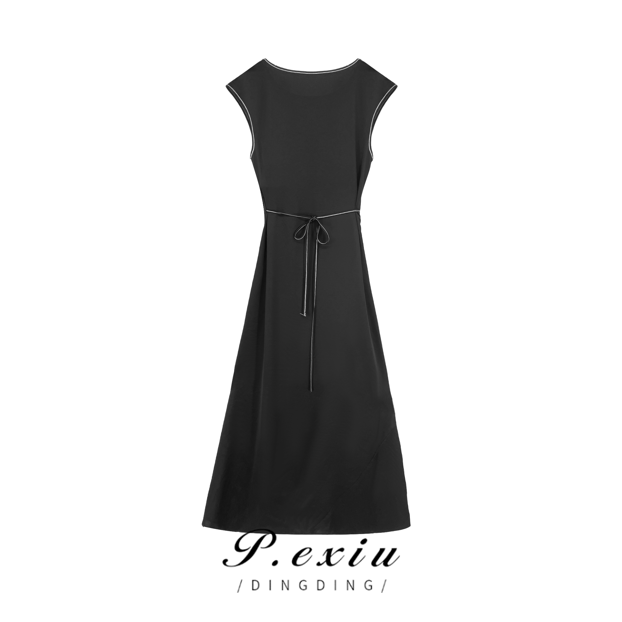 04-3潘依绣丁丁宠粉醋-酸-塌肩袖褶皱收腰气质显瘦连衣裙 20959T