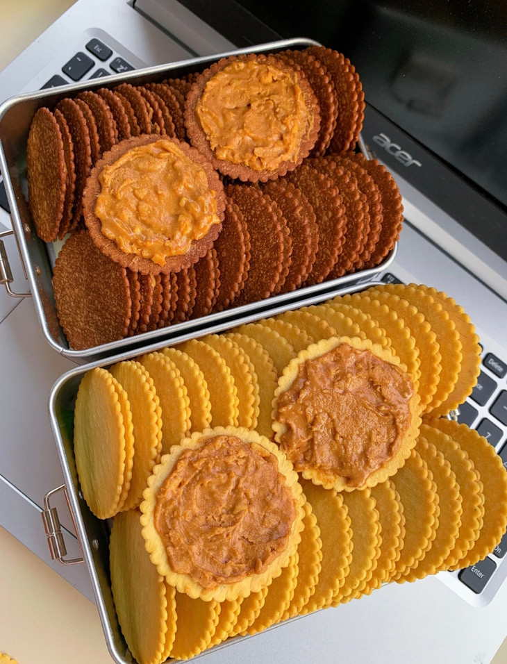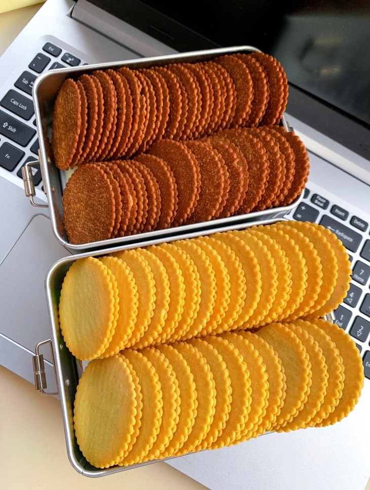 每一片饼干都是低温烘焙工艺🔥 色泽金黄诱人 肉眼可见的薄脆🤭 已经成为了办公室下午茶的新搭档-