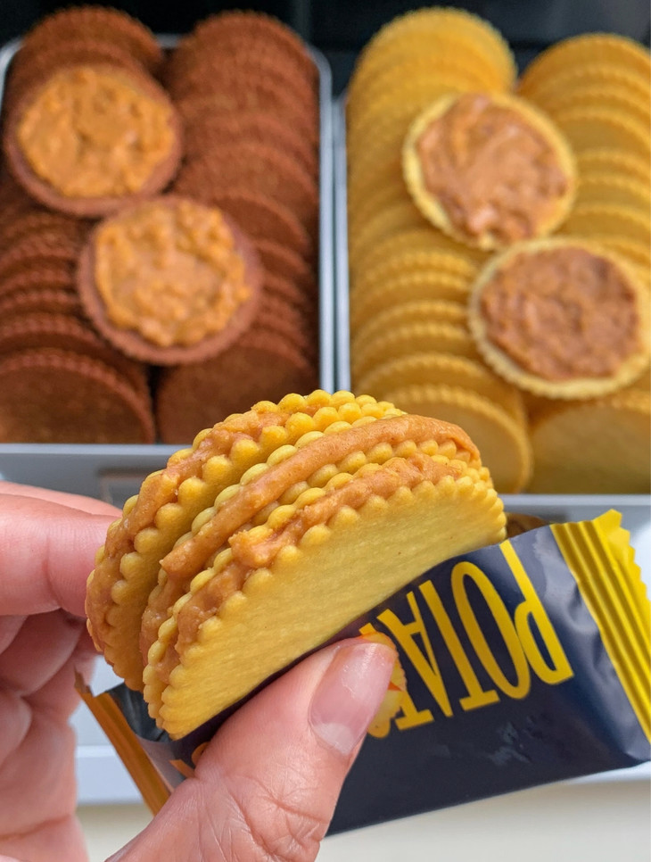 👉甜咸拿捏住了 多一分太齁 少一分不够 舔完手指还想嗦包装的那一种hhhh❗️❗️ 别人家夹心甜到锁喉 咱家用现磨花生酱 甜味像风轻轻刮过 咸味勾着舌头追 办公室抽屉塞一盒 半天就能掏空😍