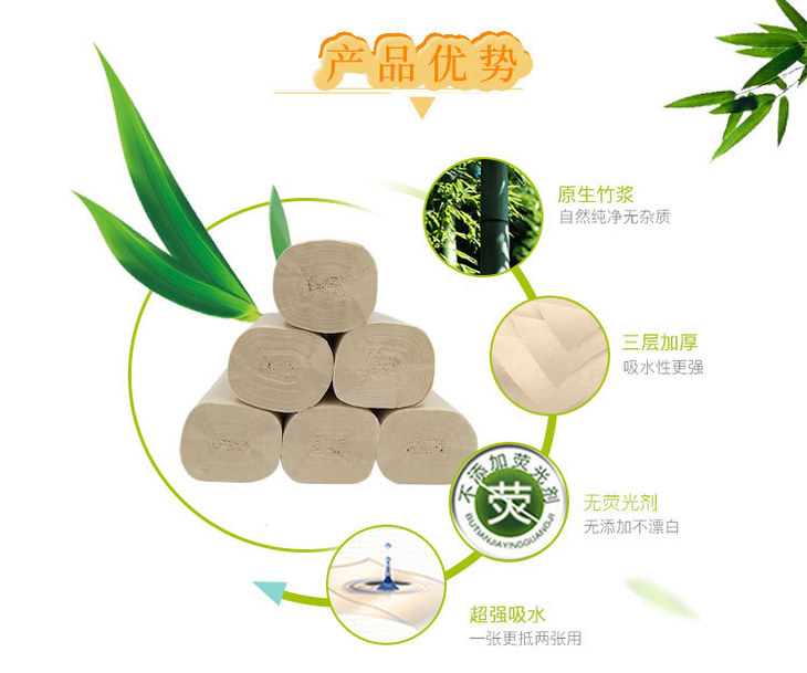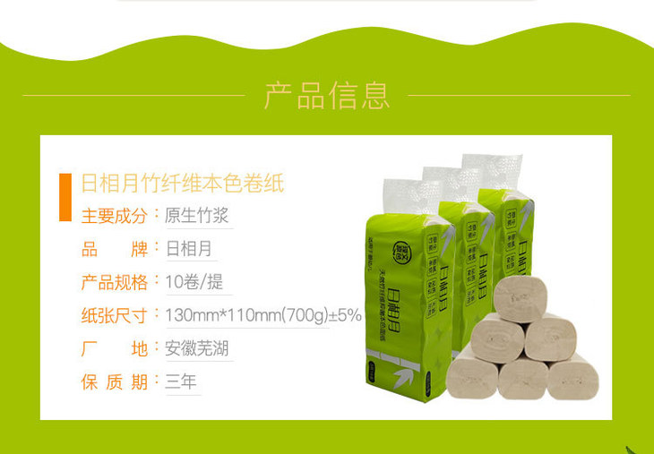 【竹纤维无芯卷纸】日相月1提10卷家用餐巾纸卫生纸擦手面巾纸RXY0400