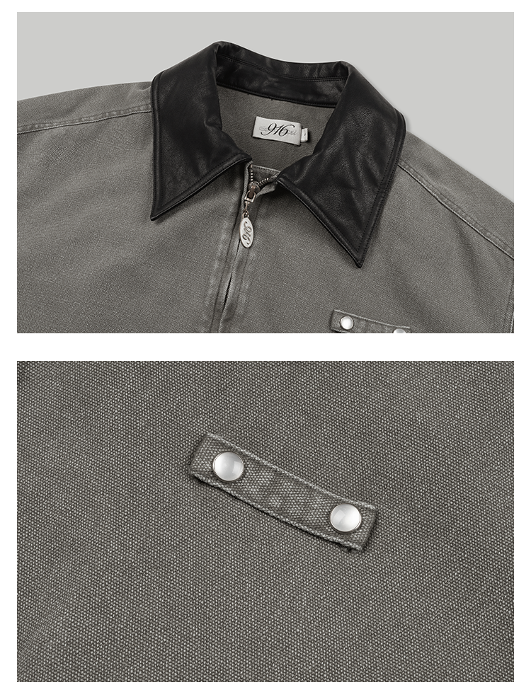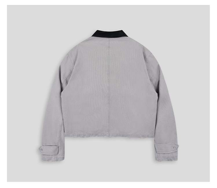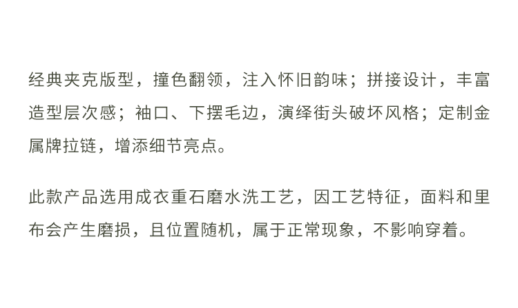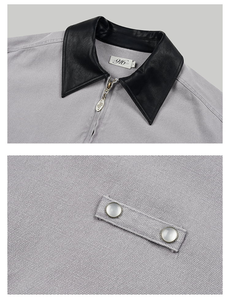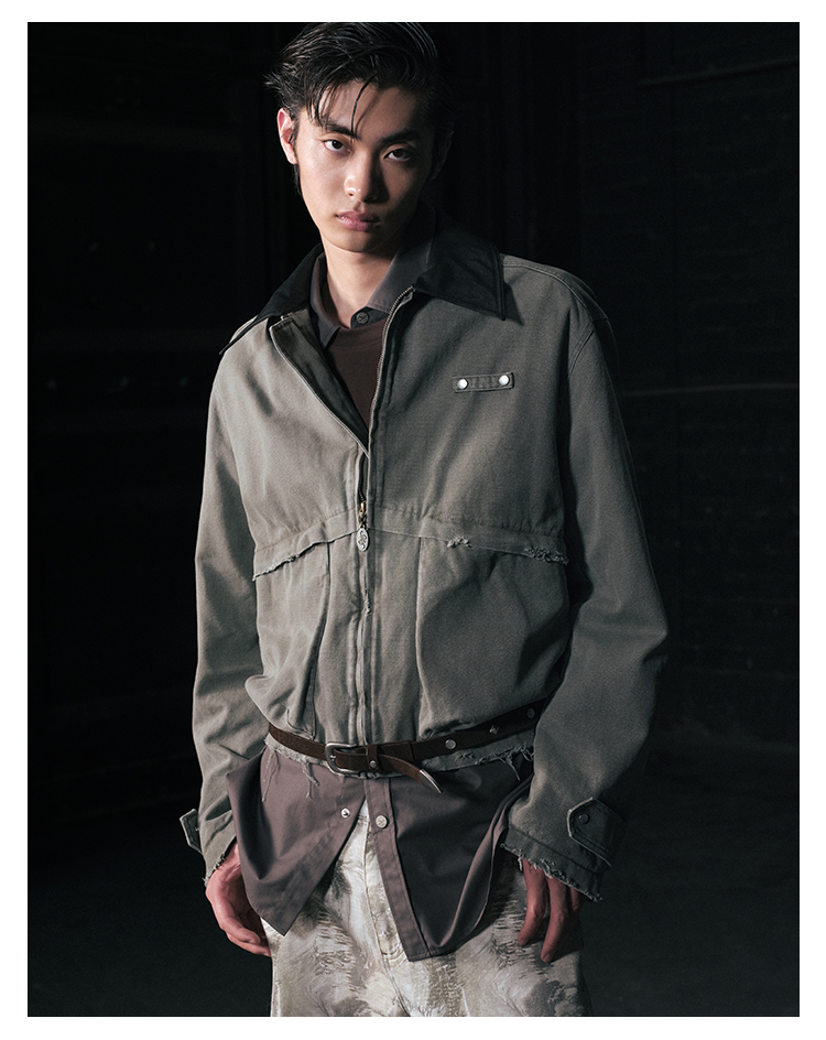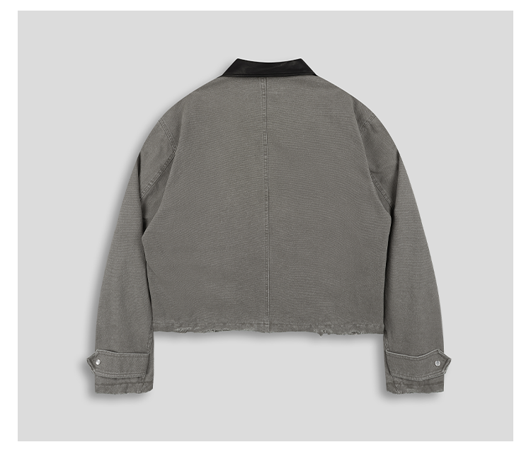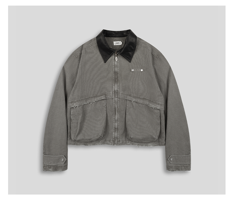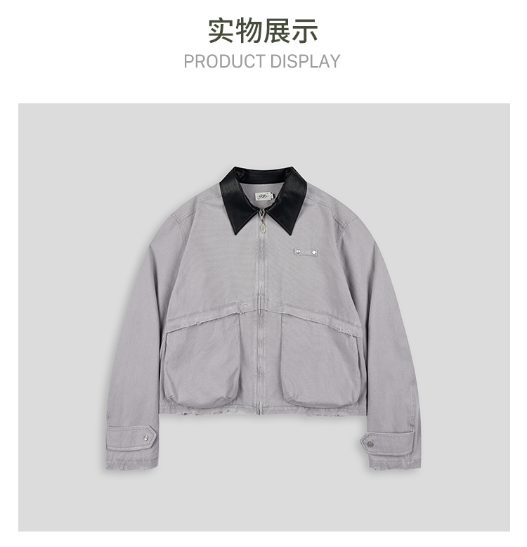 GOODBAI 916 撞色翻领磨毛拼接毛边拉链外套