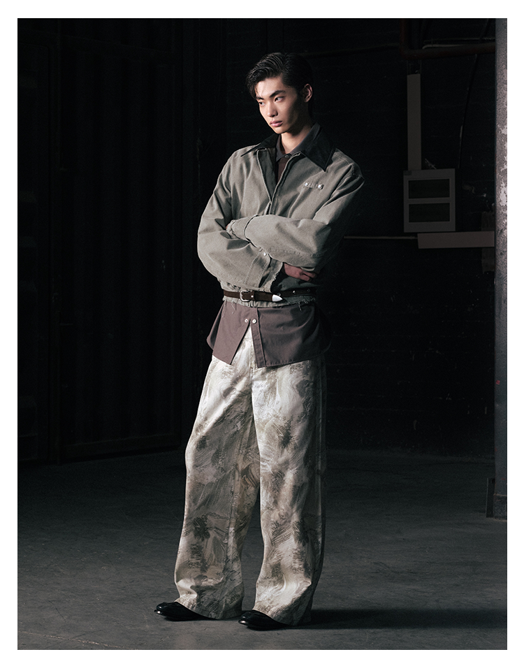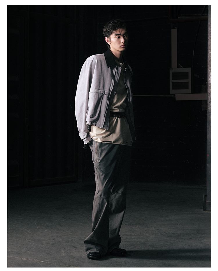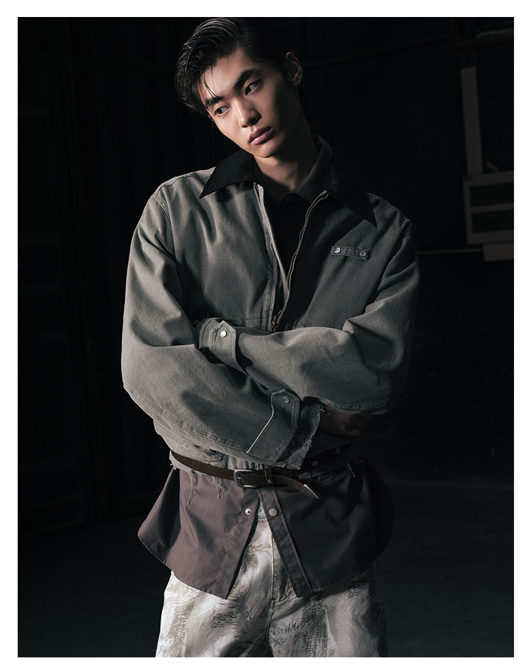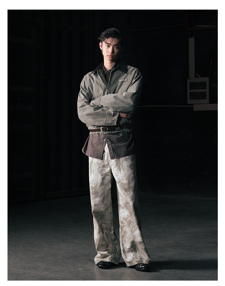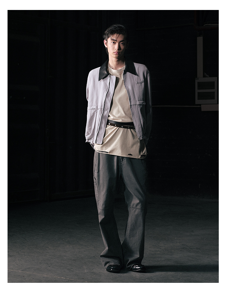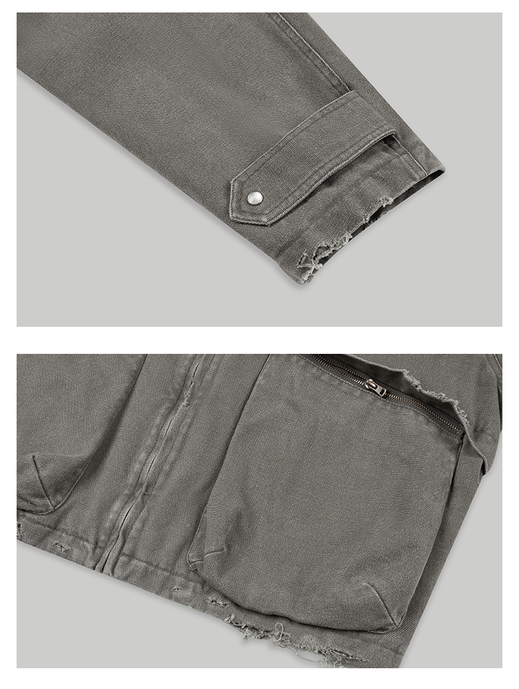 GOODBAI 916 撞色翻领磨毛拼接毛边拉链外套