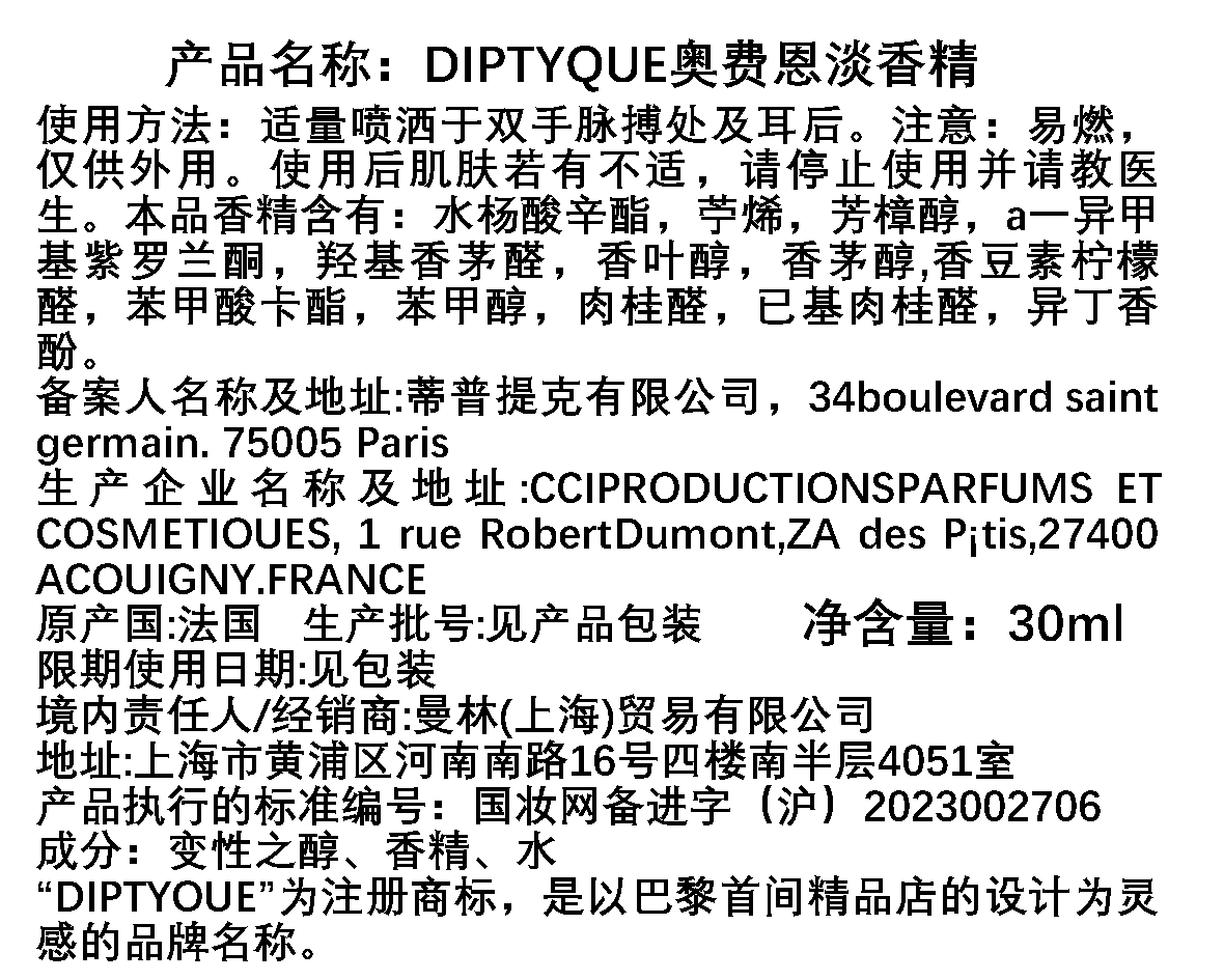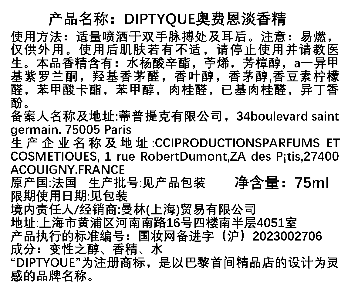 Diptyque蒂普(菩)提克 奥费恩/爵梦香水