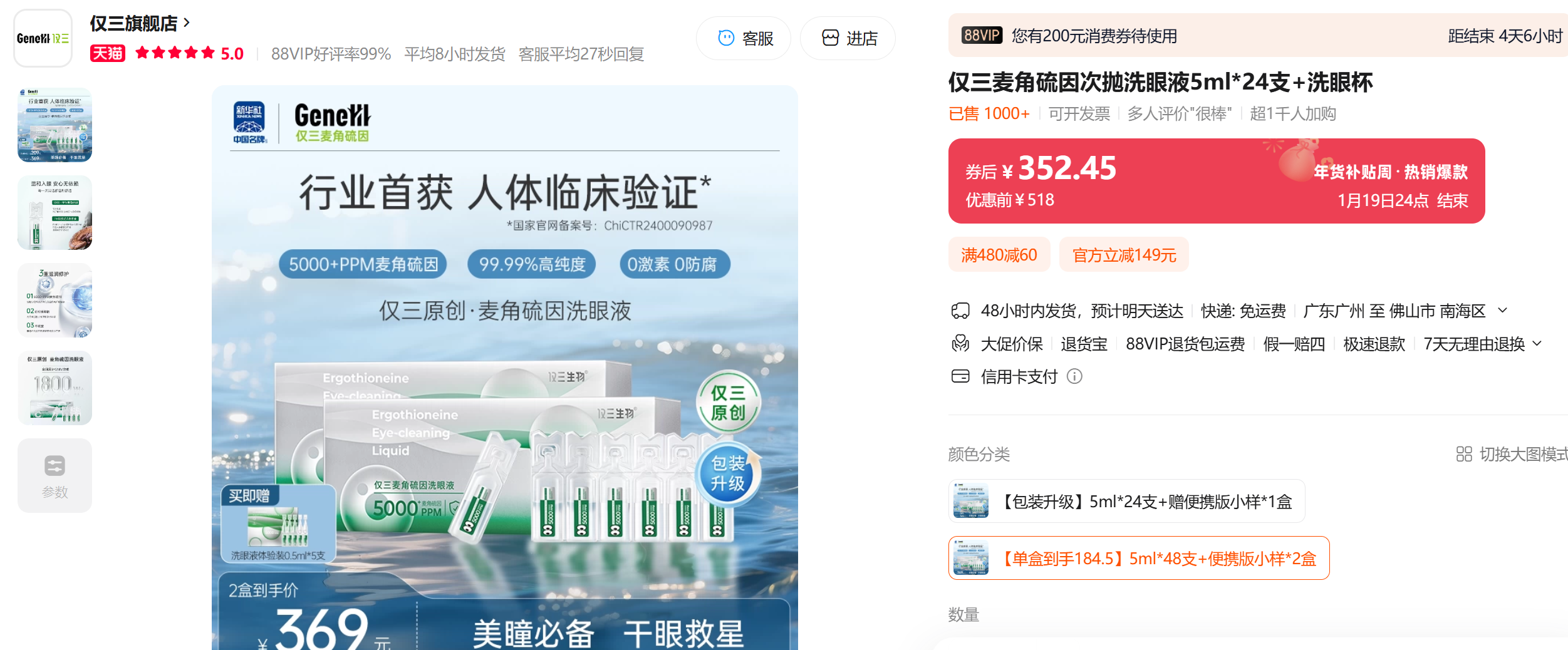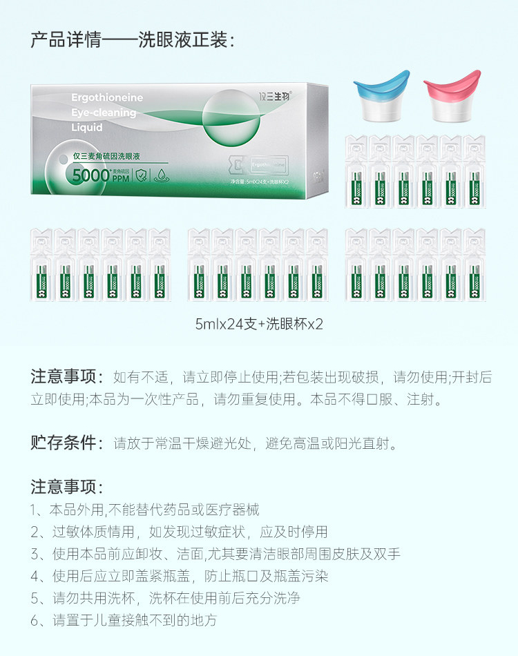 仅三麦角硫因次抛洗眼液 5ml*24支+洗眼杯+0.5ml*10支 0激素0防腐 干眼救星