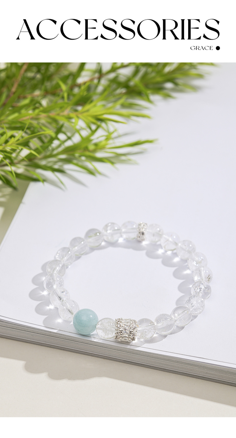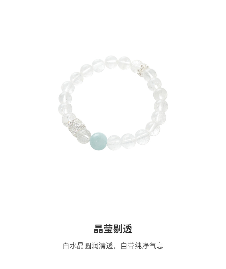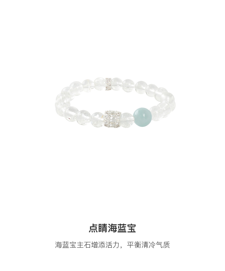 三彩2025新款【海蓝宝白水晶】串珠手链轻奢锆石镀银简约清新灵气