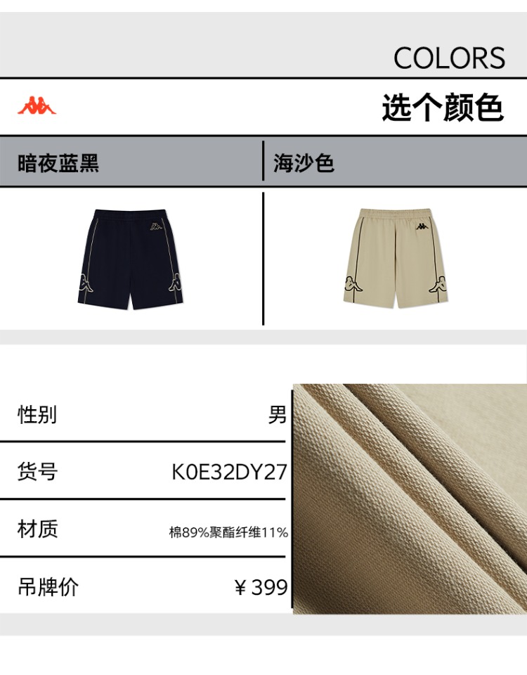 Kappa卡帕复古短裤2024新款男夏运动阔腿裤休闲五分裤K0E32DY27