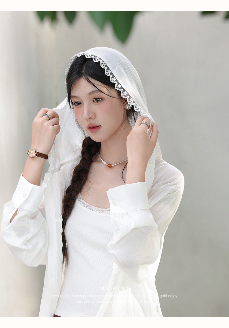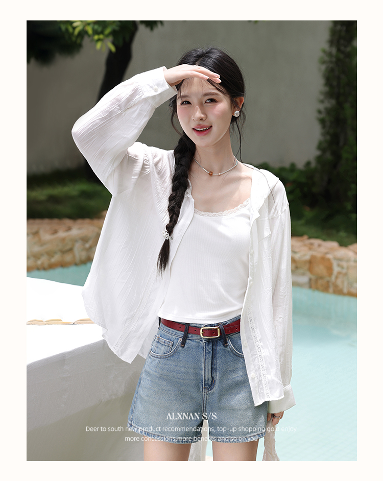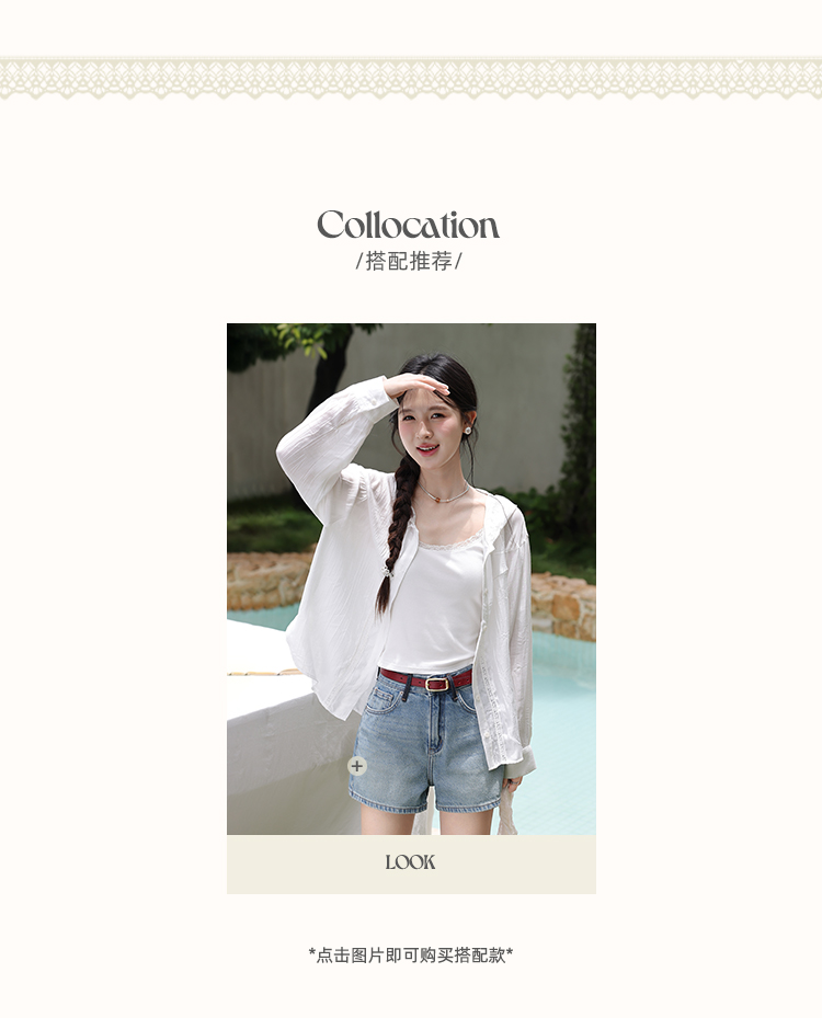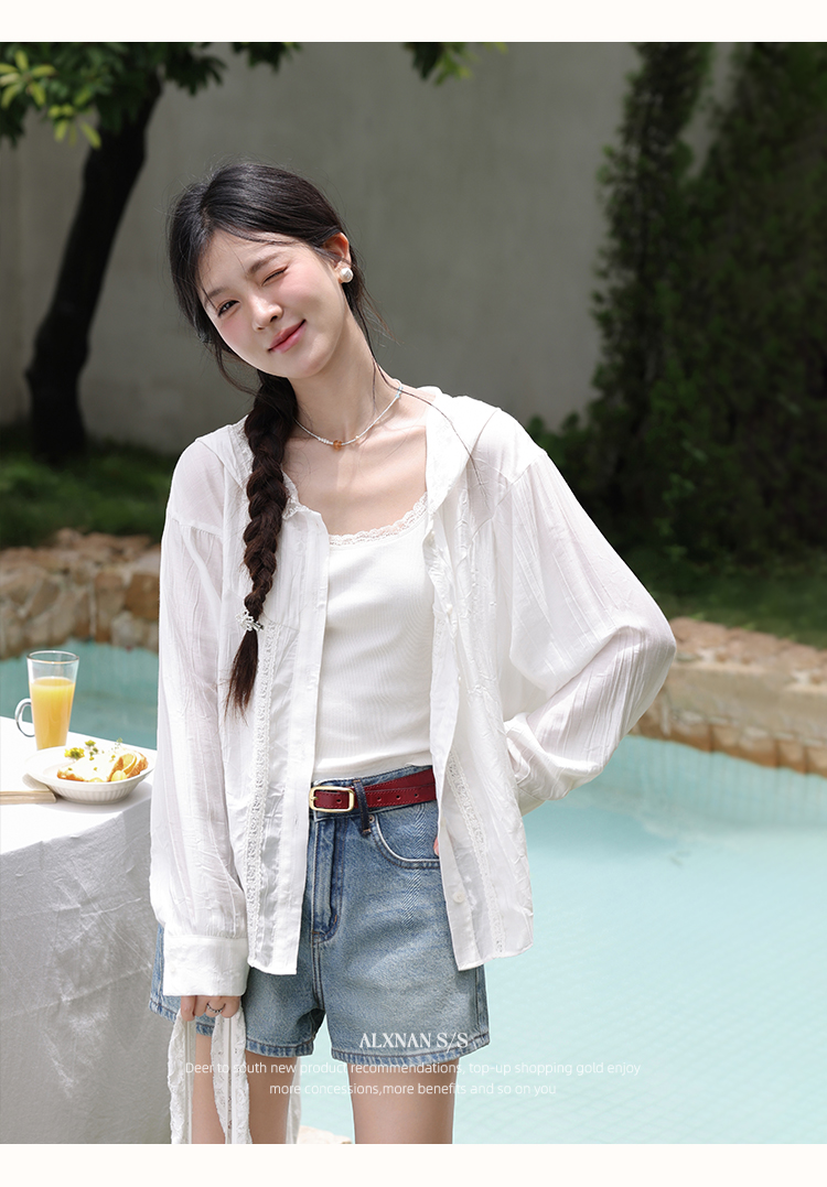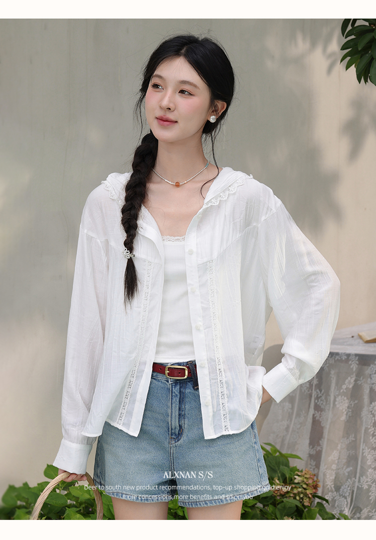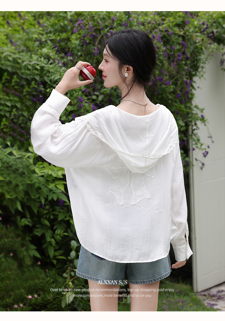 鹿向南「栀子雪」米白色防晒长袖衬衫夏季新款气质宽松连帽衬衣女L56323