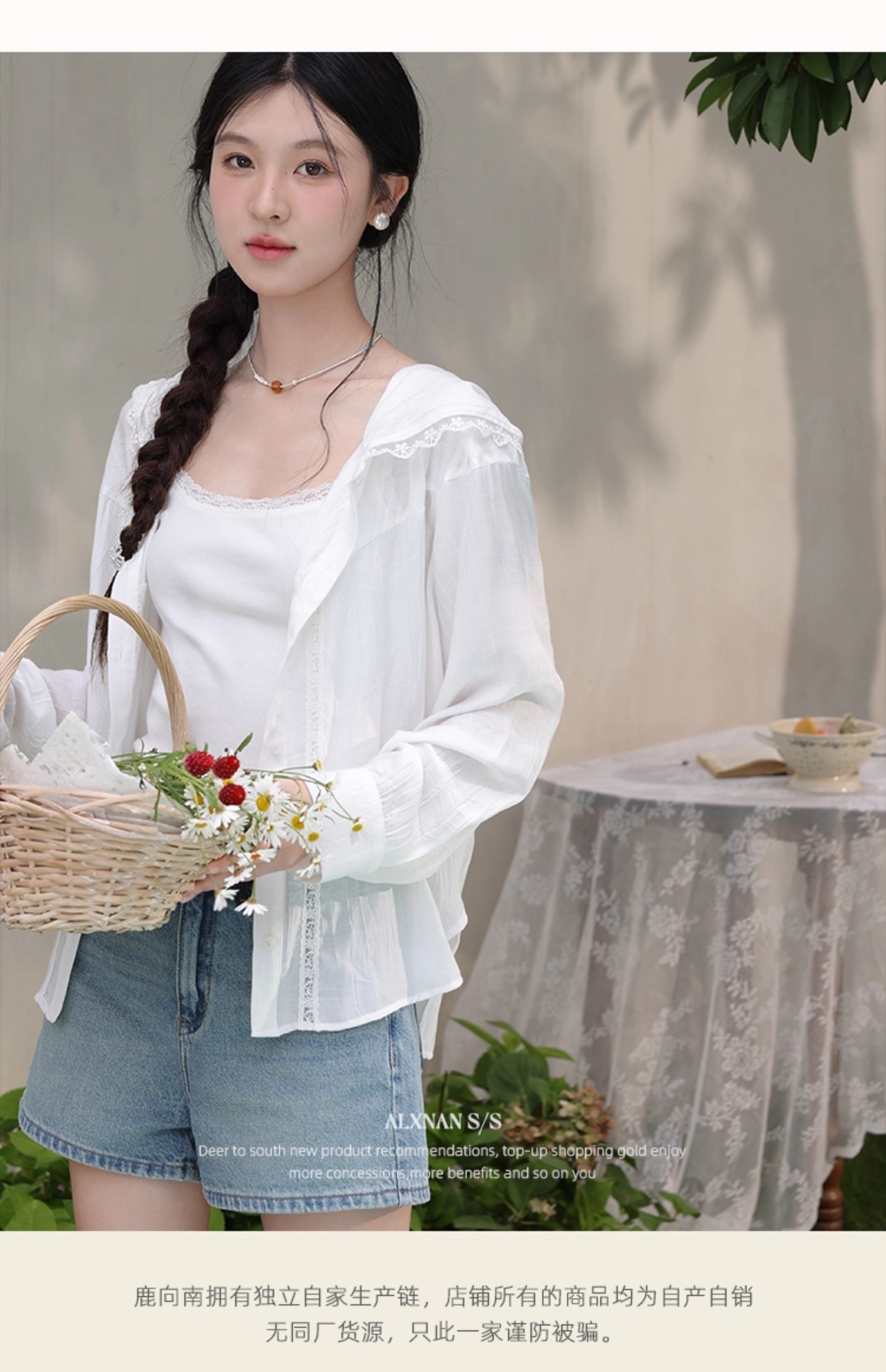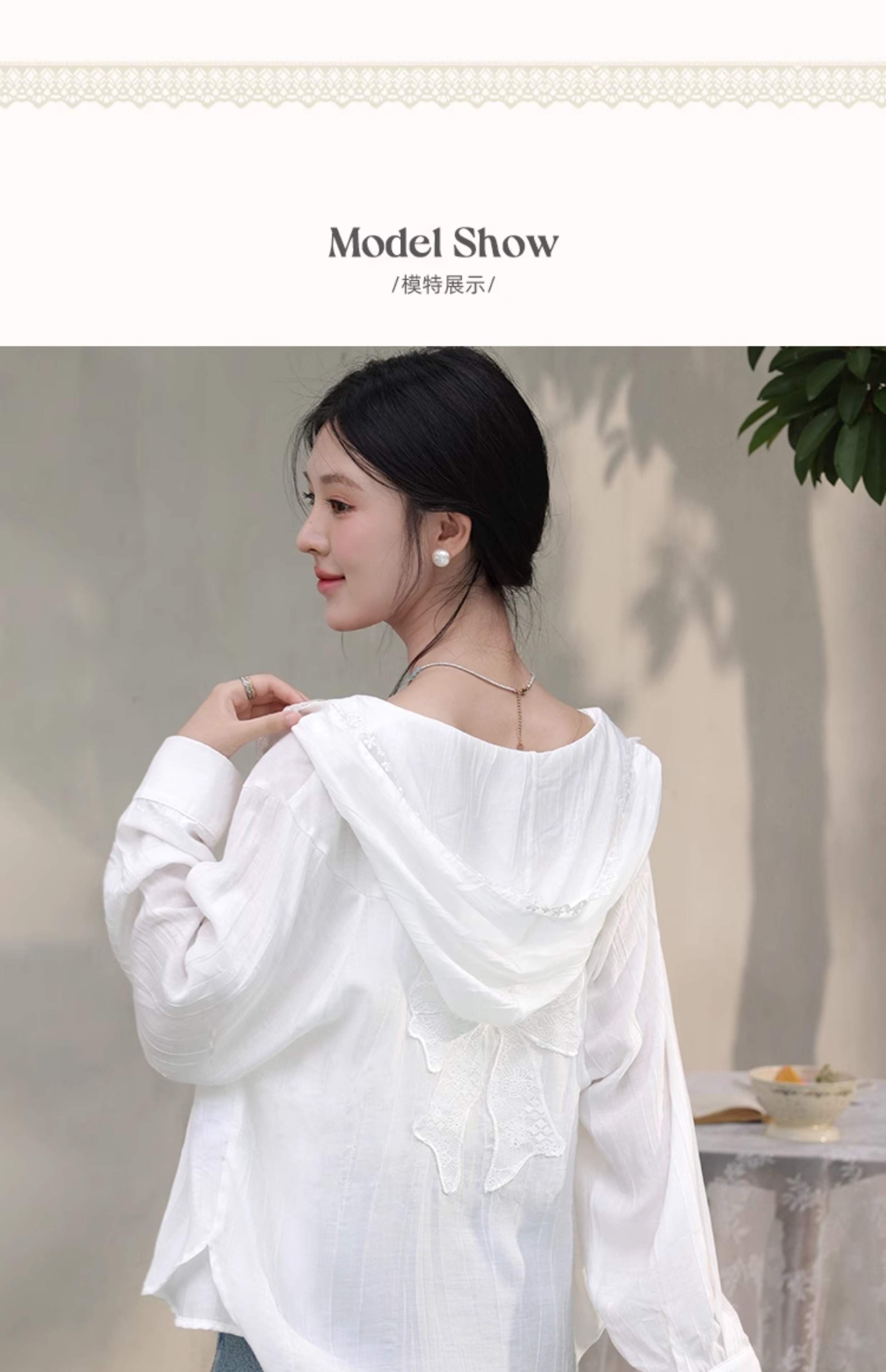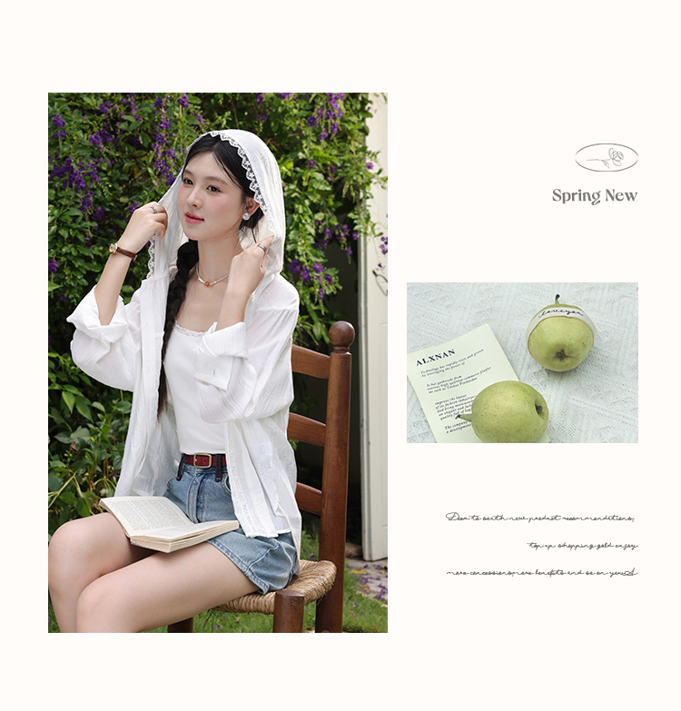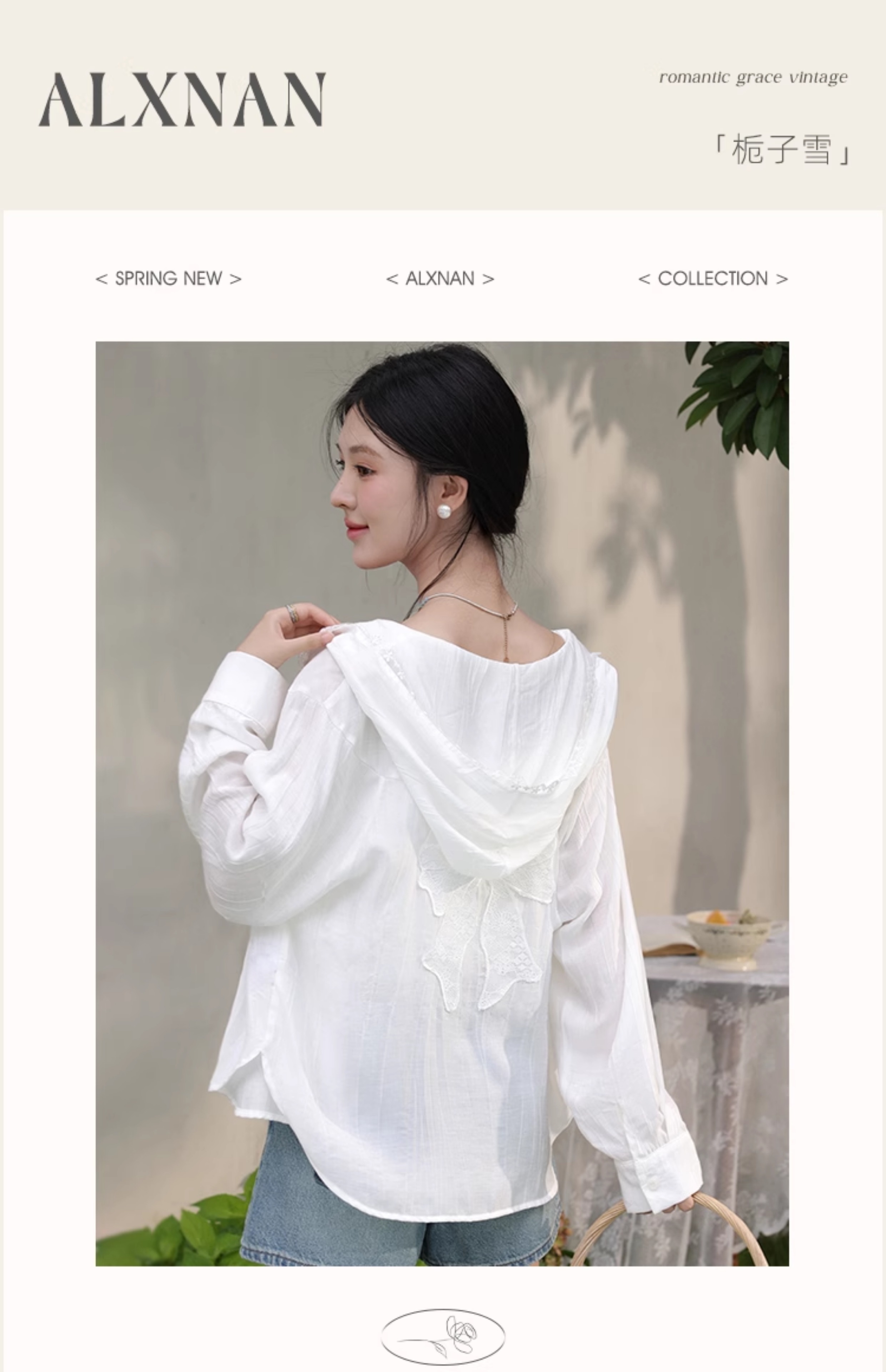 鹿向南「栀子雪」米白色防晒长袖衬衫夏季新款气质宽松连帽衬衣女L56323