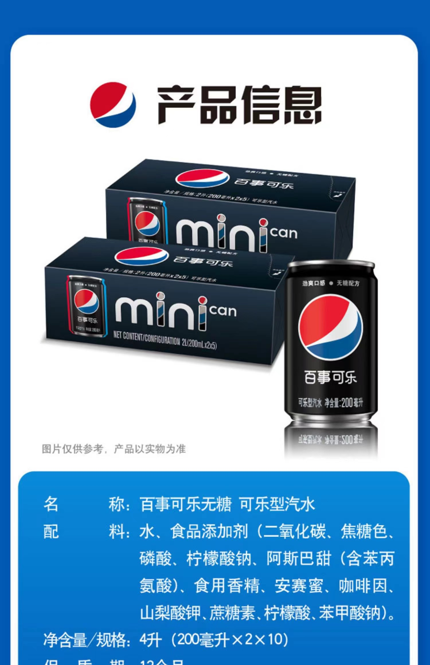 百事可乐 200ml*12罐 整箱装