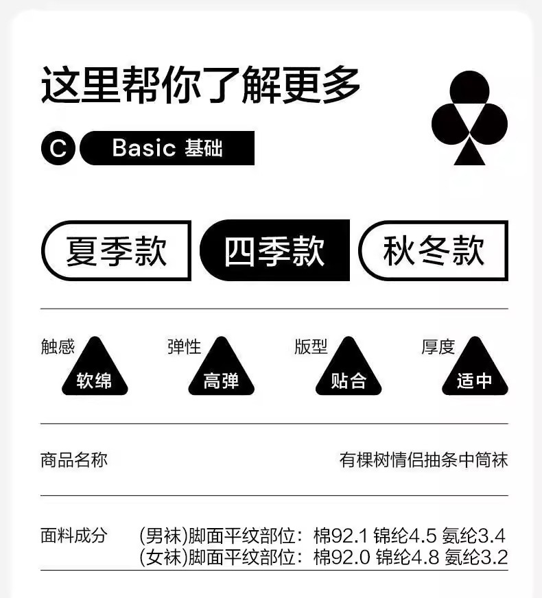 【有棵树 】高含棉量男士中筒袜四双装YSSO3008