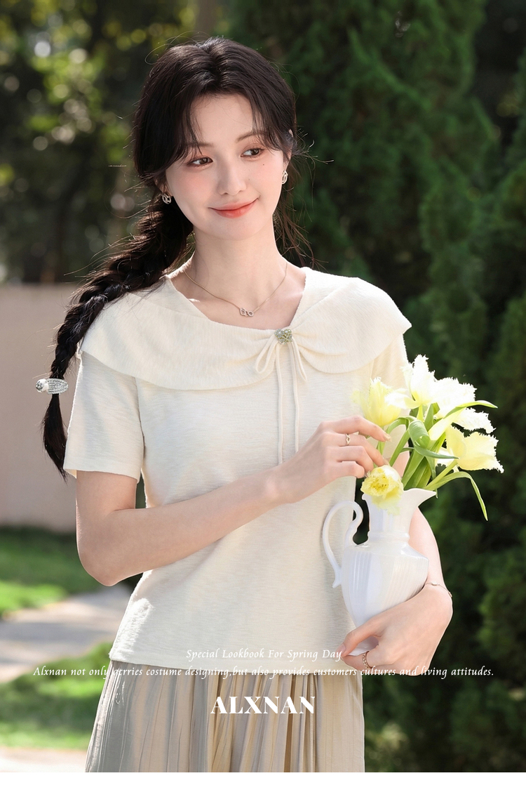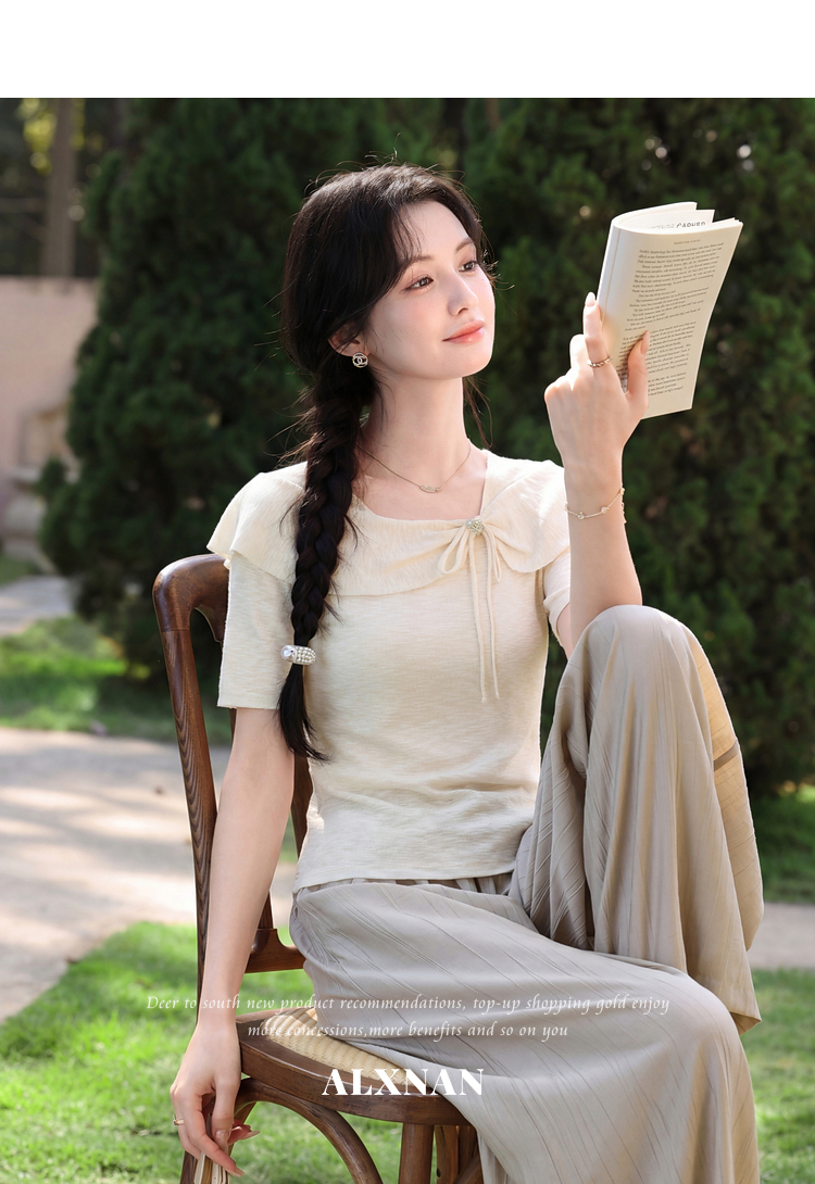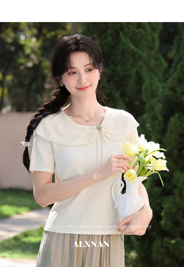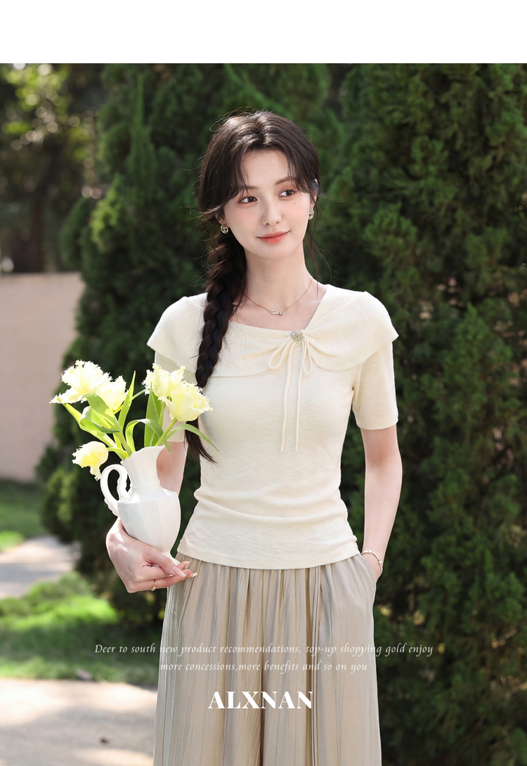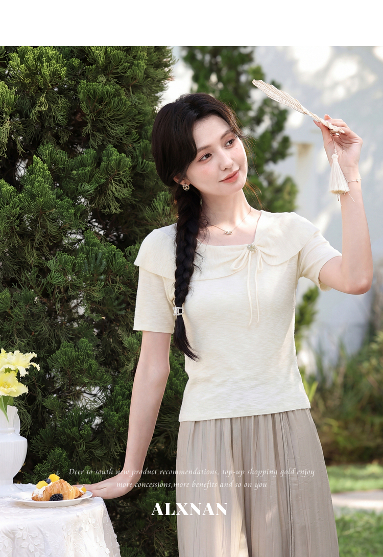 鹿向南【0405/20:00新品前1小时7折限量100件】杏色针织衫T恤短袖