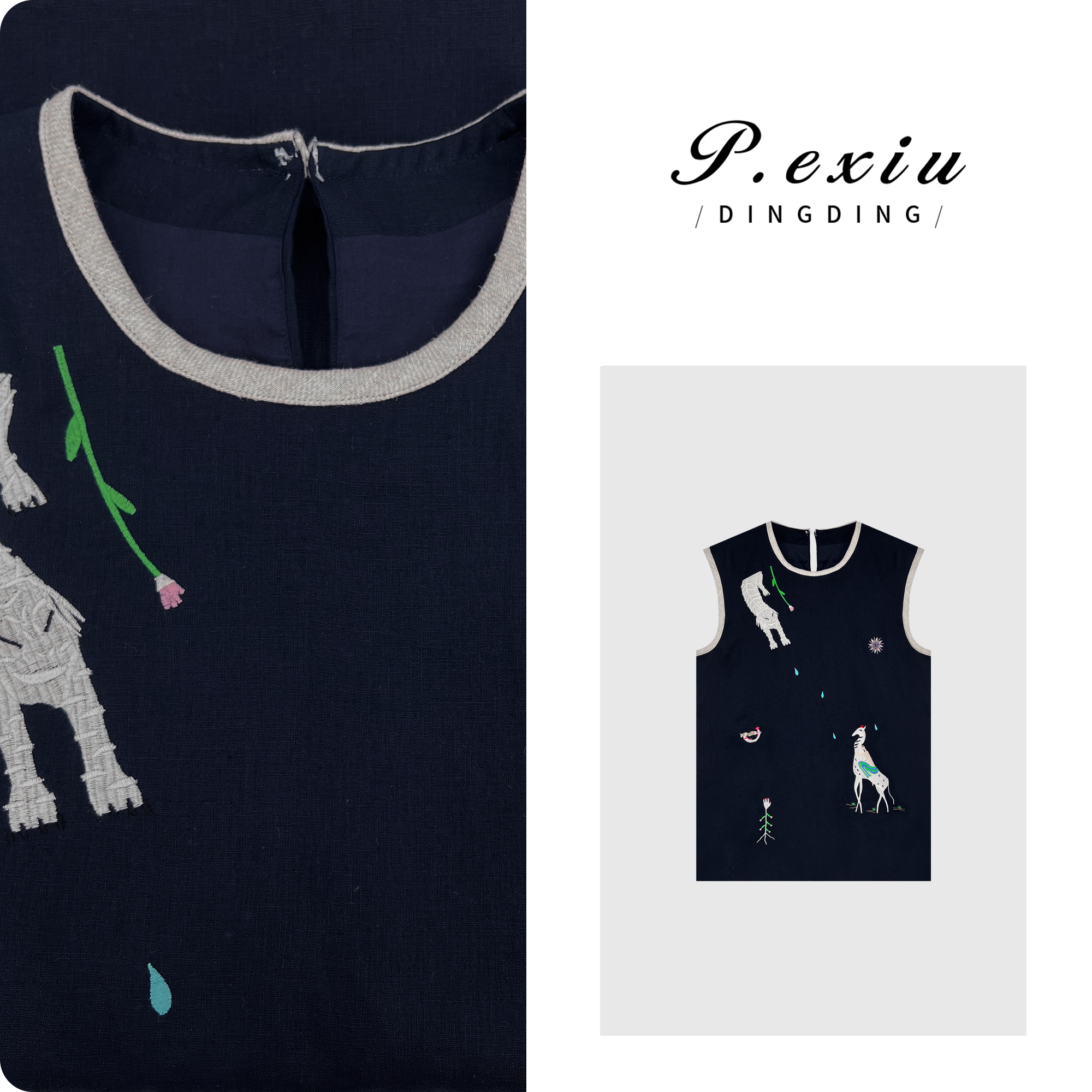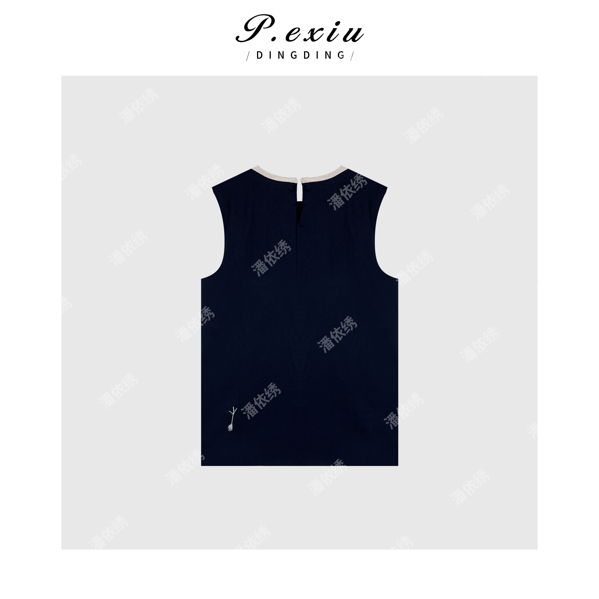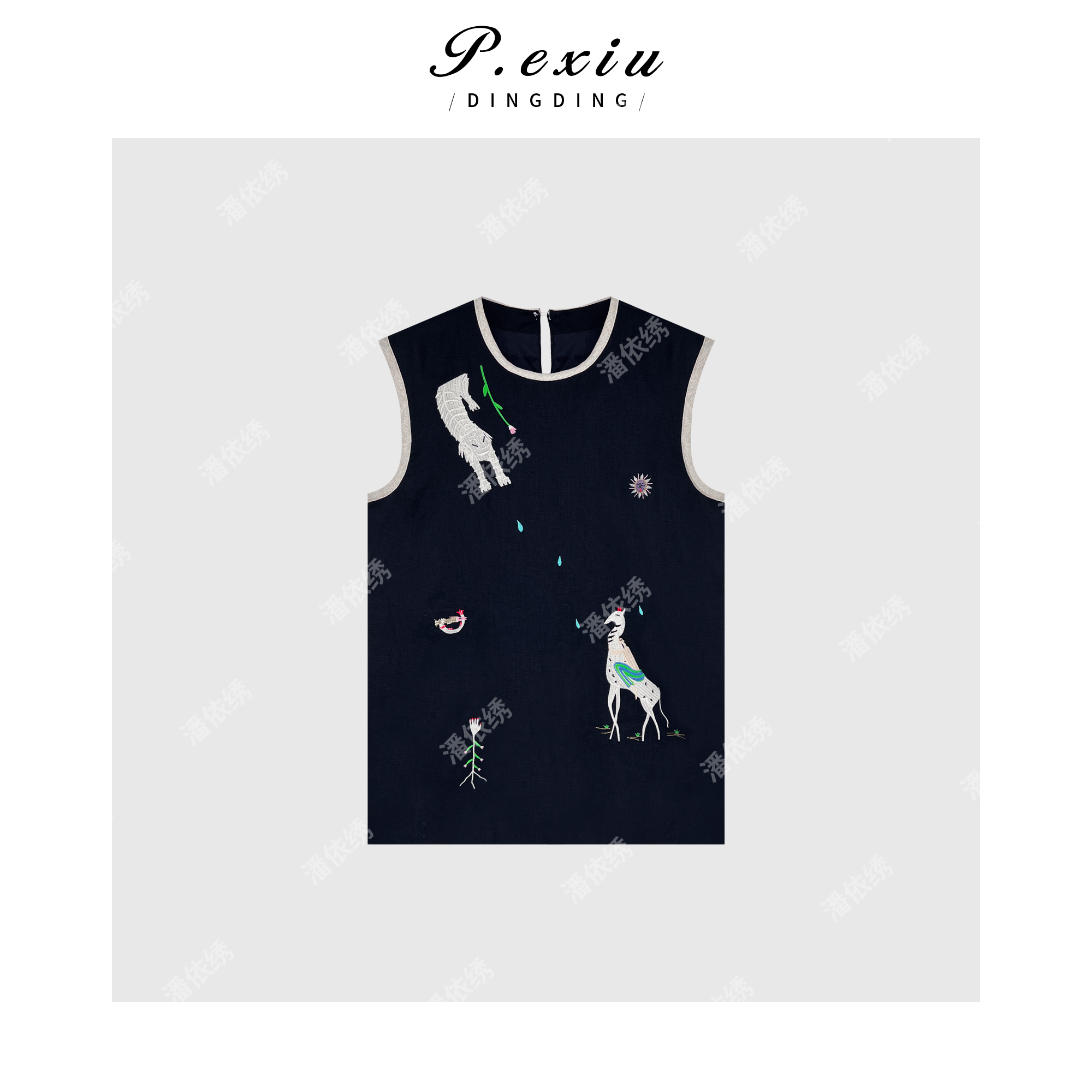 04-3潘依绣丁丁宠粉PanYiXiu/潘依绣【独家童话】100%亚麻复古蓝重工刺绣背心裙W-62320