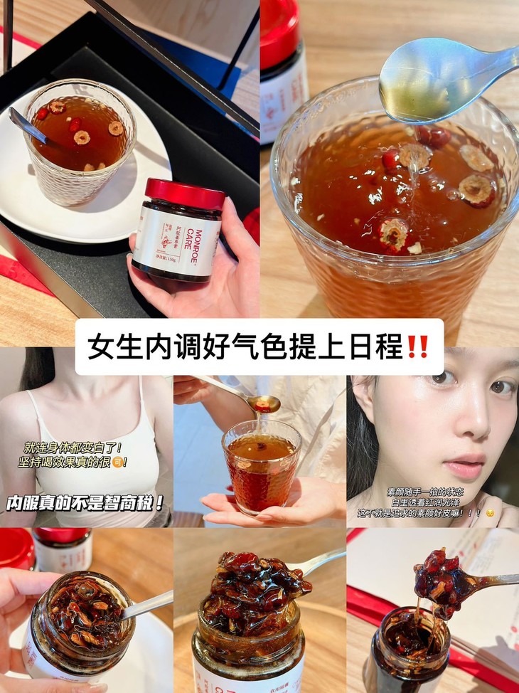 缓解姨妈痛,秋冬祛寒就喝红糖姜枣茶 几乎是刻在所有女生基因里的知识 也是很多明星的祛寒暖身秘方! 纯原料❗无添加❗ 甜滋滋的~吨吨吨根本停不下来 它能帮你解决体寒 宫寒 手脚冰凉 气血差脾胃湿寒,不管有没有痛经 姨妈是否正常,都可以来一杯姜枣膏 女人就要内外调养 除了平常表面擦脸护肤外,内调也重要!