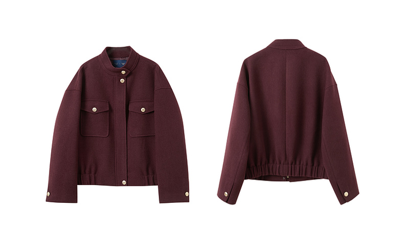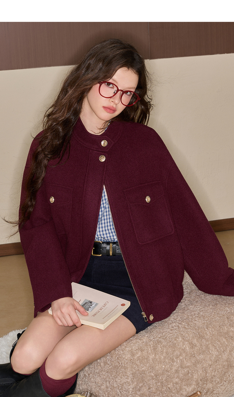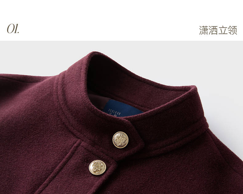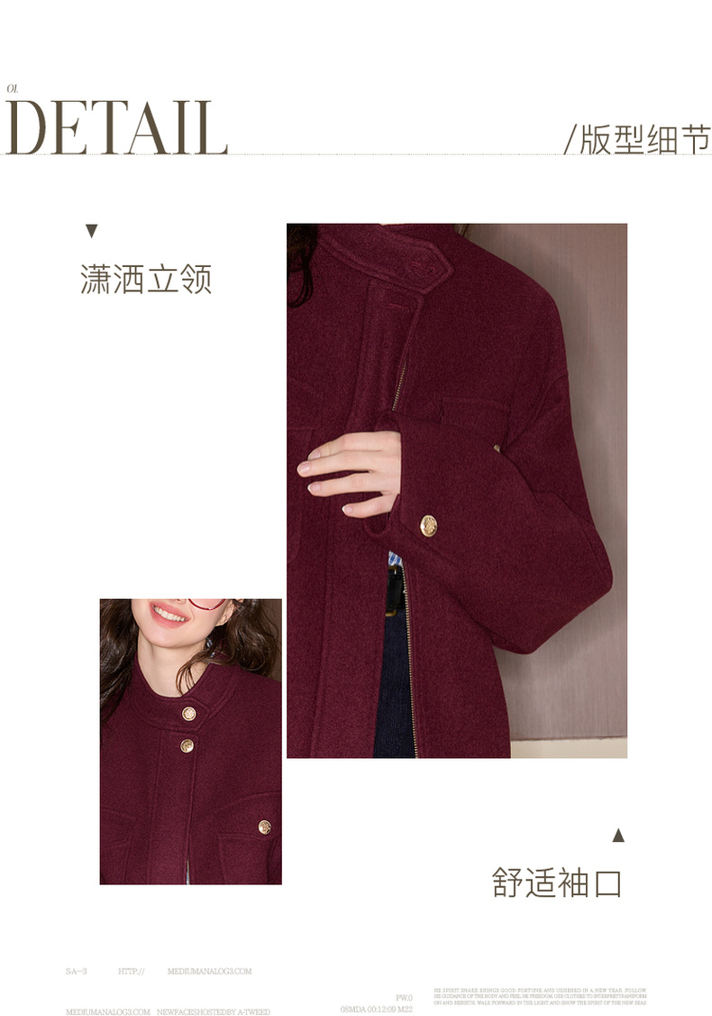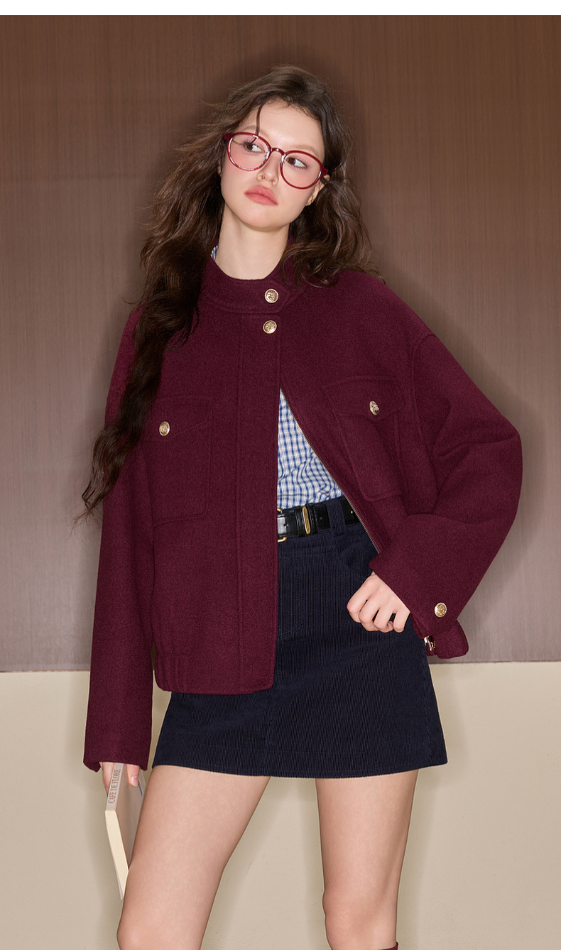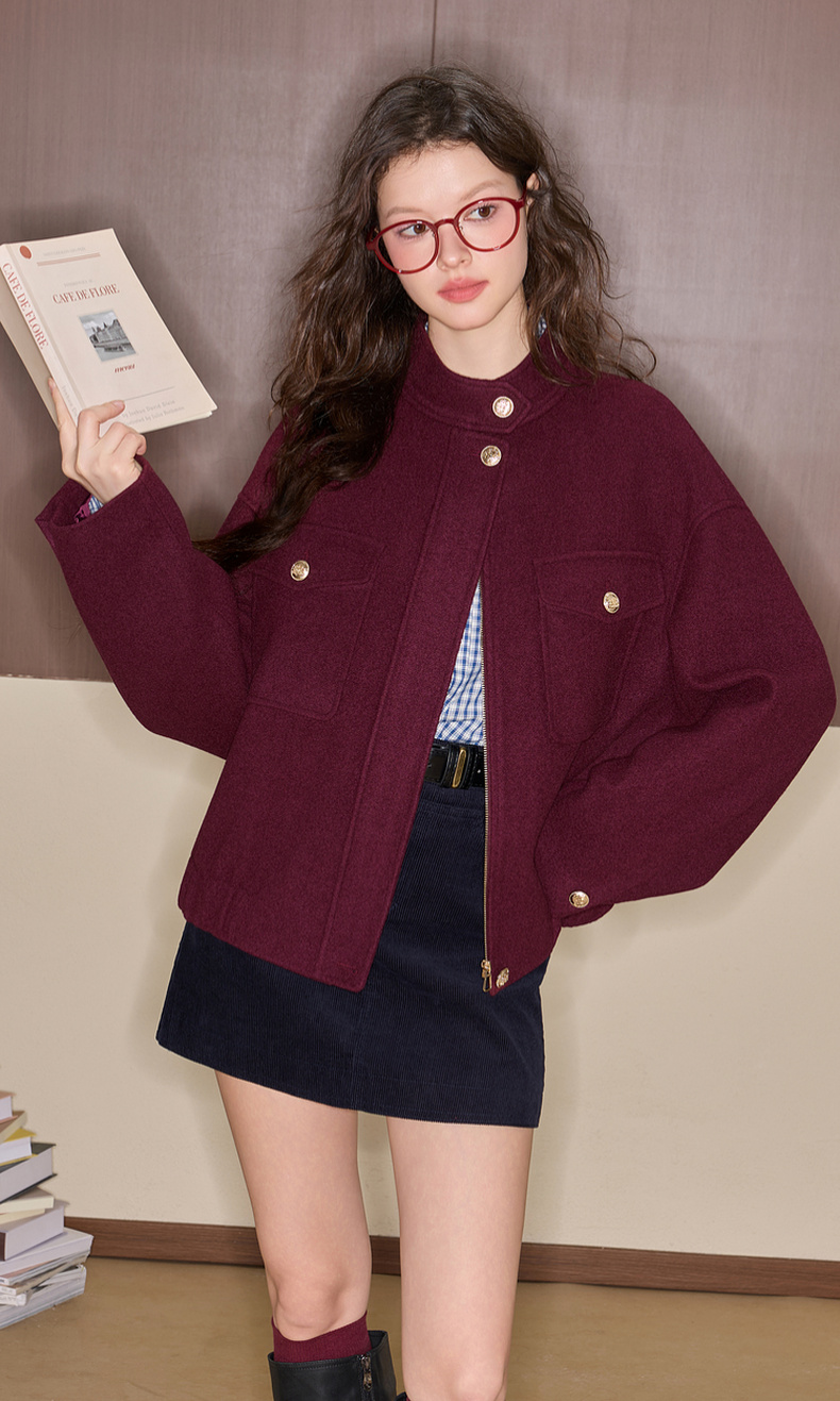 三彩独醒2025冬季新款毛呢外套休闲立领宽松上衣落肩袖F