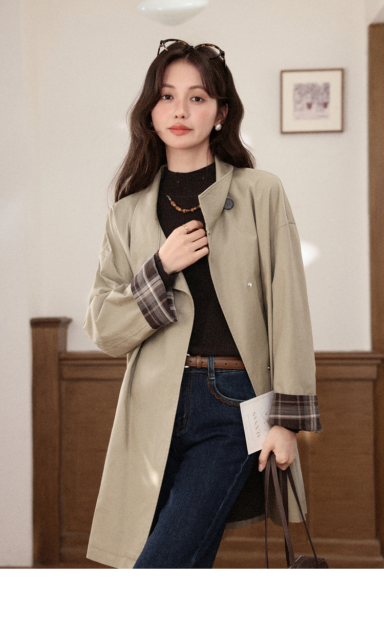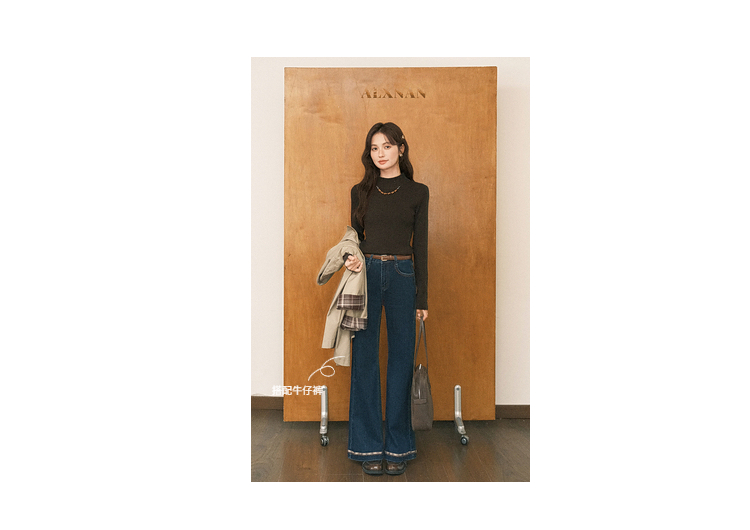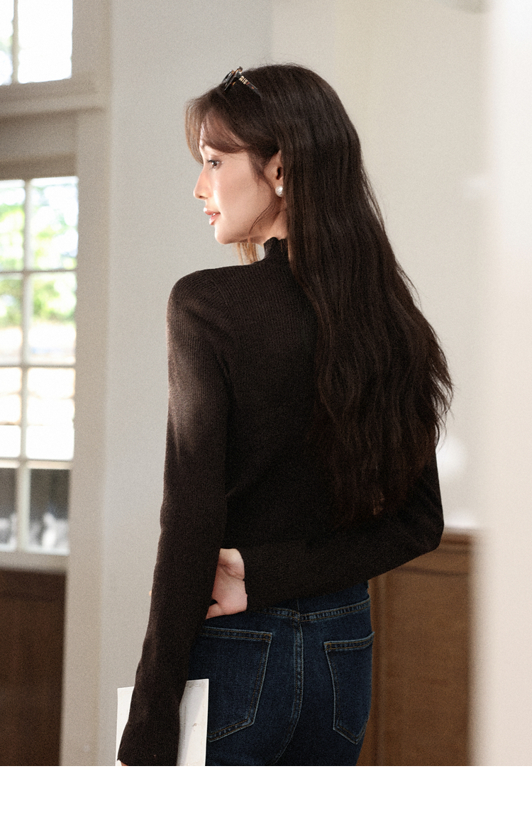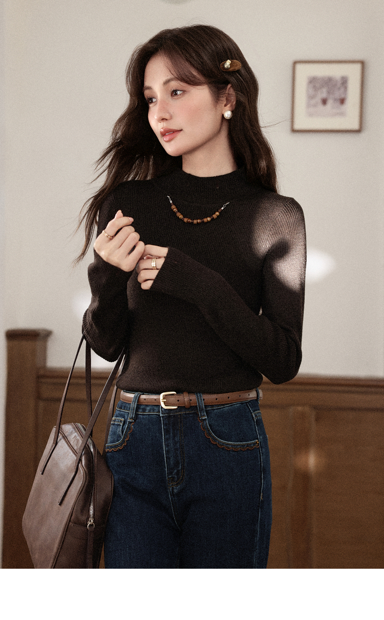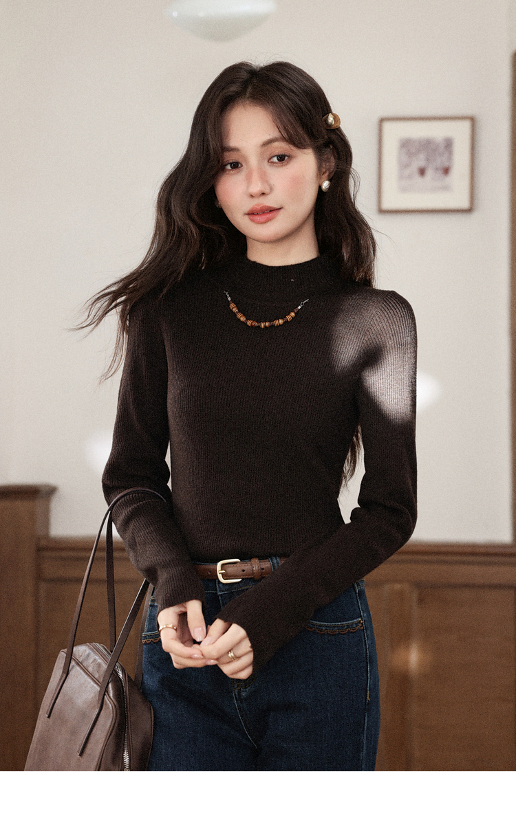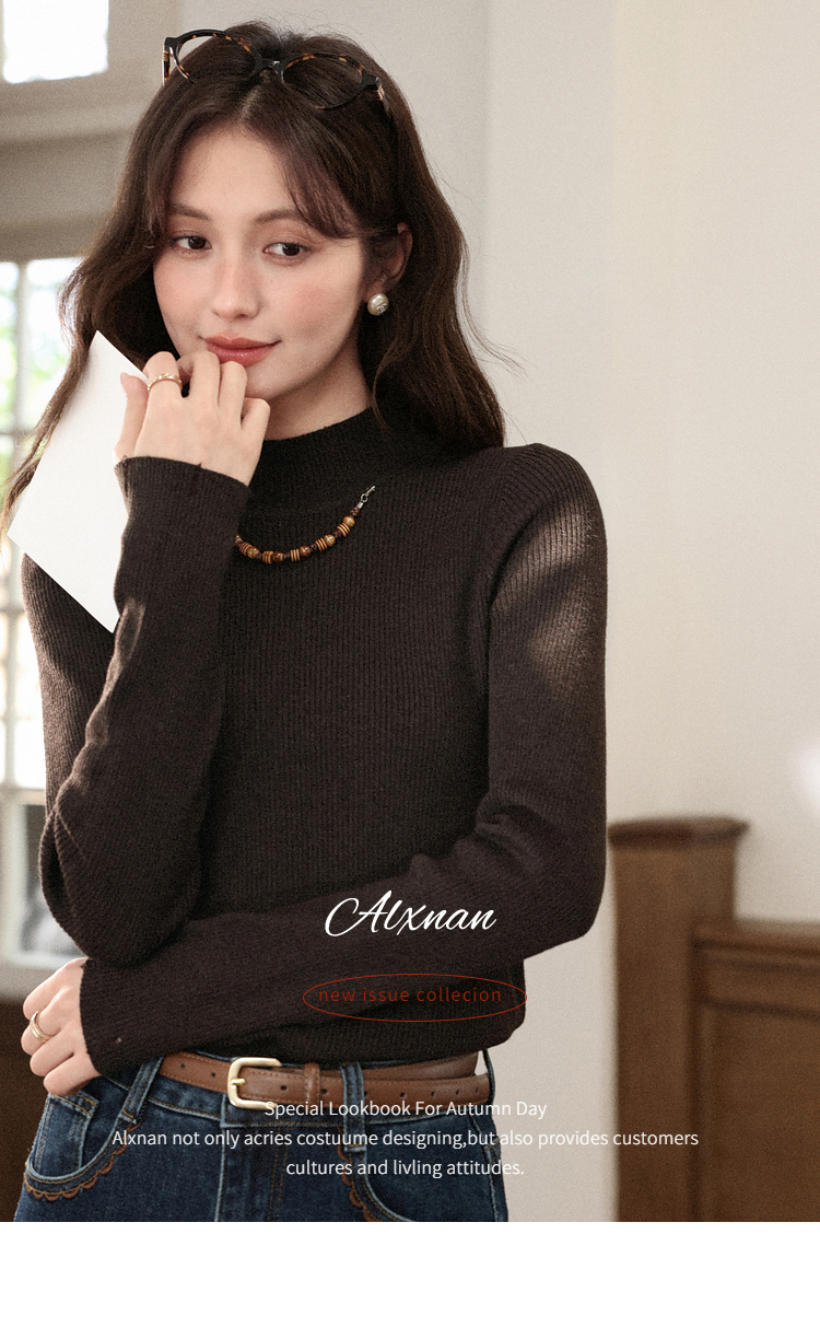 鹿向南「秋日暖咖」咖色半高领打底针织衫女秋冬新款显瘦长袖上衣