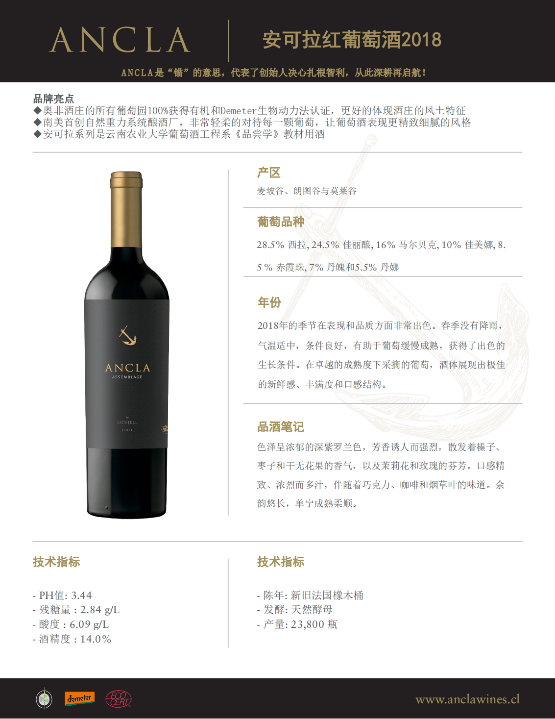 无花果玫瑰黑巧 | 智利莫莱谷 | 安可拉红葡萄酒 ANCLA Assemblage 2015