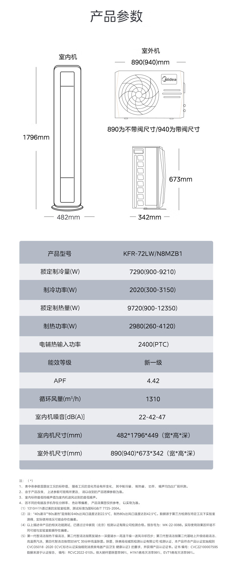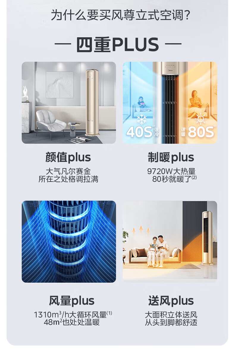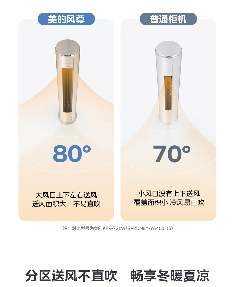 美的(Midea)空调 3匹 风尊 新一级能效 变频冷暖 客厅空调立式 空调柜 京东小家智能家电 KFR-72LW/N8MZB1