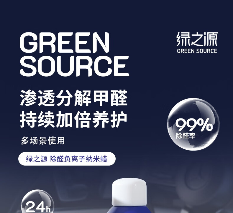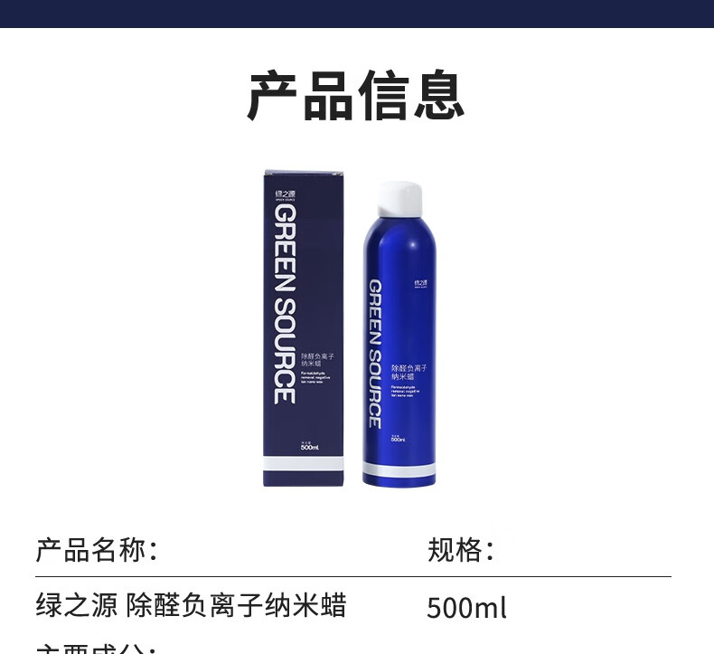 绿之源除甲醛负离子纳米蜡皮具护理清除剂去甲醛新房家用新车除醛喷剂 500ml*1瓶