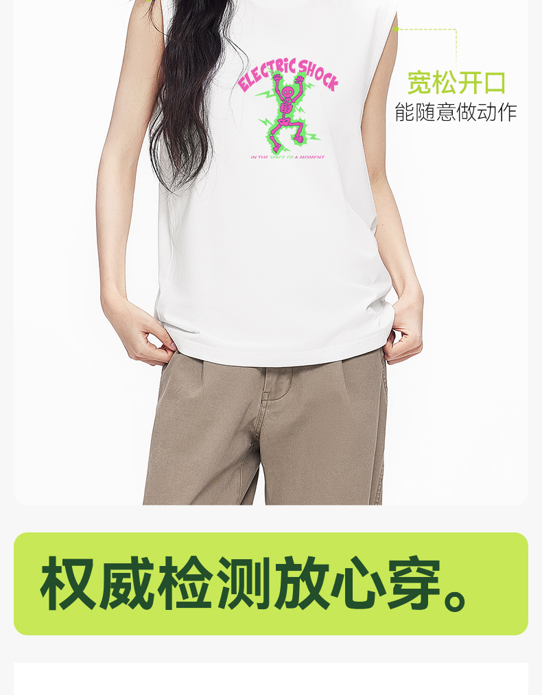 「棉的美学」运动汗衫坎肩背心骷髅印花夏季透气宽松圆领无袖T恤