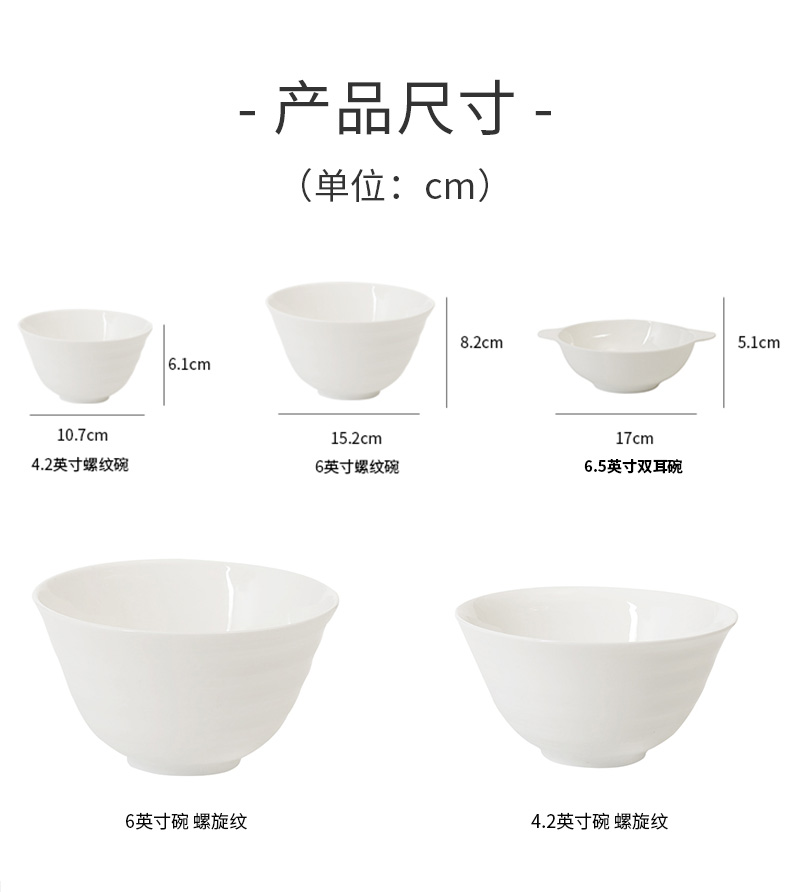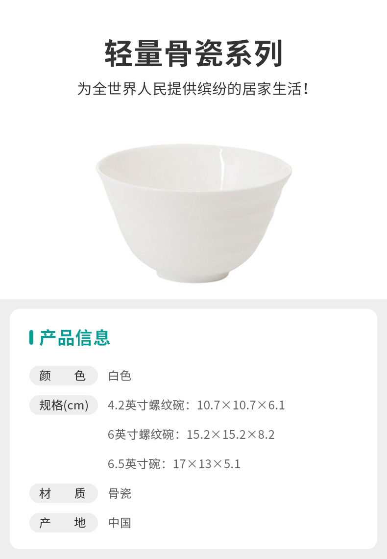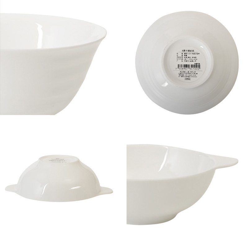 轻量骨瓷 螺纹碗6.5英寸双耳