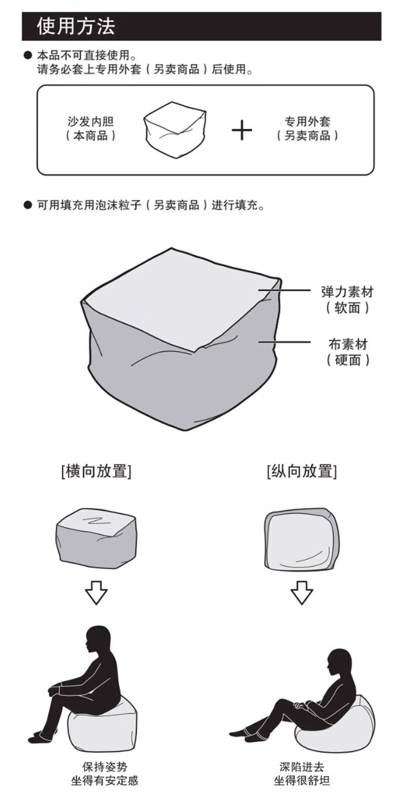 NITORI宜得利家居 客厅可躺日式泡沫粒子懒人沙发内胆