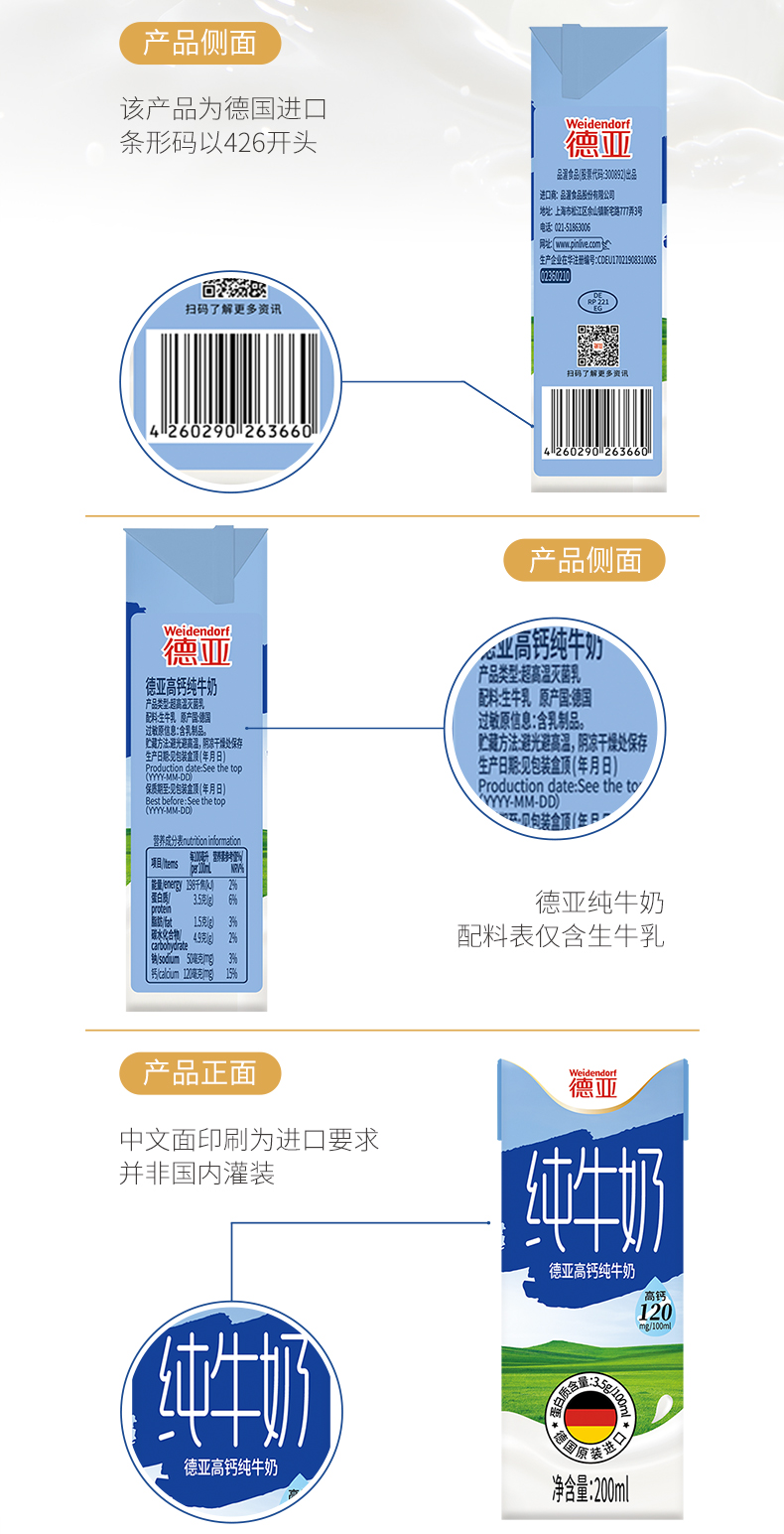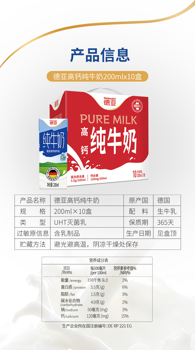 德亚高钙纯牛奶200ml×10(礼盒)